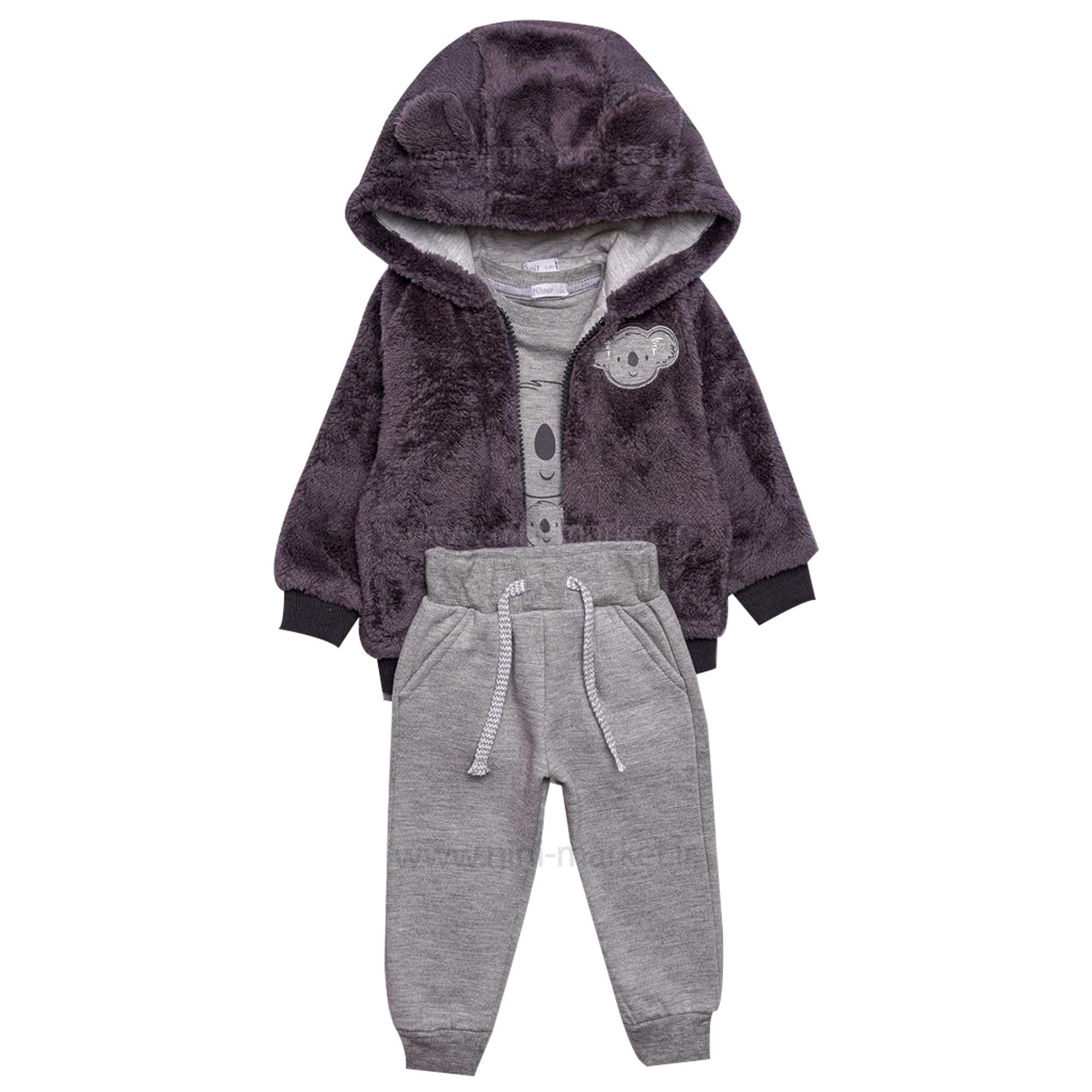Boys' three-piece sports suit, koala design, gray color, Papo
