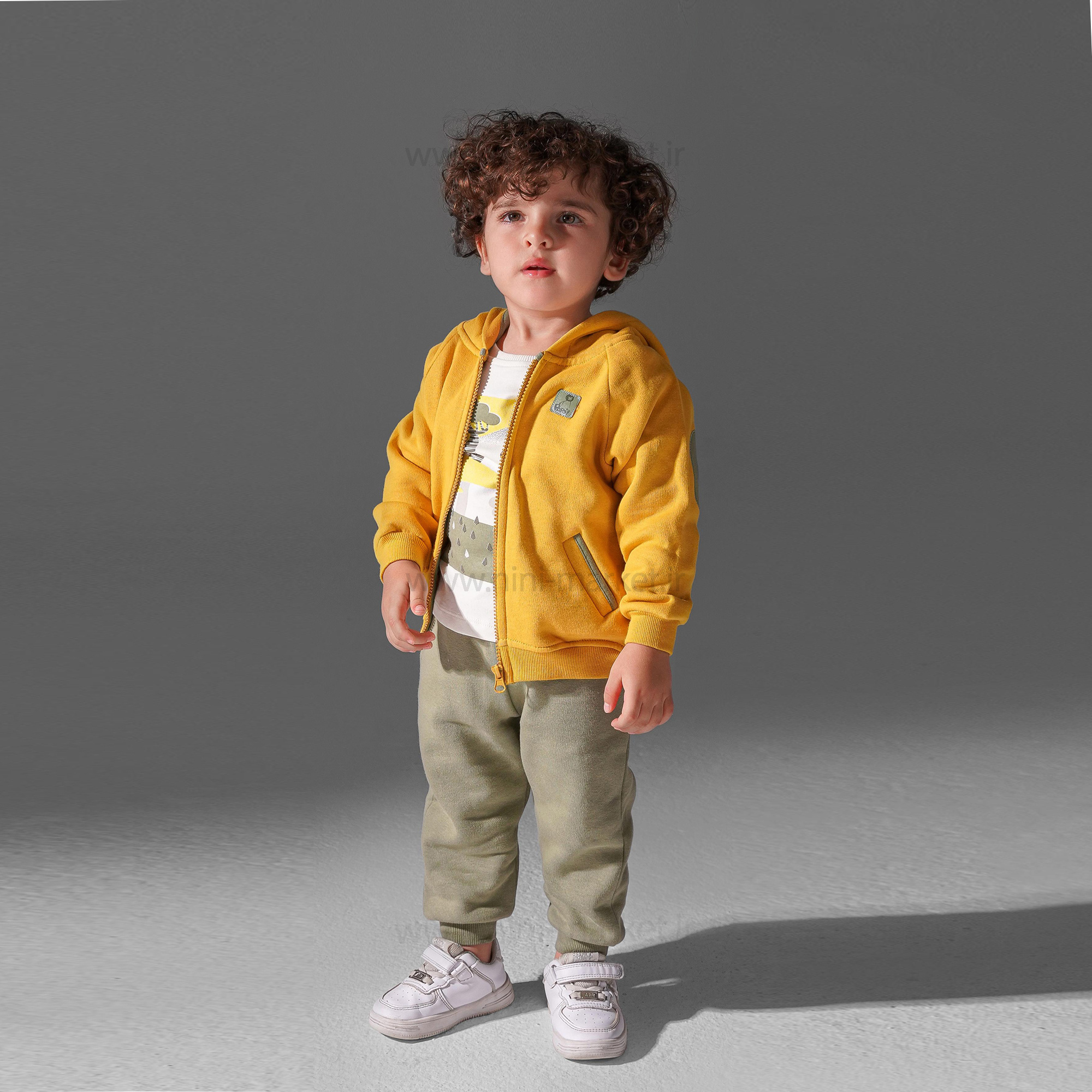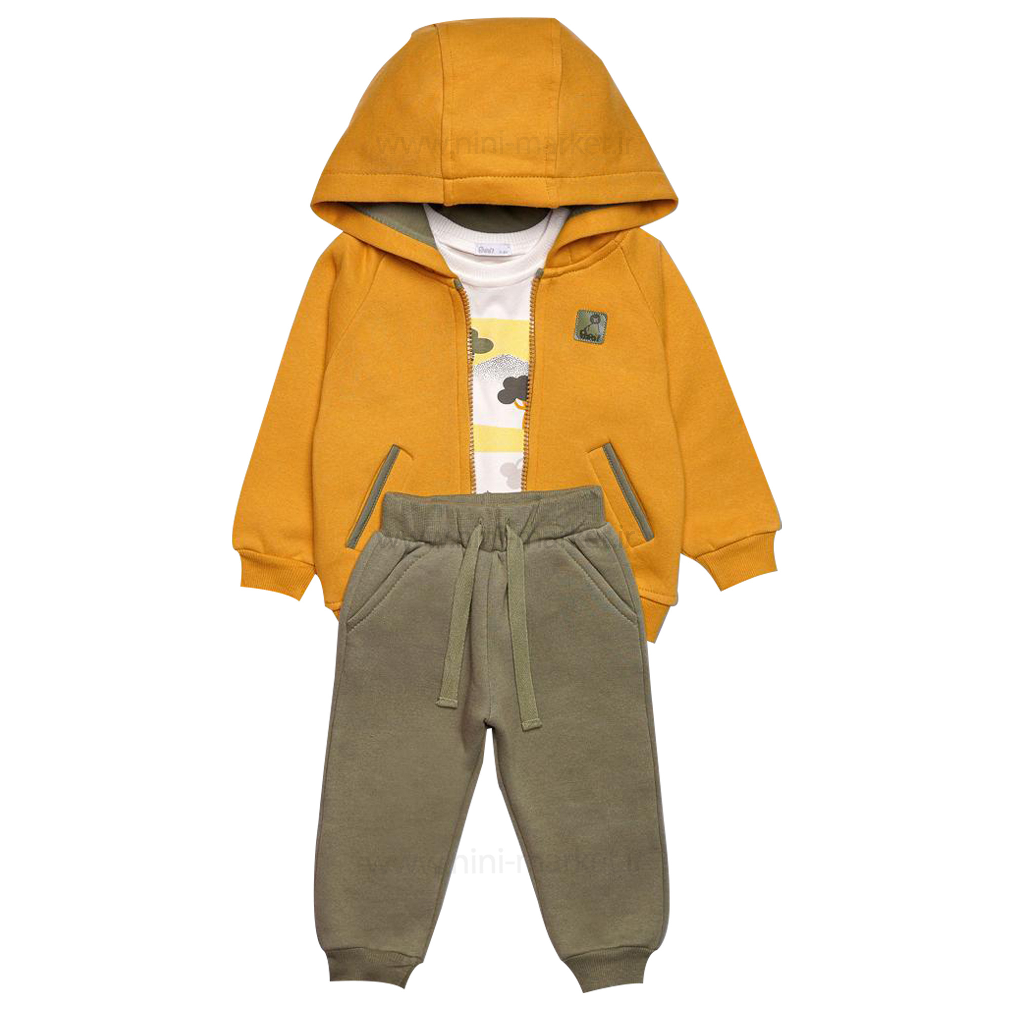 سه تیکه پسرانه اسپرت طرح جنگل رنگ زرد و سبز پاپو papo