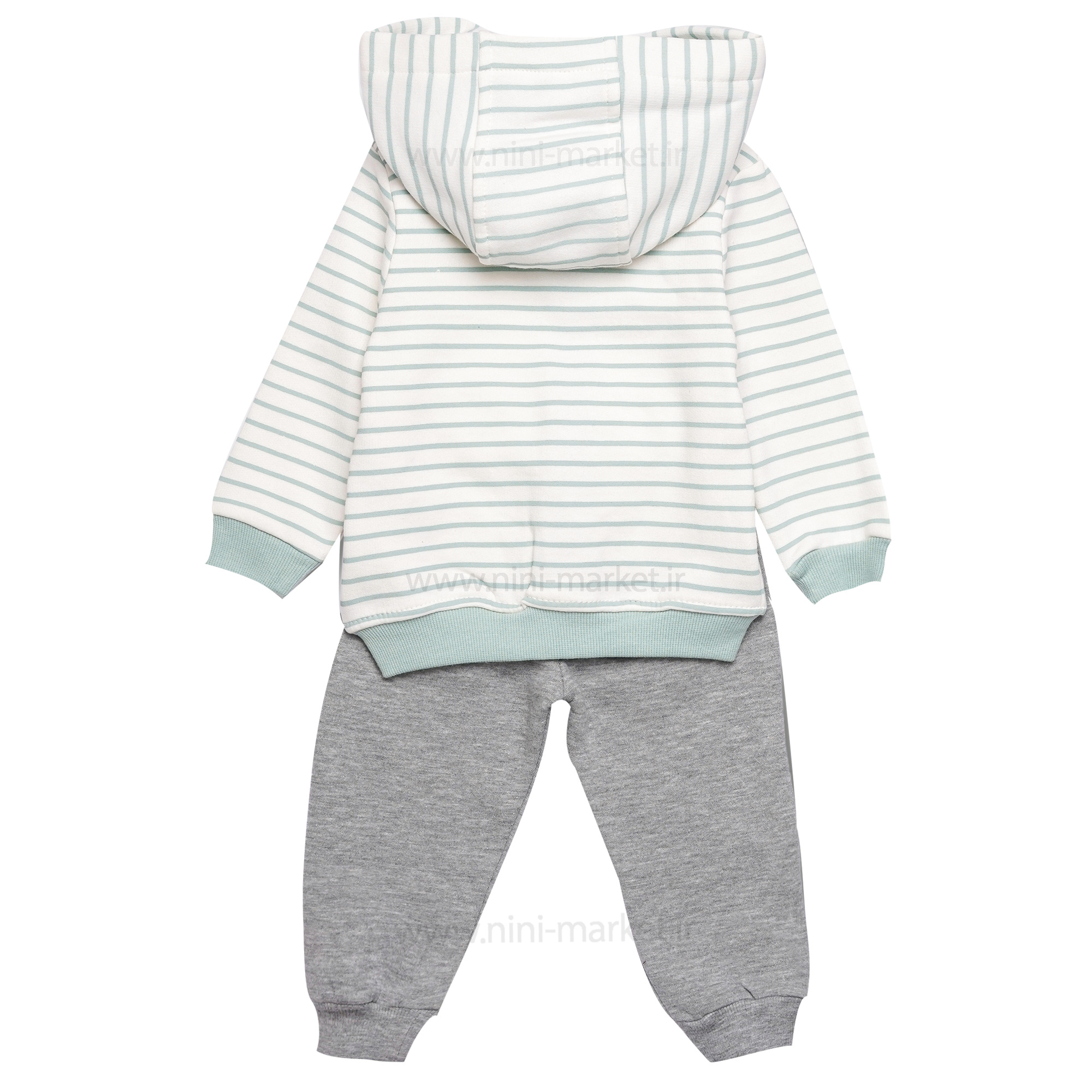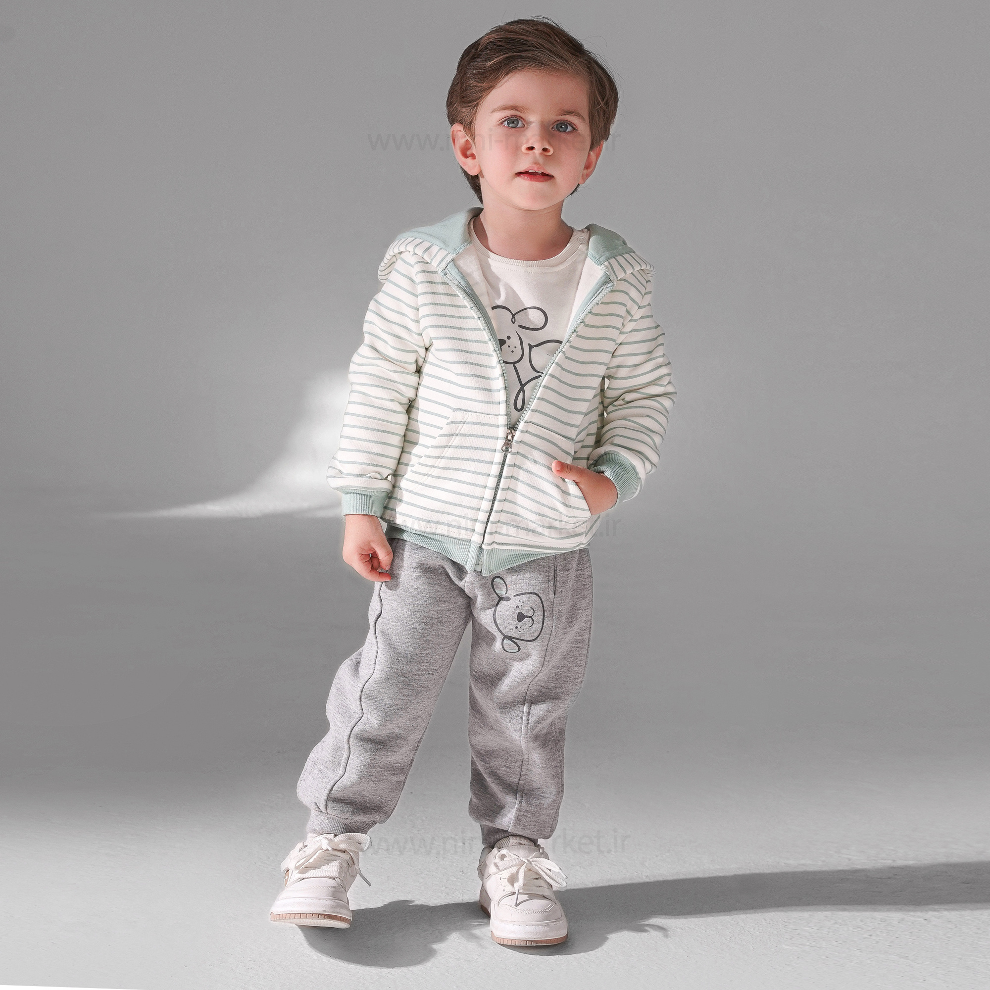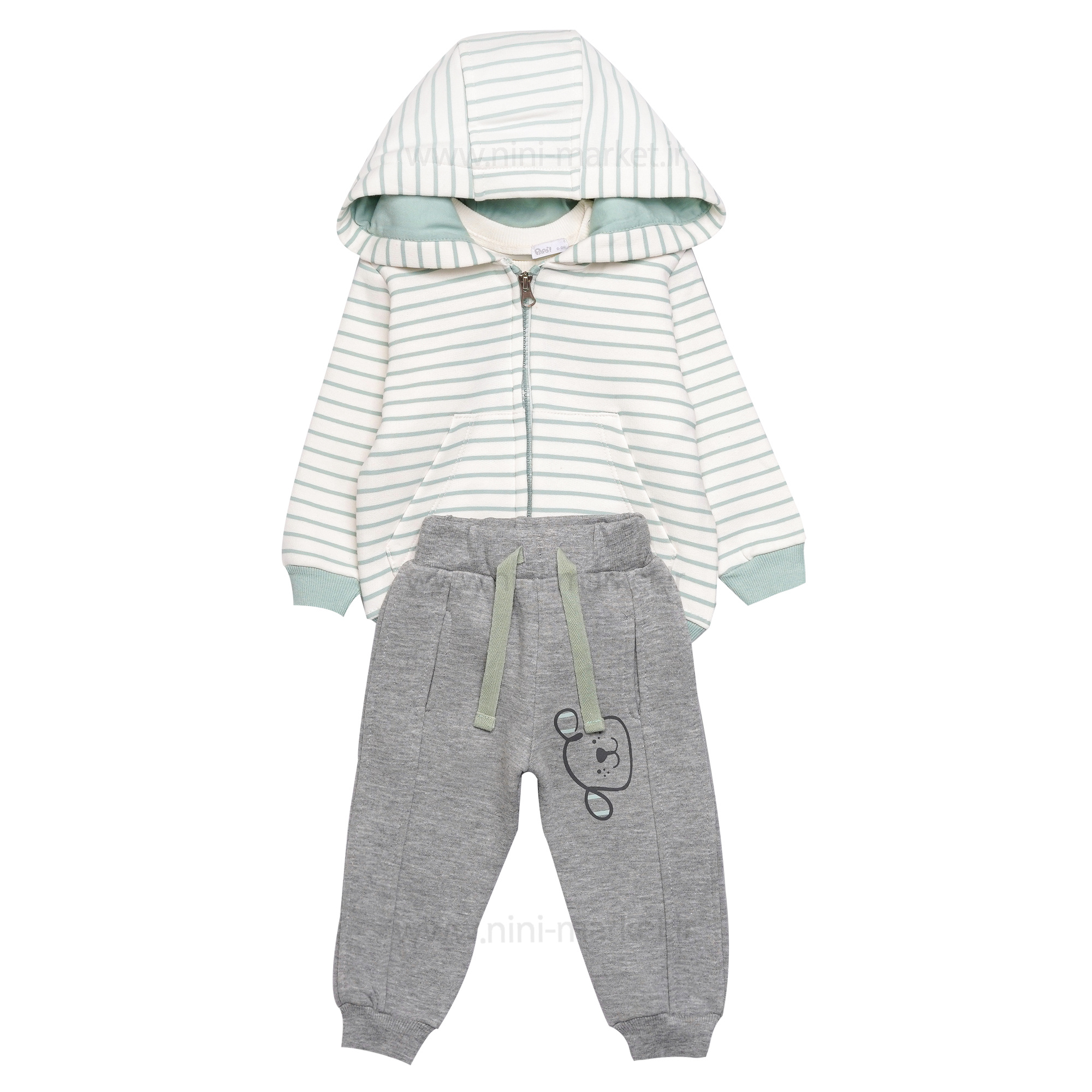 سه تیکه پسرانه طرح سگ راه راه رنگ سبز طوسی پاپو papo