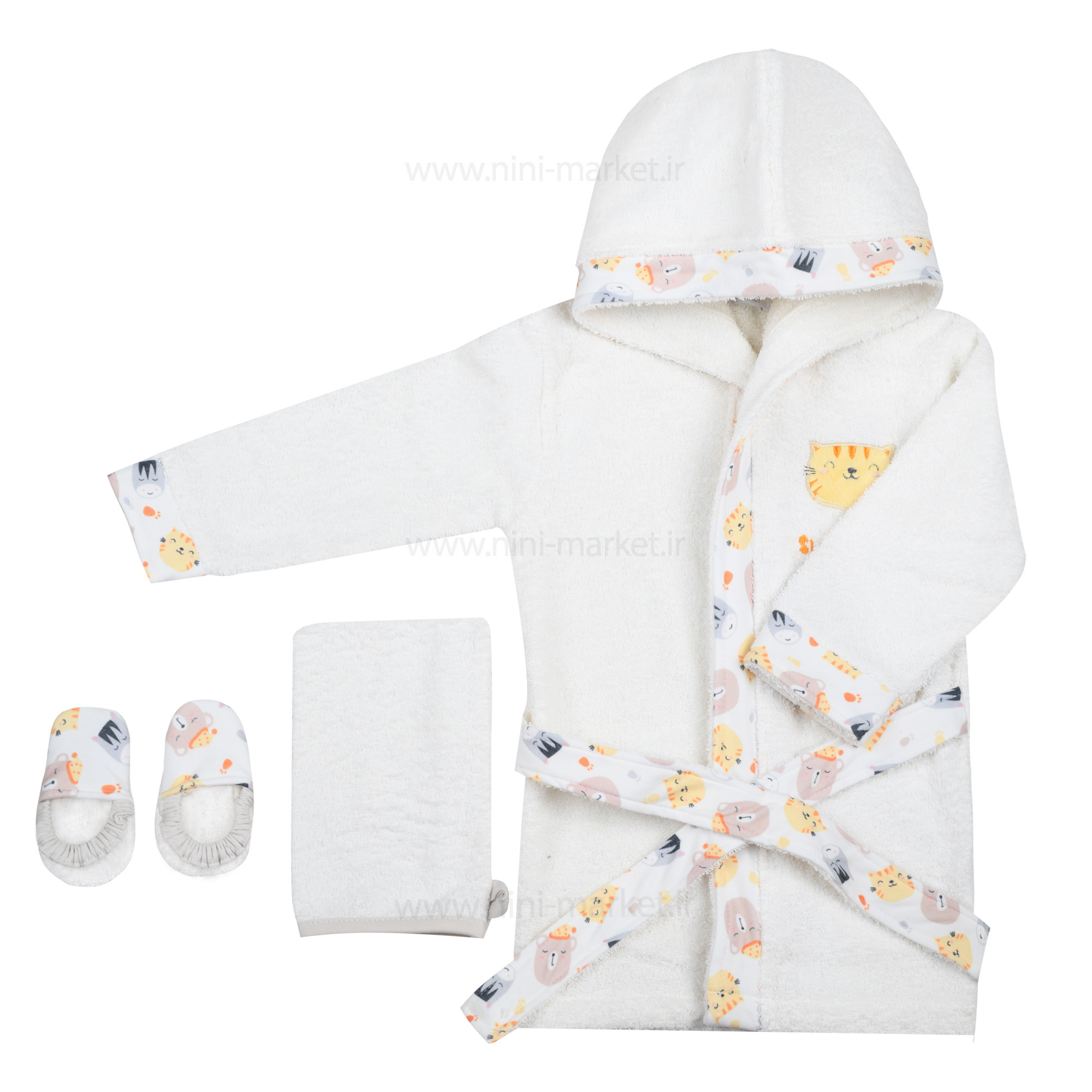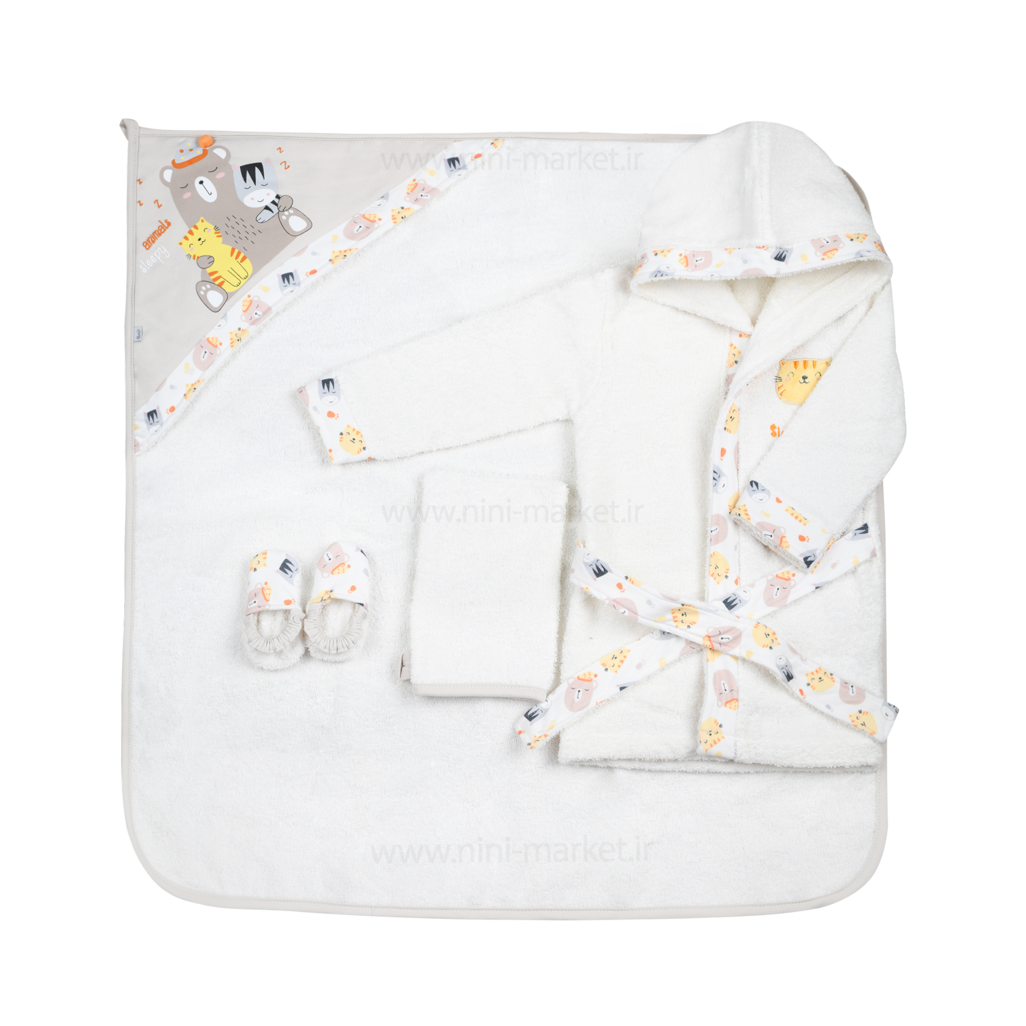 ست حوله 4 تیکه جعبه ای طرح حیوانات رنگ کرمی پاپو Papo