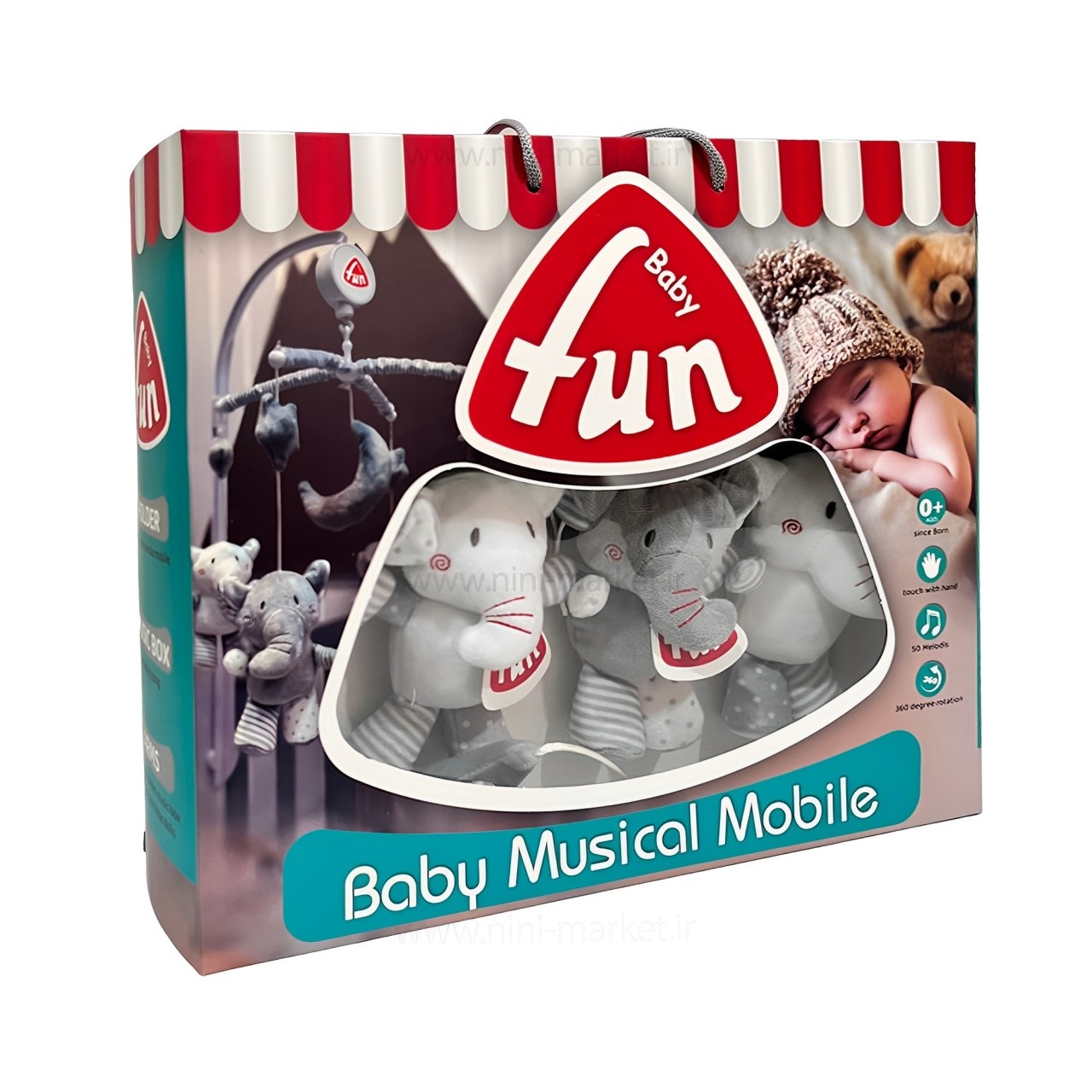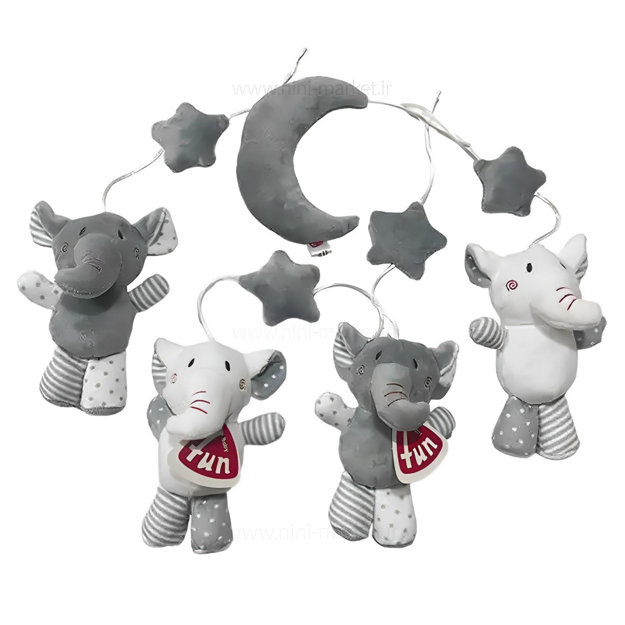 آویز بالای تخت کوکی طرح فیل رنگ طوسی baby fun