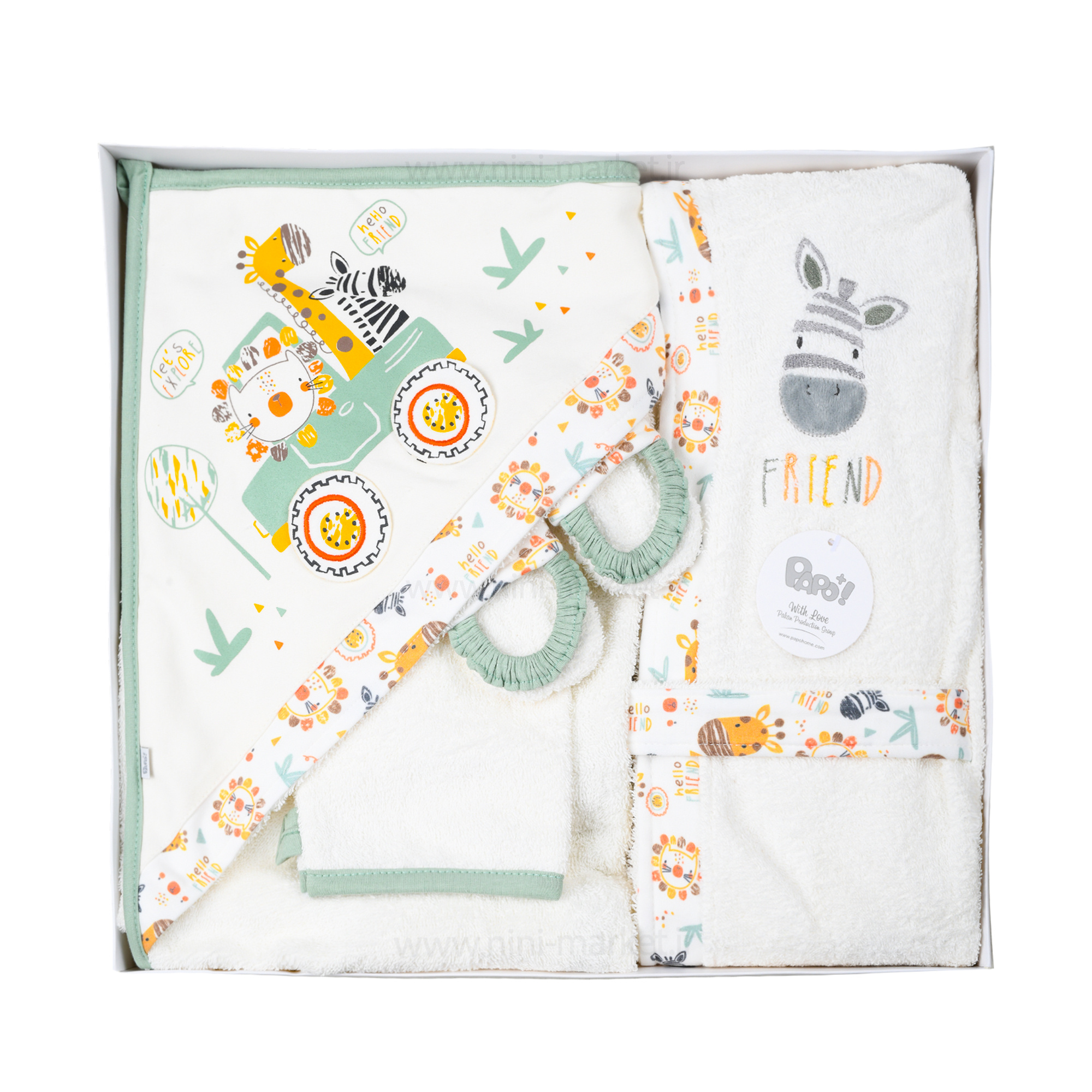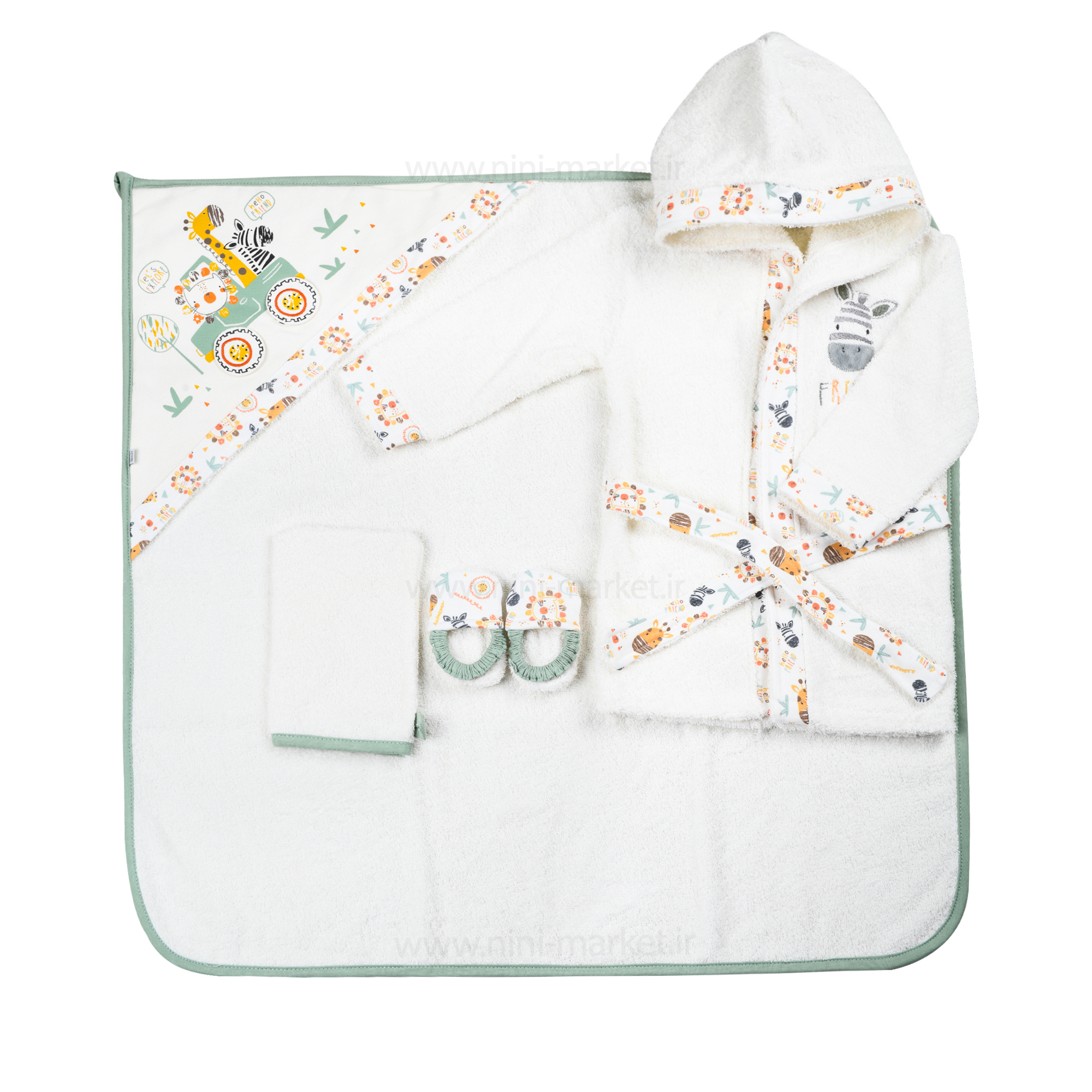 ست حوله 4 تیکه جعبه ای طرح حیوانات رنگ سبز پاپو Papo
