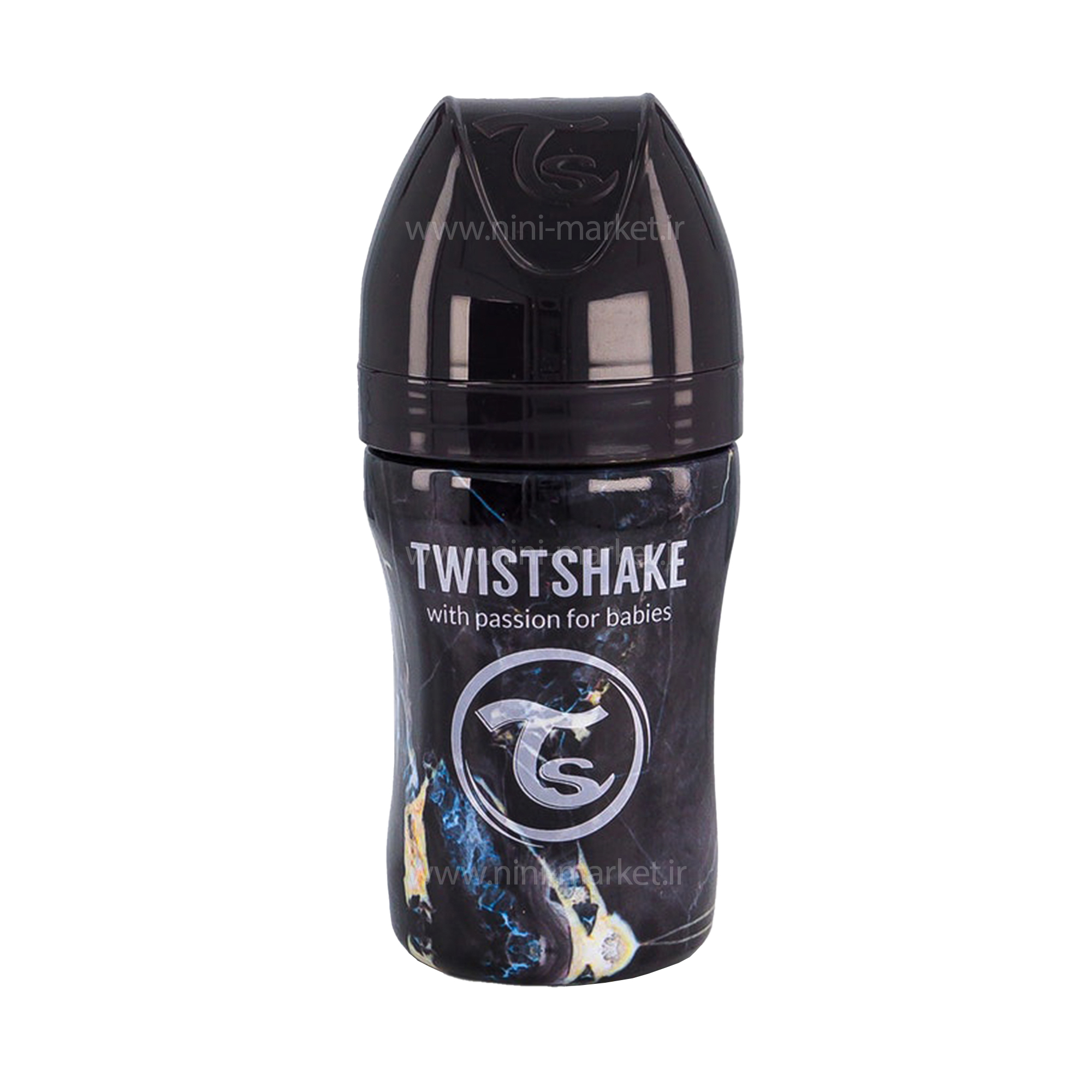تویست شیک این بار با الهام گرفتن از آخرین مد دنیا، شیشه شیرهایی از جنس استیل ضد زنگ را تولید کرده است. شیشه شیر استیل ۲۶۰ میلی لیتر ماربل مشکی تویست شیک با کیفیت، با دوام و مقاوم و بدون خطر است. شیشه شیر استیل ضد زنگ تویست شیک با کولیک نوزادان نیز مقابله می کند. طراحی ارگونومیک این محصول بی نظیر به گونه ای است که در دستان کوچک نوزاد به راحتی جای می گیرد.