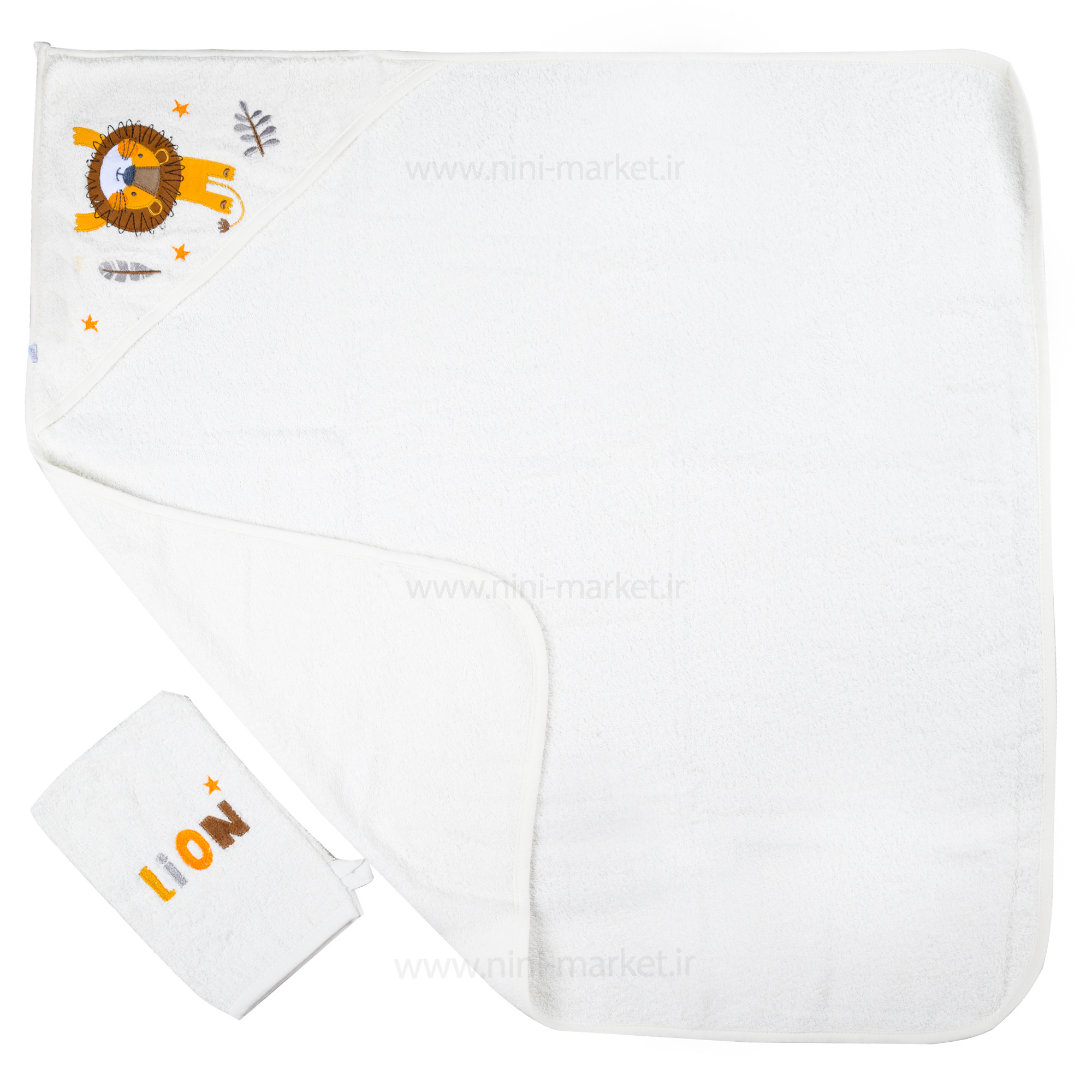 ست حوله دو تیکه طرح شیر رنگ سفید پاپو papo
