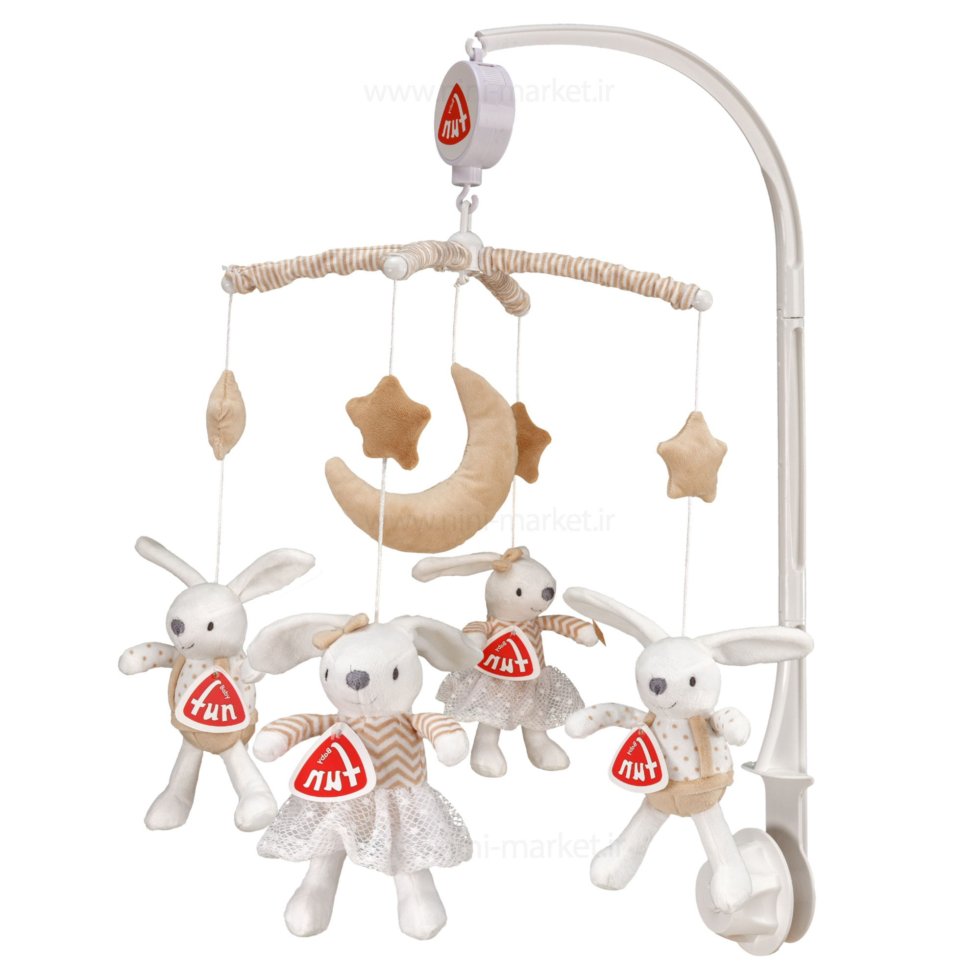 آویز بالای تخت کوکی طرح خرگوش رنگ کرم baby fun