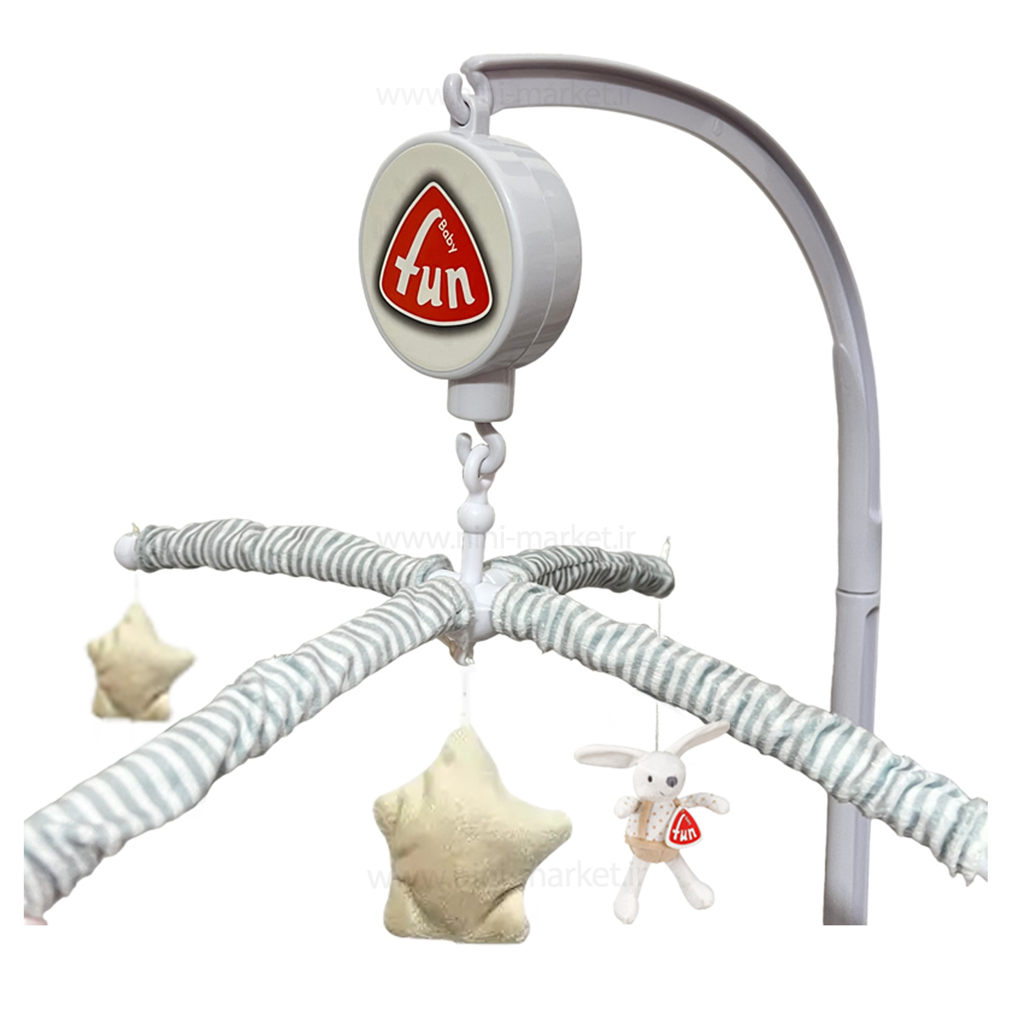 آویز تخت پولیشی ماه و ستاره وخرگوش محصولی باکیفیت از برند baby fun میباشد. آویز تخت کودک وسیلهای است که بالای تخت یا گهوارهٔ نوزاد وصل میشود تا کودک قبل از خواب سرگرم شود و راحتتر بخوابد. این آویز پولیشی کیفیت ساخت بالایی دارد و بادوام و سبک میباشد. جنس آویز مخمل کریستالی است. آویز تخت نوزاد دارای عروسکهای زیبا و بانمک فیل، ماه، ستاره میباشد که جنس آنها نرم است. عروسکهای آویز تخت را در صورت نیاز میتوان شست. محصول دارای یکپایه اتصال برای نصب آسان آن به تخت کودک میباشد. آویز تخت نوزاد دارای مکانیزم کوکی است و نیازی به استفاده از باتری ندارد. این کالا دارای چرخش ۳۶۰ درجه میباشد. آویز تخت فیل موزیکال است و دارای یک ملودی زیبا است که به خواب راحت کودک کمک میکند. آویزهای تخت موزیکال باعث آرامش نوزاد میشوند و با چرخش آرام و ملودی ملایمی که دارند موجب راحتتر خوابیدن نوزاد خواهند شد. این محصول باعث تقویت قوهٔ بصری، شنوایی و شناخت رنگهای جدید در کودک میشود.