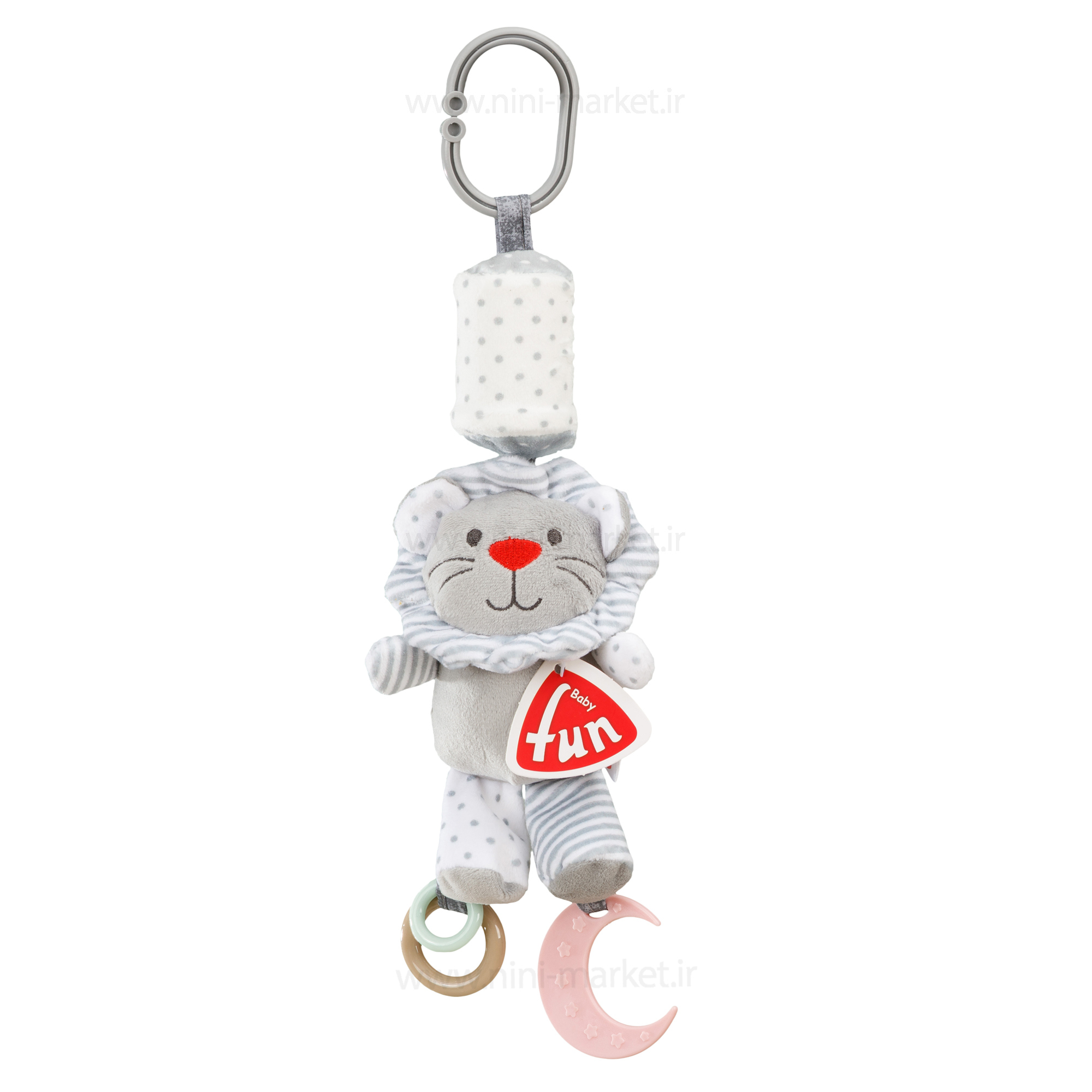 آویز کریر جغجغه ای طرح شیر رنگ طوسیbaby fun