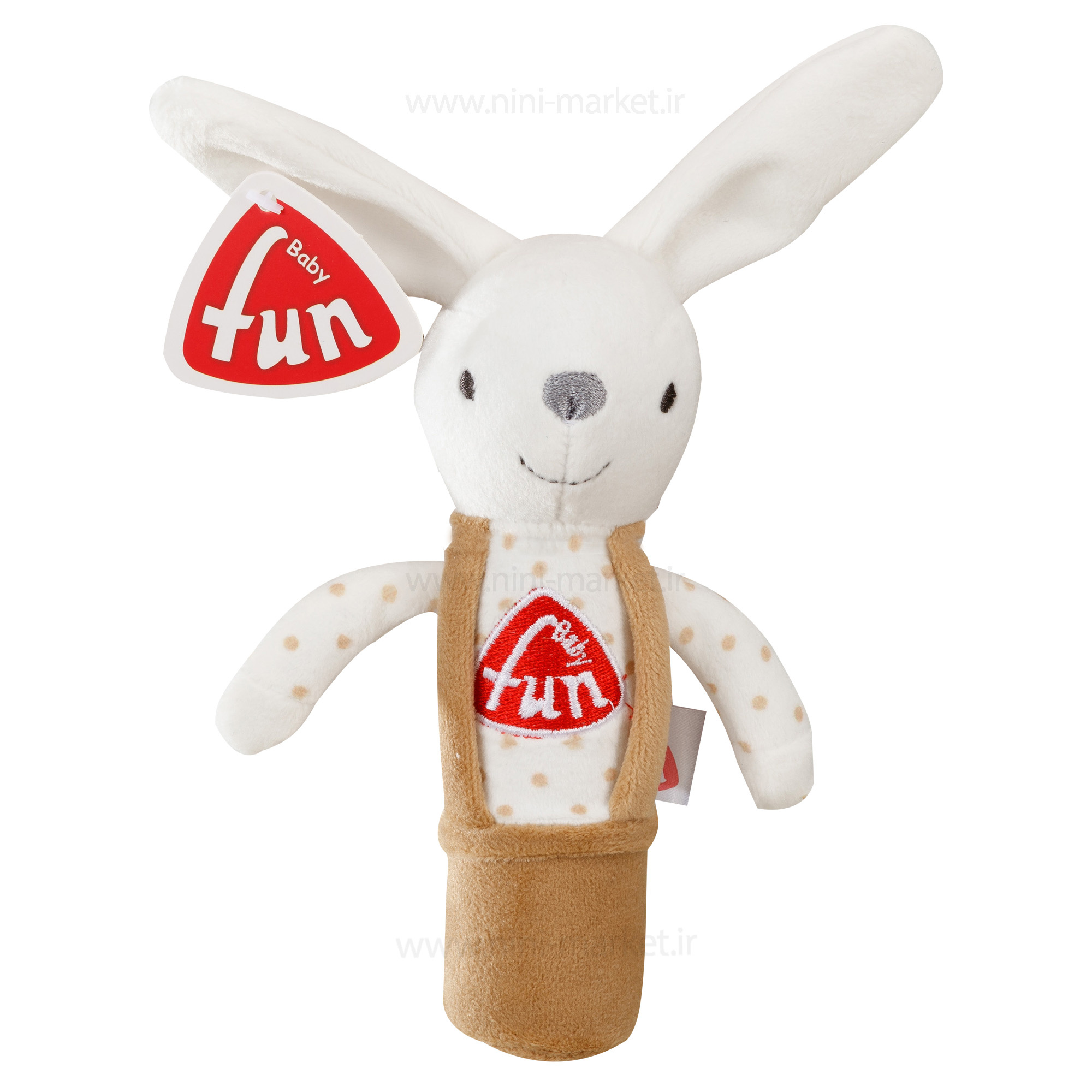 جغجغه سوسیسی طرح خرگوش پسررنگ کرم baby fun