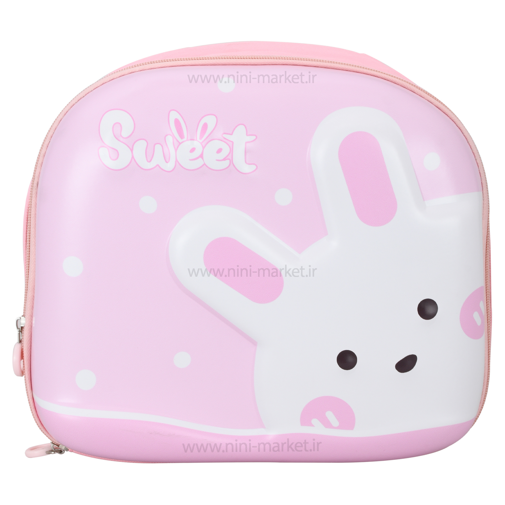 کوله پشتی طرح خرگوش سوییت بسیار سبک است و از کیفیت بالایی برخوردار است. این کوله پشتی دخترانه با طرحی جذاب و خاص خود، به کودک شما احساس خاصی از شادابی و امنیت می‌دهد. دو بند شانه ای پهن در پشت کیف با قابلیت تنظیم سایز و دسته کوچکی در بالای آن تعبیه شده که حمل ونقل آن را آسان تر نموده است، تا کودکان شما در آسایش و راحتی کامل باشند. در جلوی کیف از جنس فایبر استفاده شده و کوله طرحی سه بعدی به خود گرفته است و در پشت کوله از جنس برزنت کار شده و بسیار طبی و راحت است. همچنین در نقاط اتصال زیپ بصورت دوبل دوخت شده و این باعث شده تا از امکان لغزش آن جلوگیری کند. انتخاب این کوله پشتی بچه گانه برای فرزندتان به شما این امکان را می دهد تا فرزند دلبندتان با اعتماد به نفس بیشتری در هر جا حضور پیدا کند. این کوله با رنگ صورتی در سیسمونی نی‌نی مارکت عرضه می‌گردد.