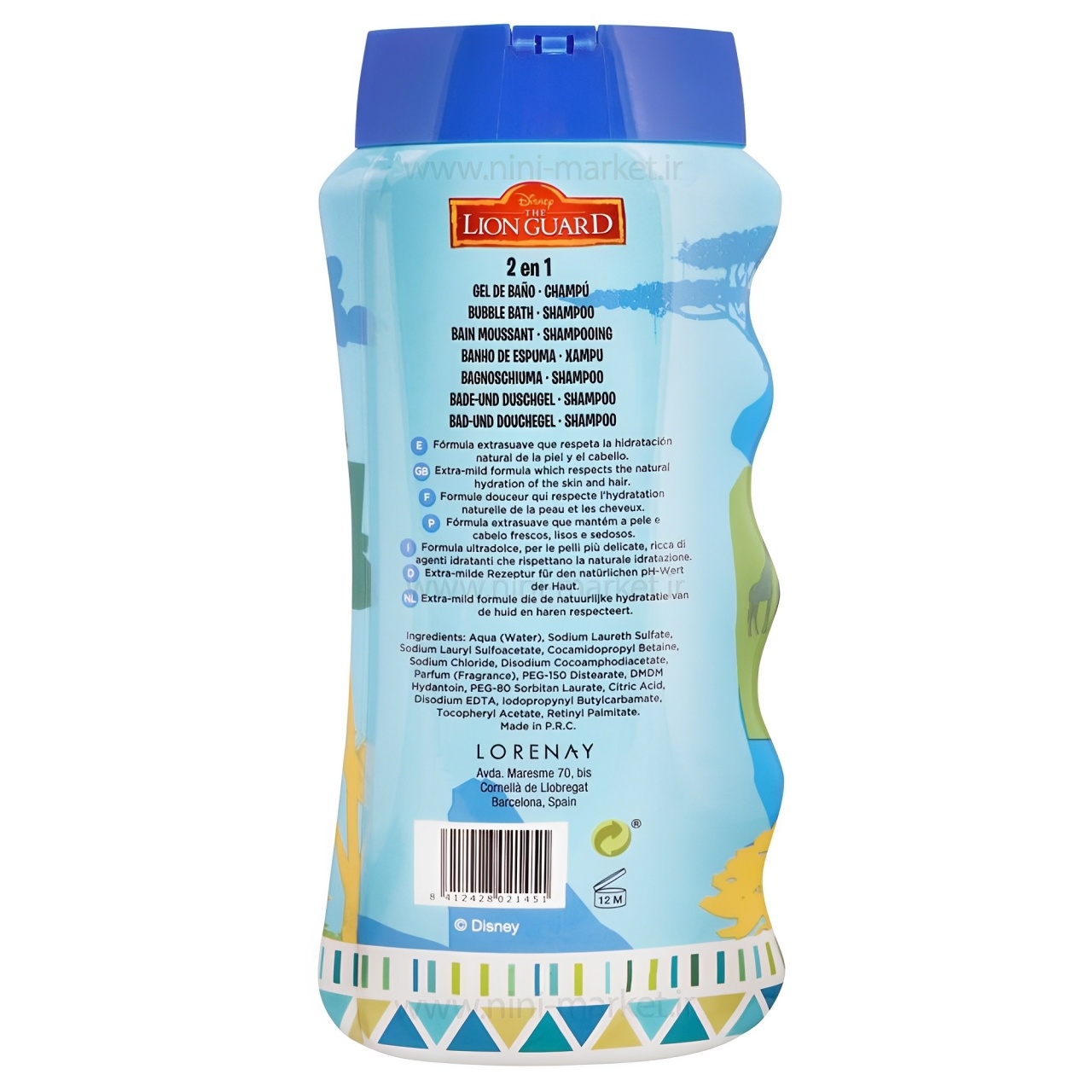 شامپو طرح گارد شیر دیزنی Disney مختص سر و بدن میباشد که مناسب انواع پوست میباشد. طرح روی شامپو و فوم حمام کودک دیزنی برگرفته از شخصیتهای کارتونی که هر کودکی را به حمامکردن تشویق میکند. پاککننده و تغذیهکننده مو و مناسب برای مصارف شخصی روزانه میباشد. این محصول عملکردی دوگانه دارد که هم بهعنوان شامپو قابلاستفاده است و هم بهعنوان کف (فوم) حمام و حالت ابری و حبابی در وان حمام ایجاد میکند