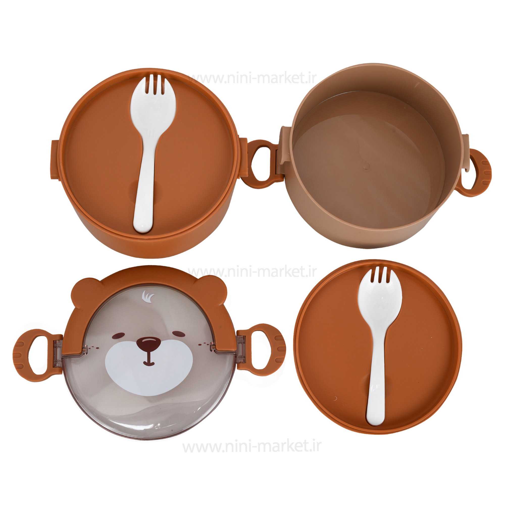 ظرف غذا خرس دو طبقه رنگ قهوه ای خارجی تهیه شده از مواد طبیعی که فاقد مواد شیمیایی و مضر است. به دلیل ابعادی که دارد به راحتی میتوان از آن در سفر و گردش های بیرون و حتی مهدکودک برای کودک دلبندتان غذای کمکی یا خوراکی بگذارید. بسیار سبک و قابلیت حمل آسان دارد. ظرف غذا طرح خرسی شامل 4 تکه می باشد . غذا خوردن کودکان موضوعی حائز اهمیت برای والدین است زیرا نقش مهمی دررشد و نمو کودک داشته و نیازهای بدنی وی را تامین می نماید، بنابراین استفاده از ظرف غذای که طرح جذاب وخاصی داشته باشد بهتر است و کودک را برای خوردن غذا وخوراکی به وجد می آورد. همچنین این ظرف غذاها علاوه بر رنگ بندی، حجم مناسبی هم دارند و تا چندین سال می توانید برای کودک دلبندتان از آن استفاده نمایید.