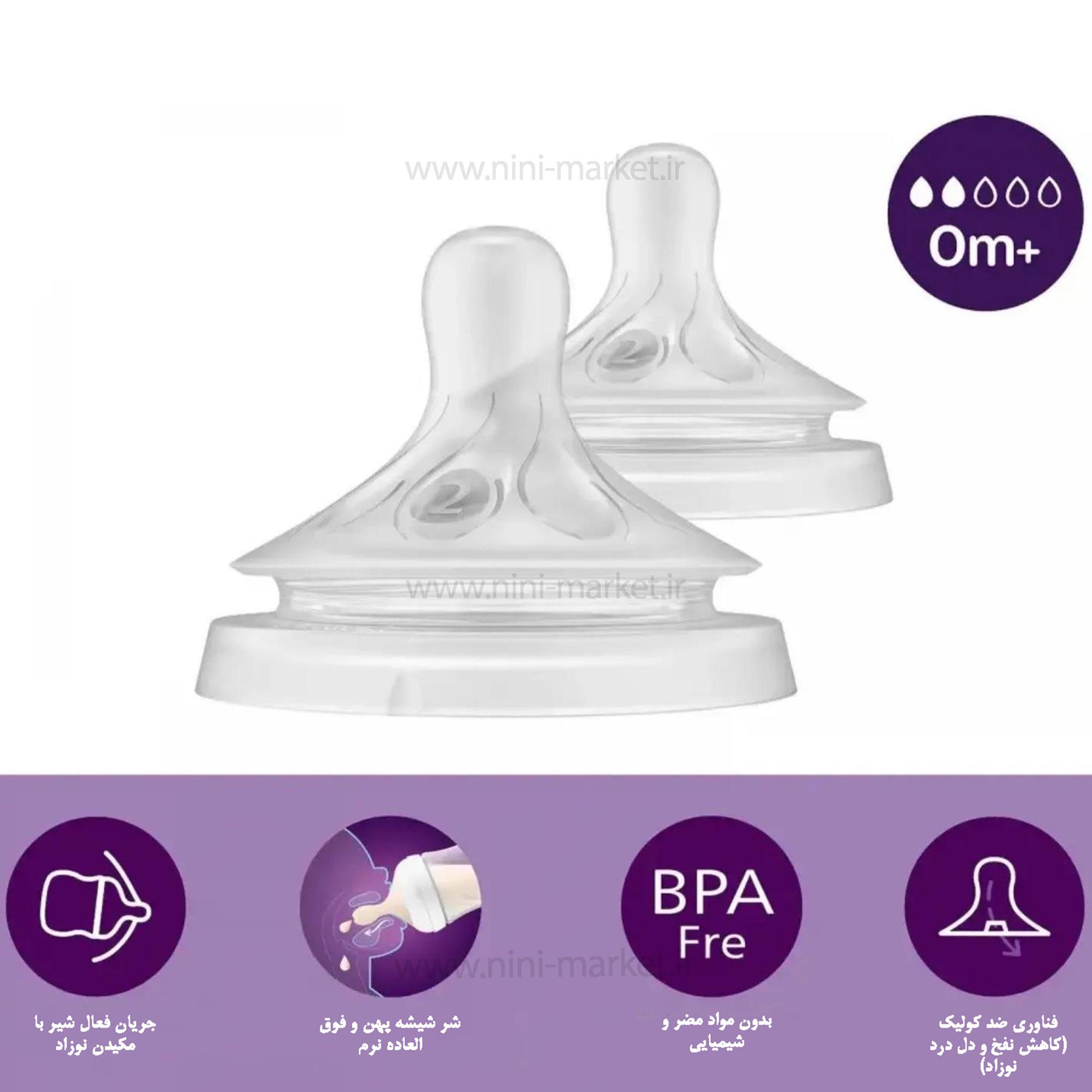 سر شیشه نچرال جدید +0 ماه 2 قطره AVENT، مناسب برای نوزادان از بدو تولد می باشد. این سرشیشه تولید شده از سیلیکون مخصوص نرم و منعطف است که کاملا خوشایند کودک برای به دهان گرفتن است. همچنین این سرشیشه فاقد مواد مضر و شیمیایی است. این سر شیشه با طراحی عالی خود کاملا مطابق با فرم دهان و فک نوزادان ساخته شده است، و به عبارتی می توان گفت این سرشیشه، نگرانی شما را کاملا در جهت رفلکس معده و کولیک نوزاد دلبندتان بر طرف کرده و از نفخ و سکسکه نوزاد جلوگیری می کند. همچنین این سر شیشه به صورت اتو جریان شیر را برای کودک کنترل می کند، همانند شیر دهی طبیعی از سینه مادر کاملا دلخواه فرزند دلبندتان می شود. این سر شیشه را می توانید در سیسمونی نی نی مارکت تهیه کنید.