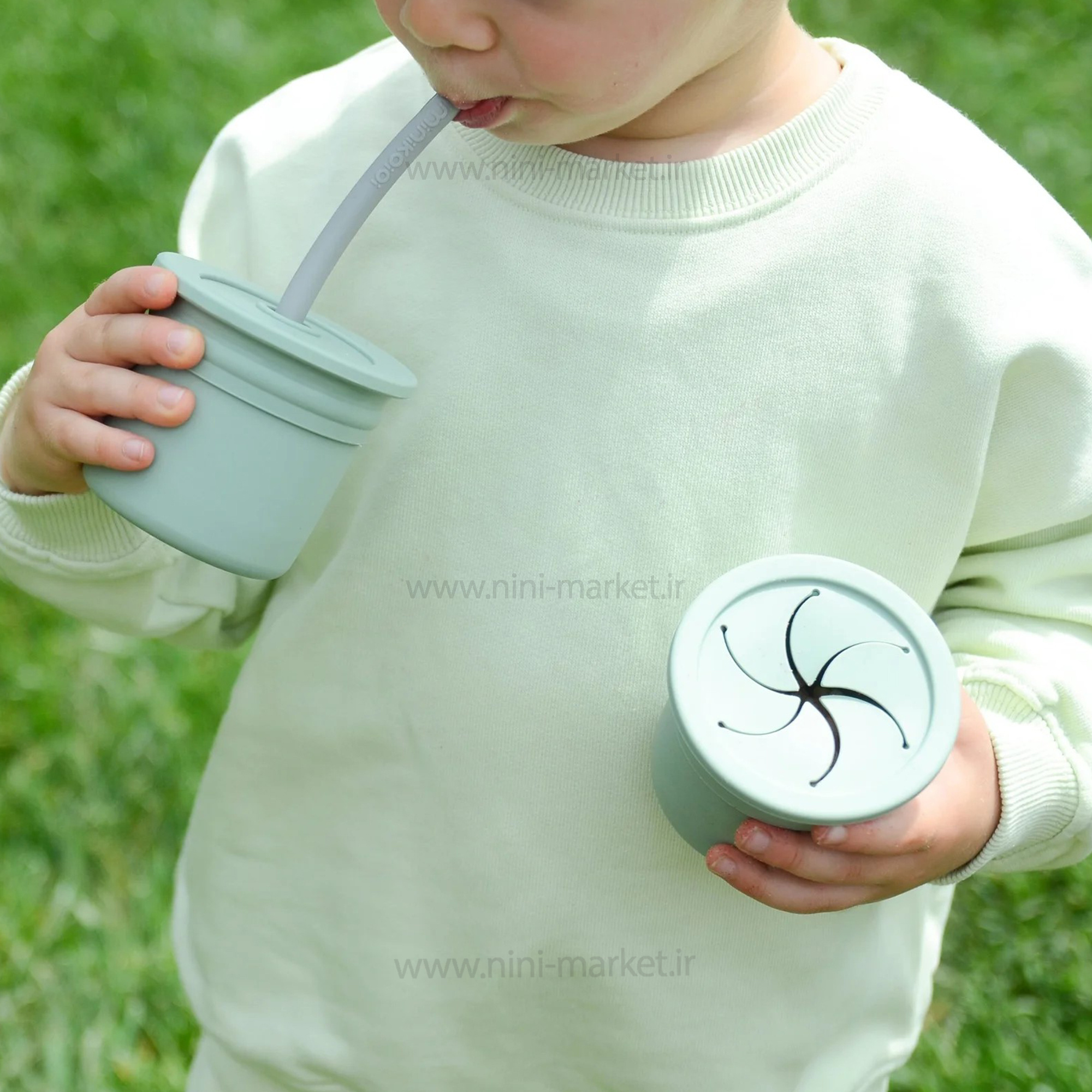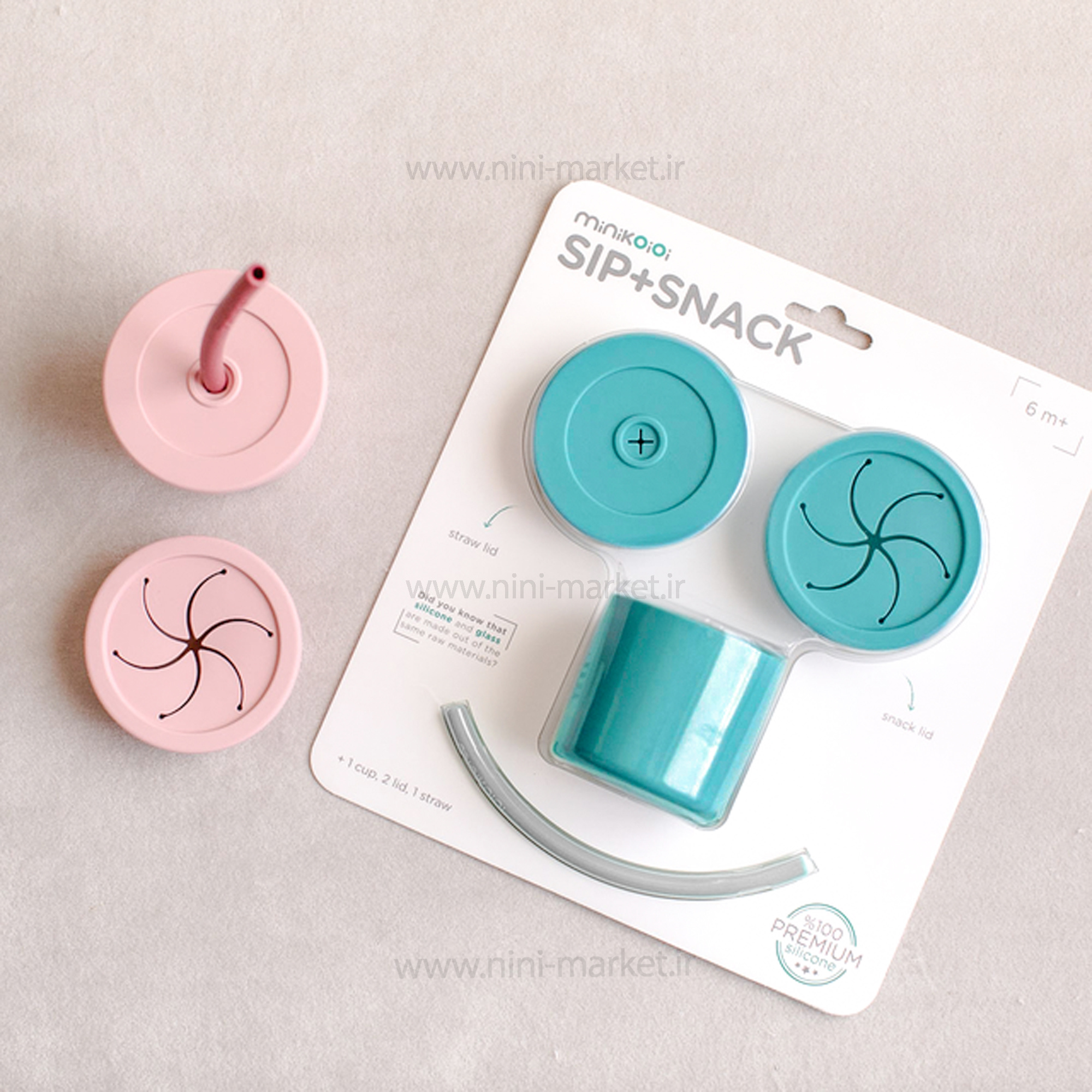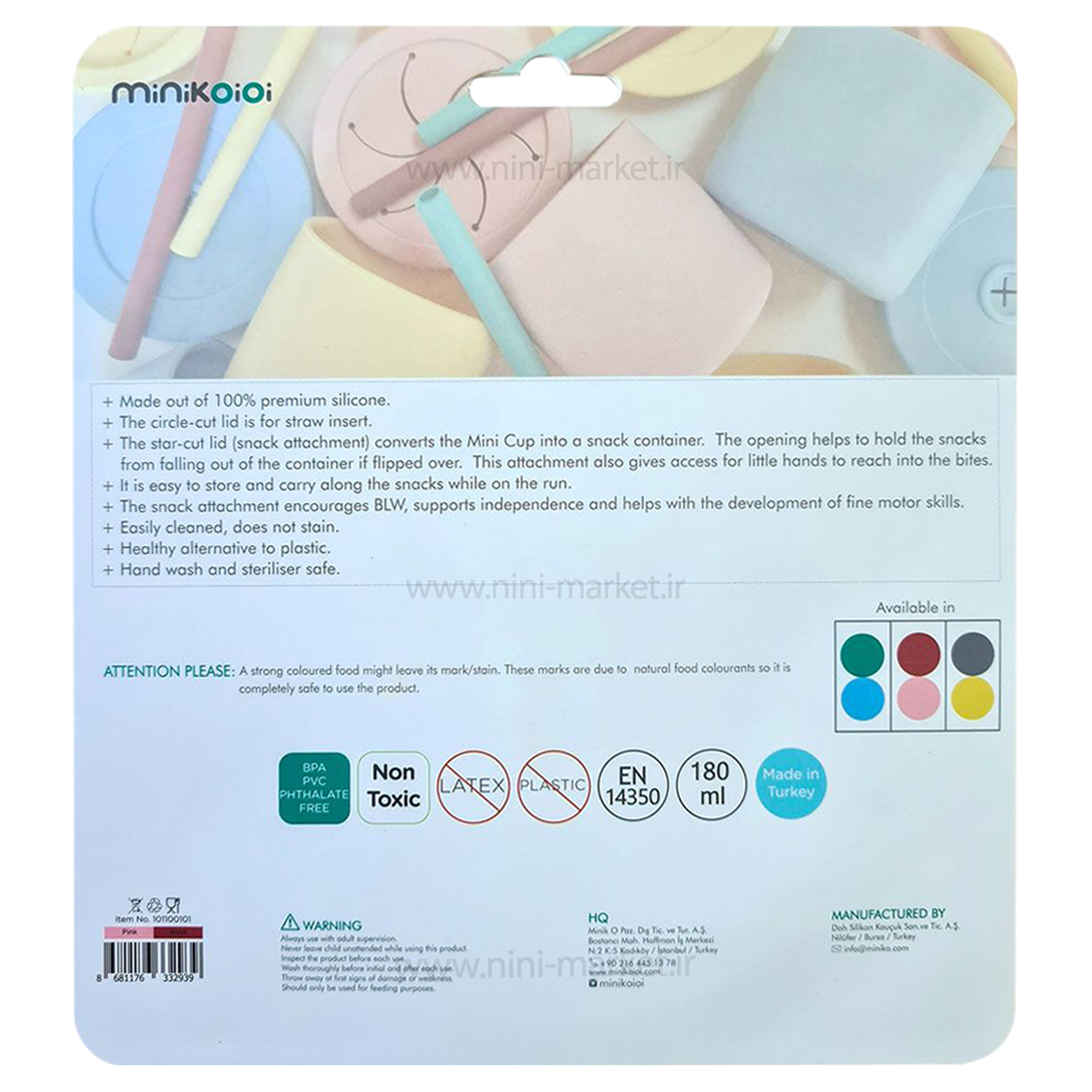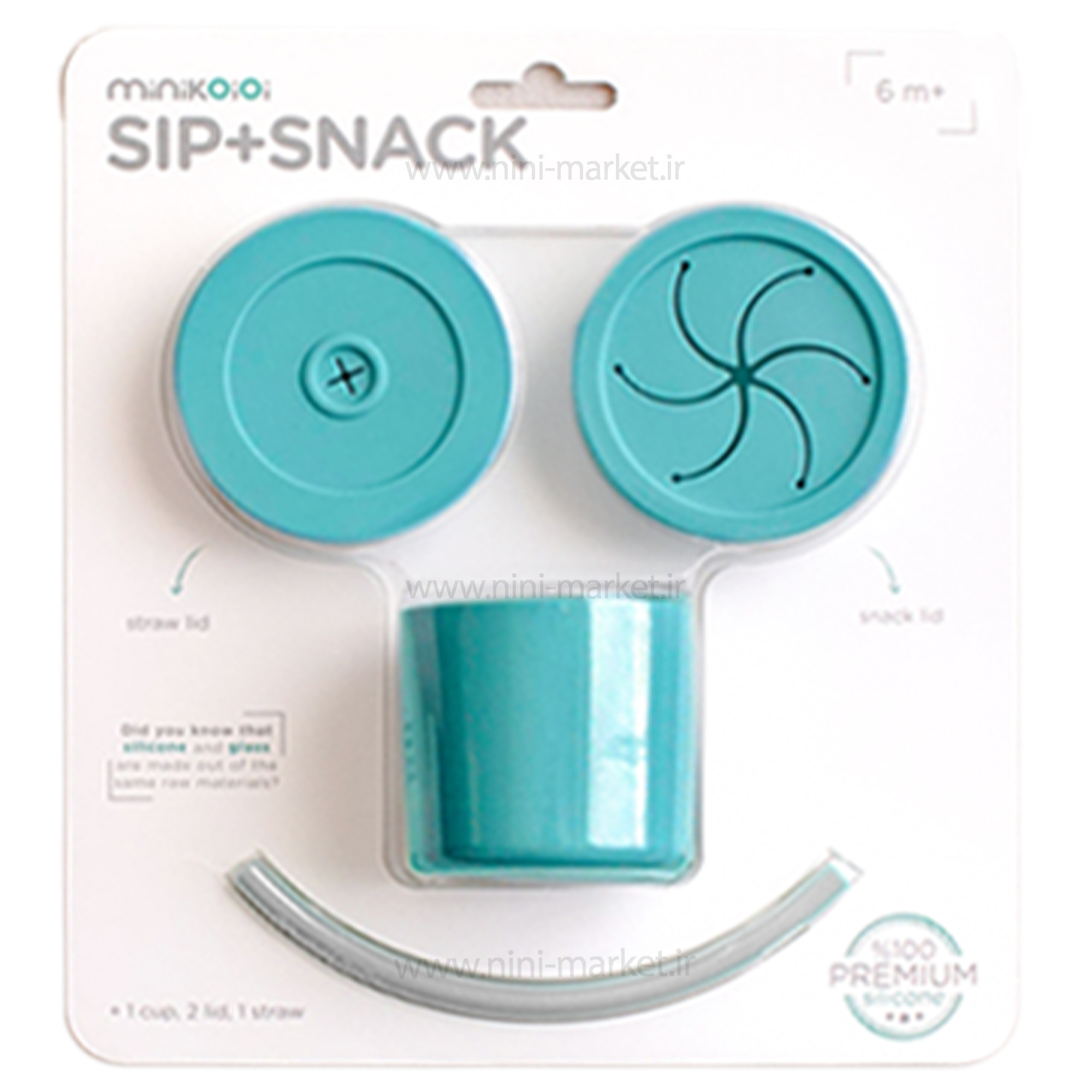 لیوان دو کاره سلیکونی رنگ آبی فیروزه ای مینیک اوی اوی Minik Oioi از سیلیکون 100٪ درجه مواد غذایی ساخته شده است. لیوان دوکاره مینیک اوی اوی MinikOiOi به صورت دومنظوره طراحی شده است. درصورت قرار گرفتن درپوش اسنک خوری بر روی لیوان ، میتوانید خوراکی های جامد ریز را داخل آن ریخته و به کودک بدهید. کودک میتواند به راحتی دست خود را داخل آن کرده و خوراکی ها را بیرون بیاورد و میل نماید. همچنین با قرار گرفتن درپوش مخصوص نگهداری نی و عبور نی از داخل سوراخ روی آن از این محصول به عنوان لیوان نی دار استفاده نمایید. به راحتی تمیز می شود و ضد لک و بدون باکتری است.