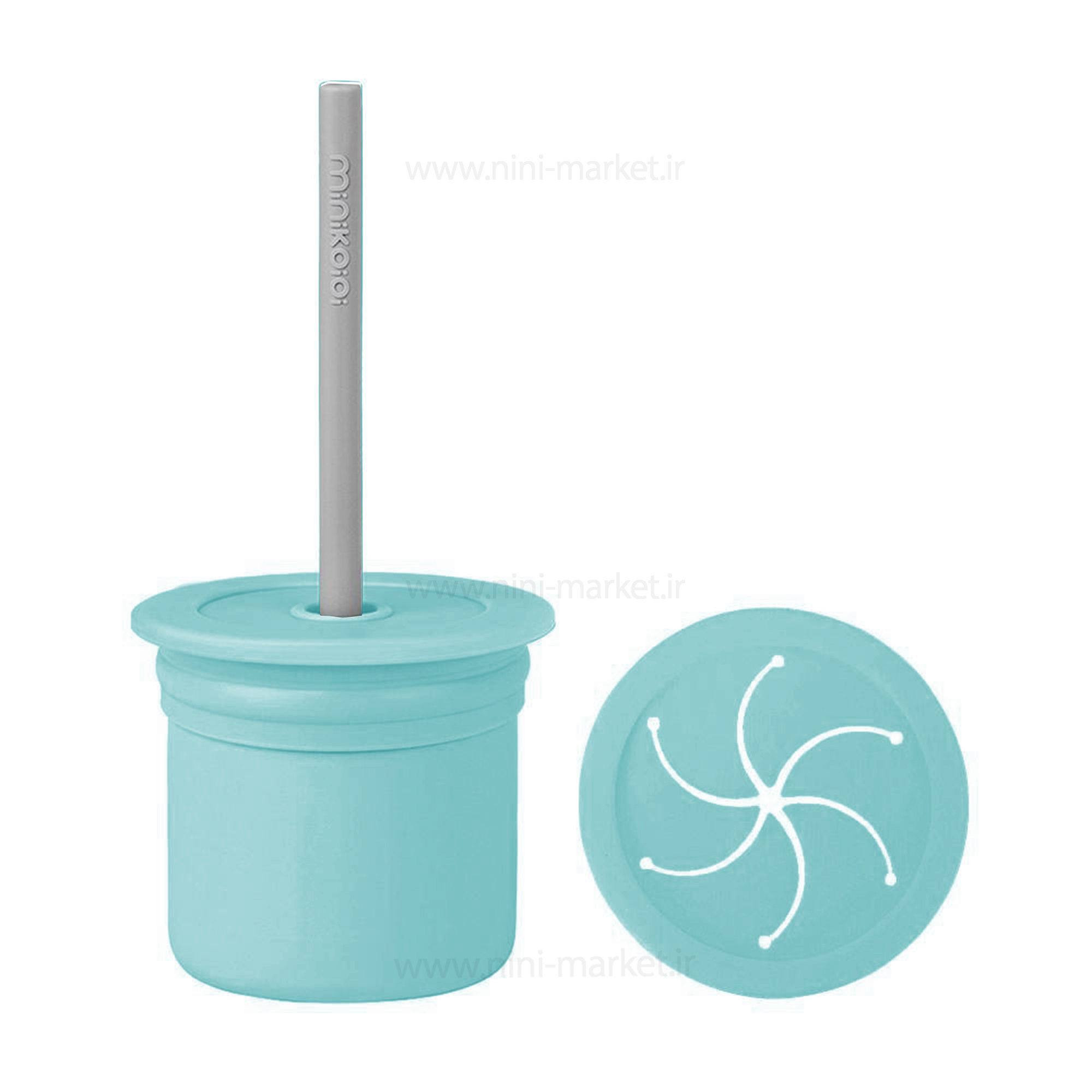 لیوان دو کاره سلیکونی رنگ آبی فیروزه ای مینیک اوی اوی Minik Oioi