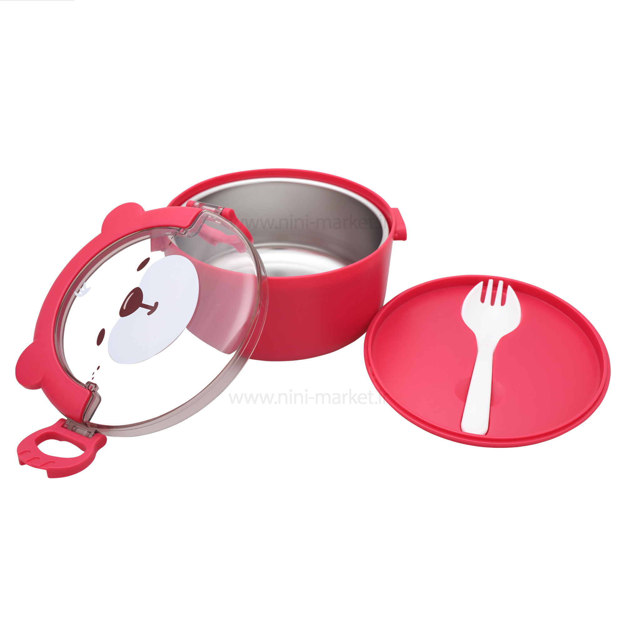 ظرف غذا استیل طرح خرس یکطبقه رنگ سرخابی خارجی یک ظرف غذای باکیفیت و کاربردی میباشد که یک گزینه عالی برای کودکانی است که تازه شروع به غذا خوردن کردهاند و گزینه عالی برای بردن غذا با خود هنگامی که خارج از خانه هستین. گنجایش این ظرف غذا به اندازهٔ یک وعدهٔ کامل کودک است. رنگ این ظرف مثل اسباببازیهای کودک شاد و زیبا طراحی شده. قسمت داخلی ظرف غذا از جنس استیل ضدزنگ ۳۰۴ و جنس بیرونی پلی پروپلین است. این محصول زیبا و باکیفیت برای قراردادن غذا و انواع خوراکی برای فرزند دلبندتان گزینه مناسبی میباشد.به همراه این محصول یک چنگال هم قرار دارد.