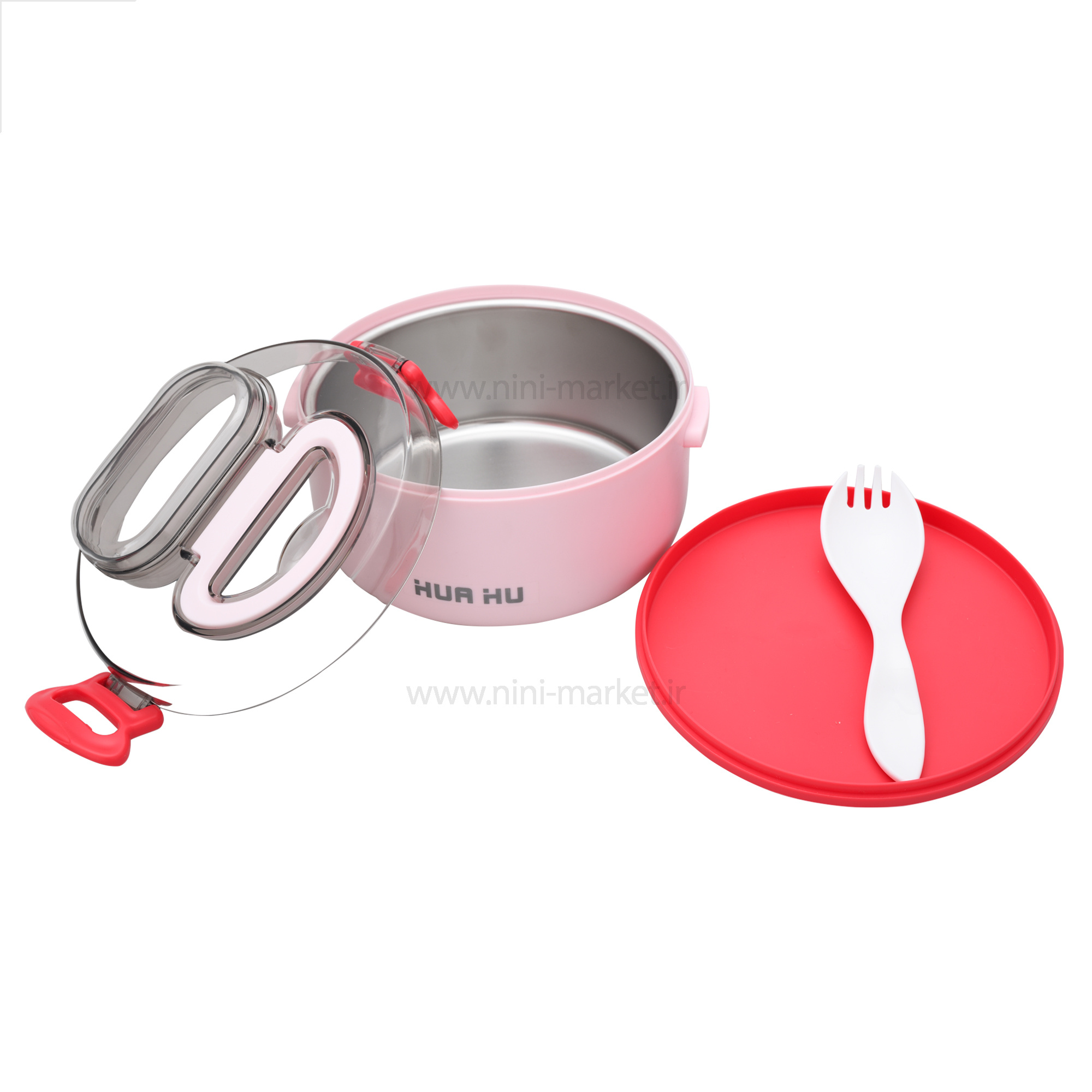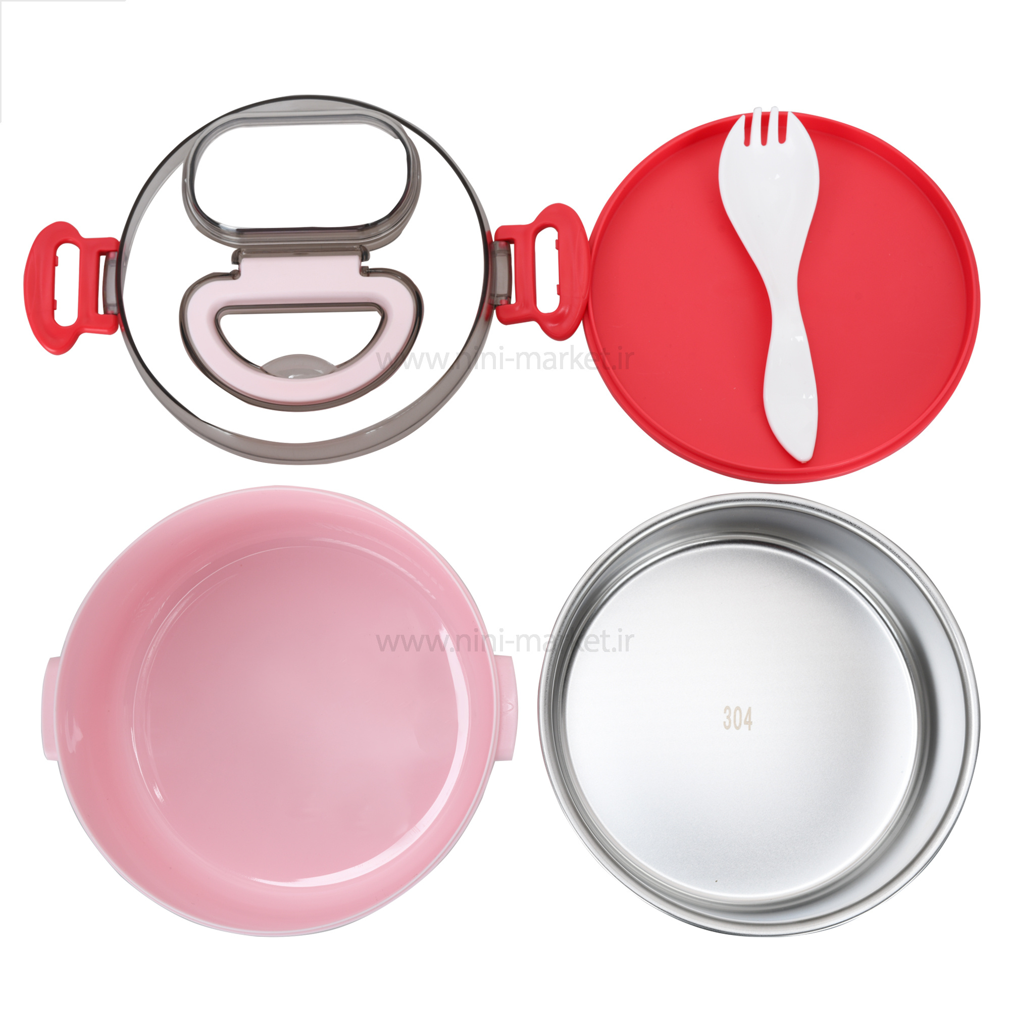 ظرف غذا استیل یک طبقه رنگ صورتی خارجی
