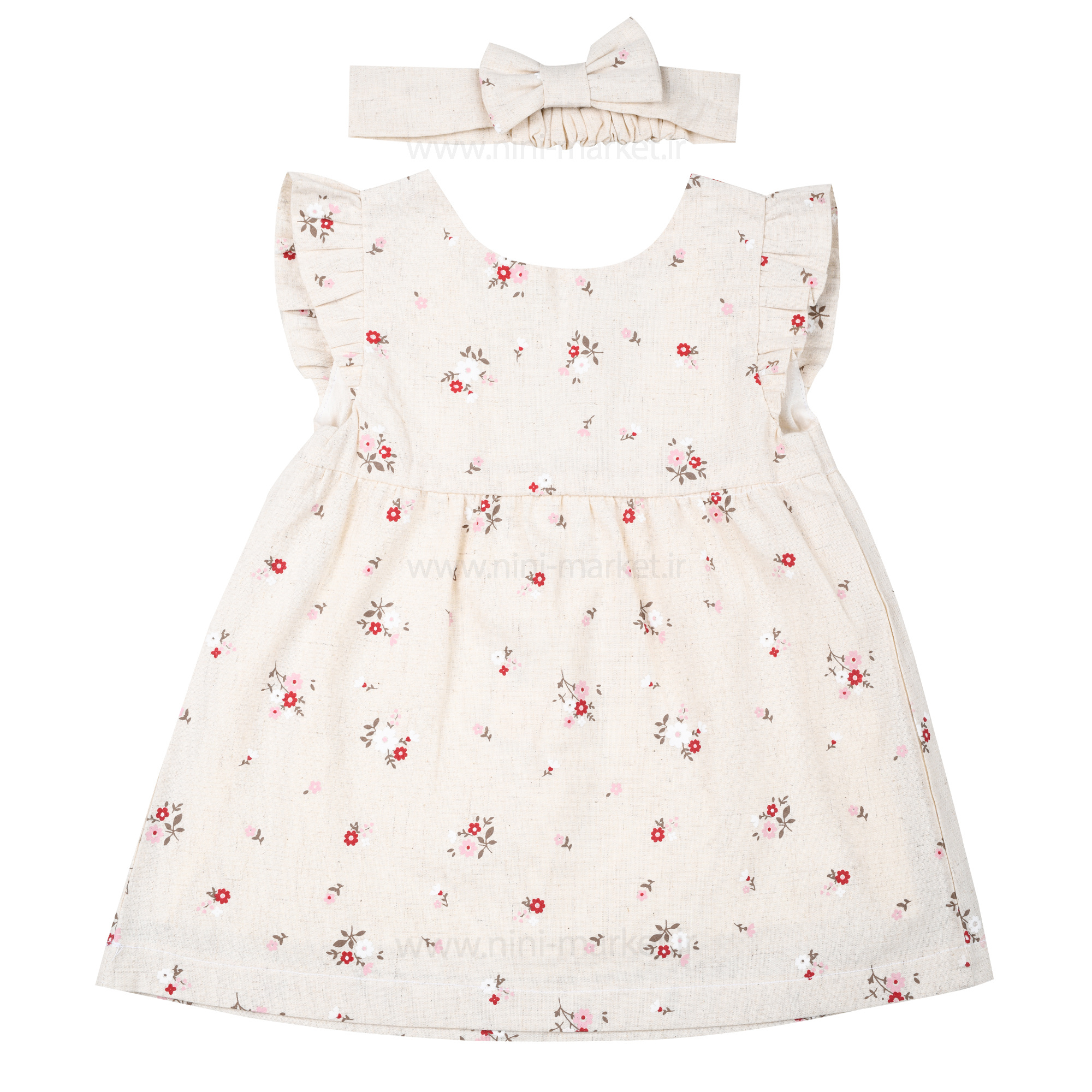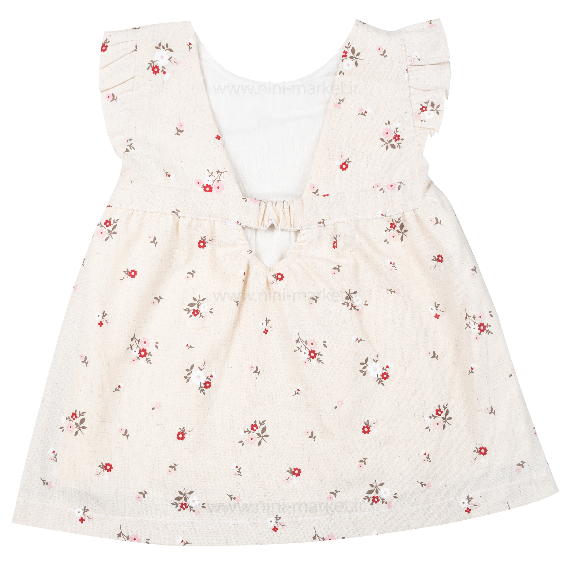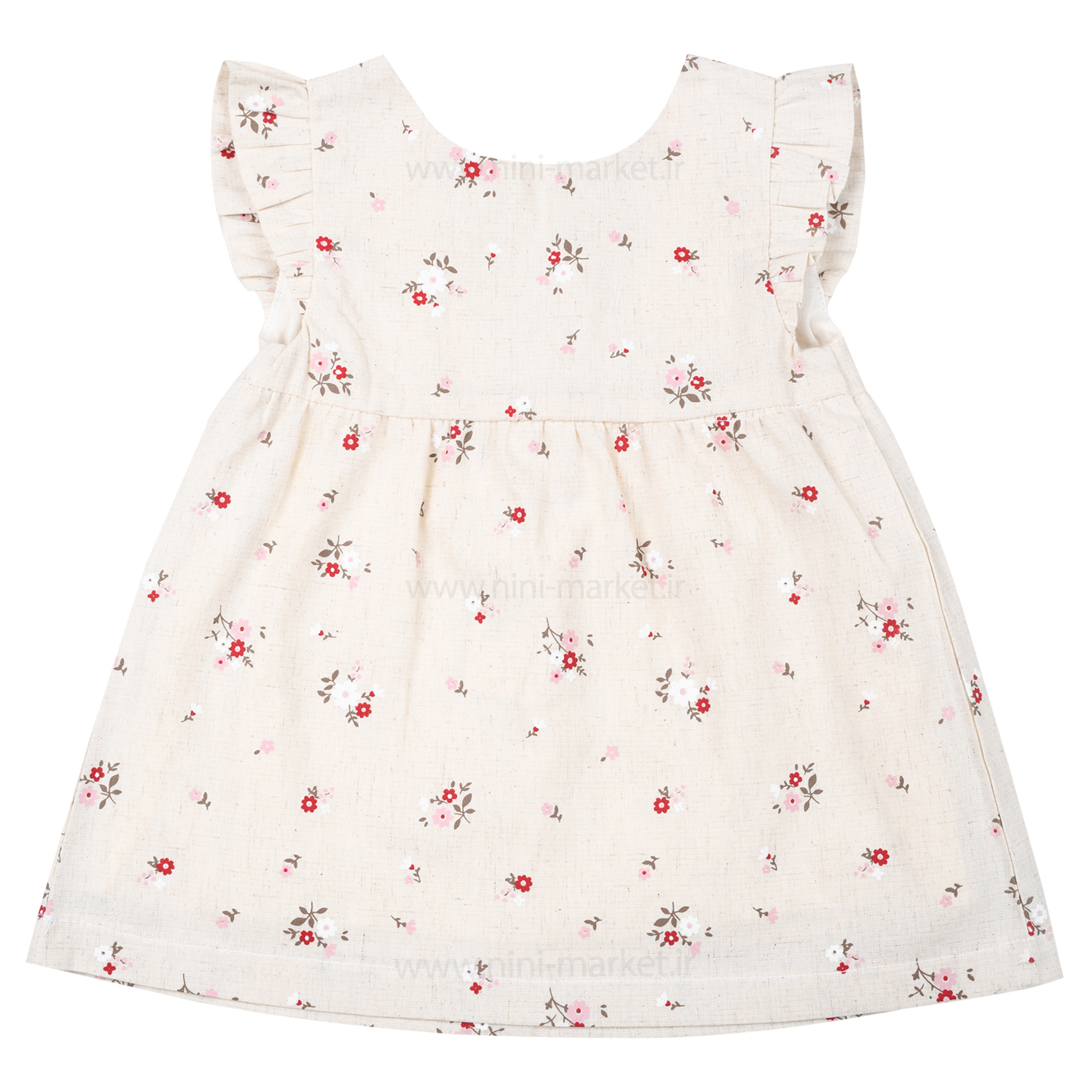 پیراهن دخترانه طرح گل سایز 18-24 ماه رنگ خاکی پاپو papo