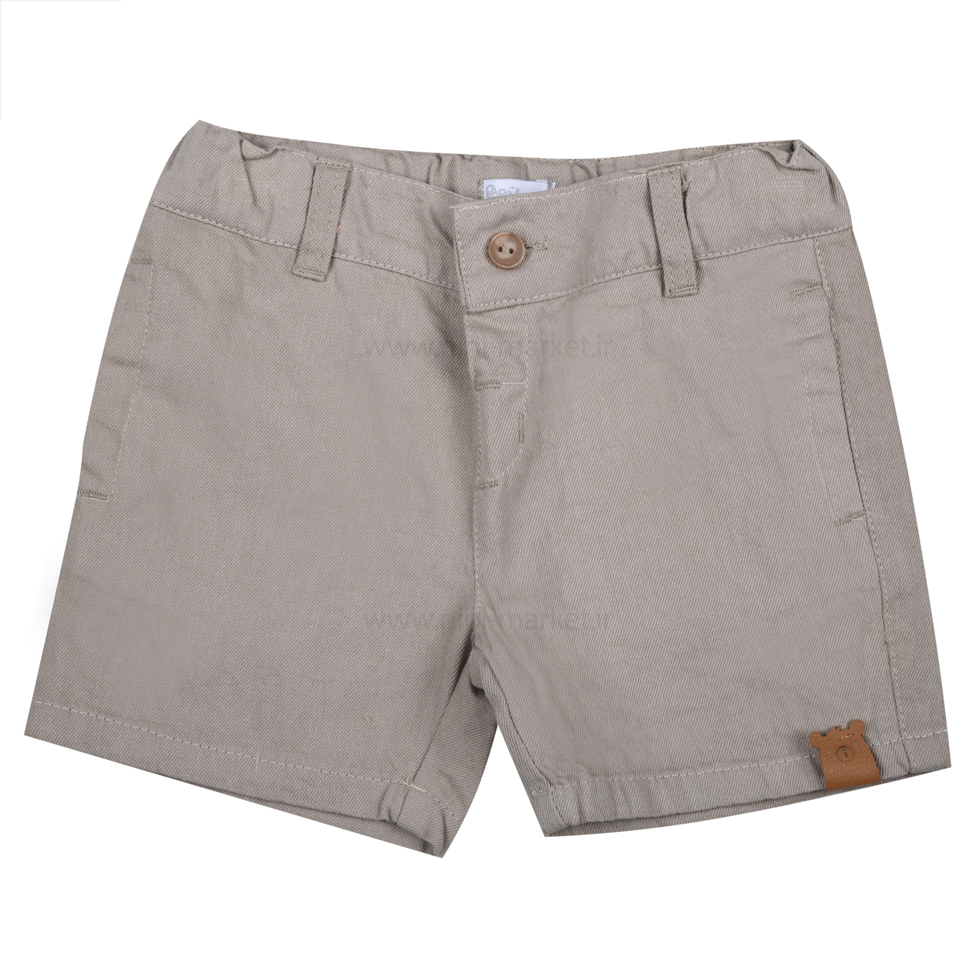 شورت کتان اسپرت طرح خرس رنگ کرمی پاپو papo