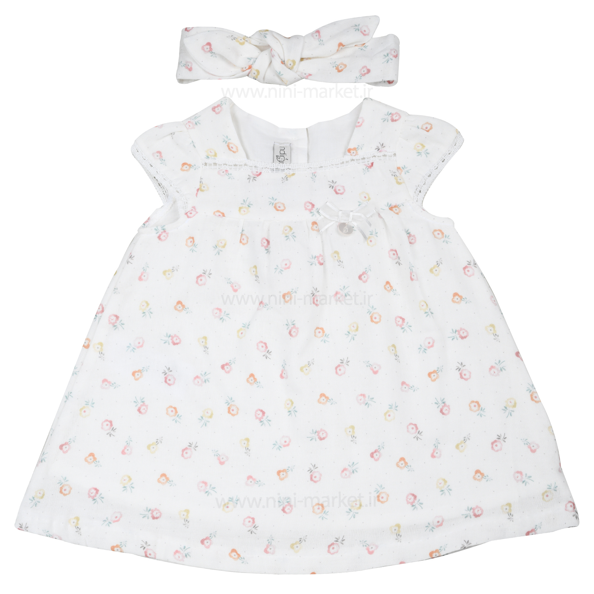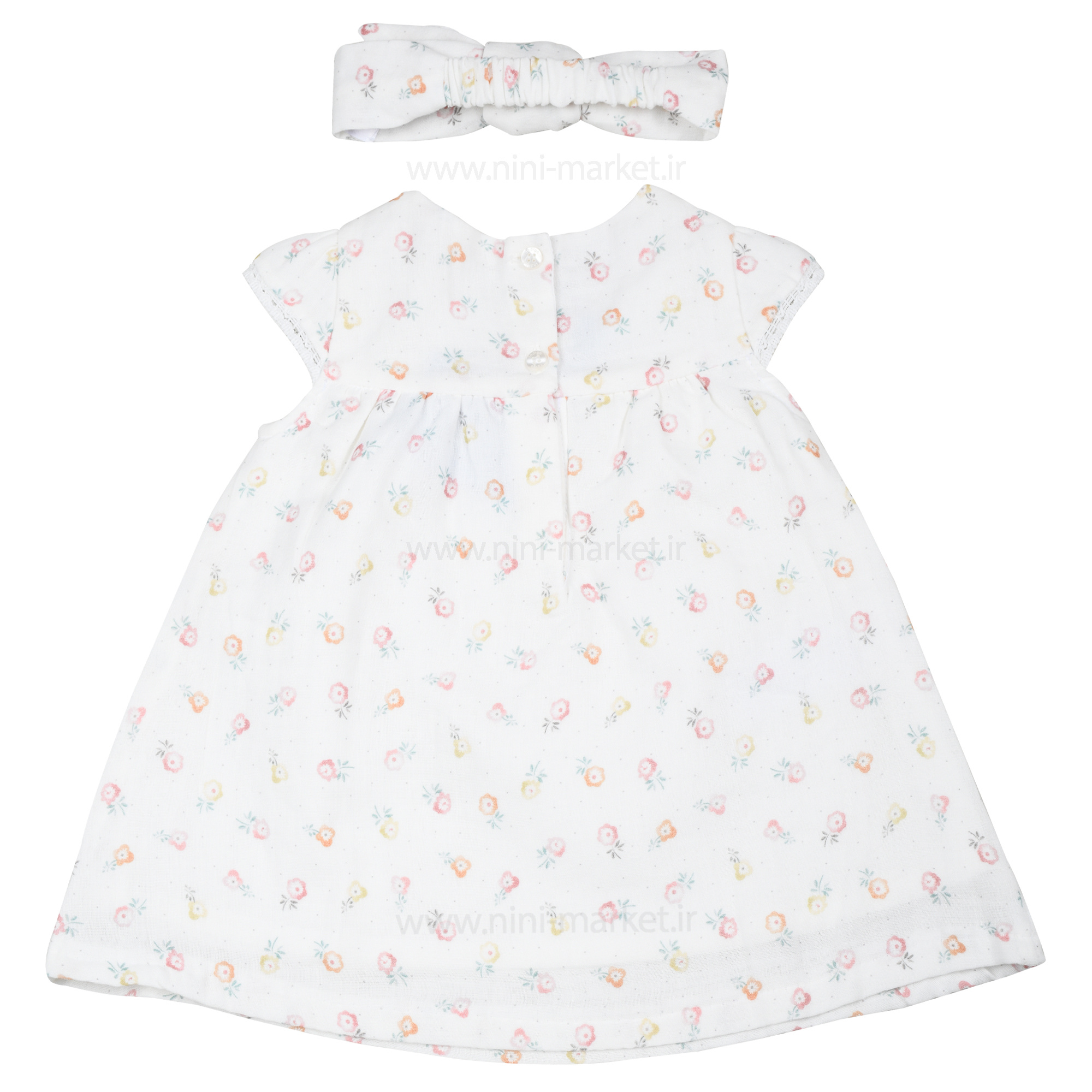 پیراهن دخترانه مدل نیوشا طرح گل گلی رنگ سفید ایندیگو indigo