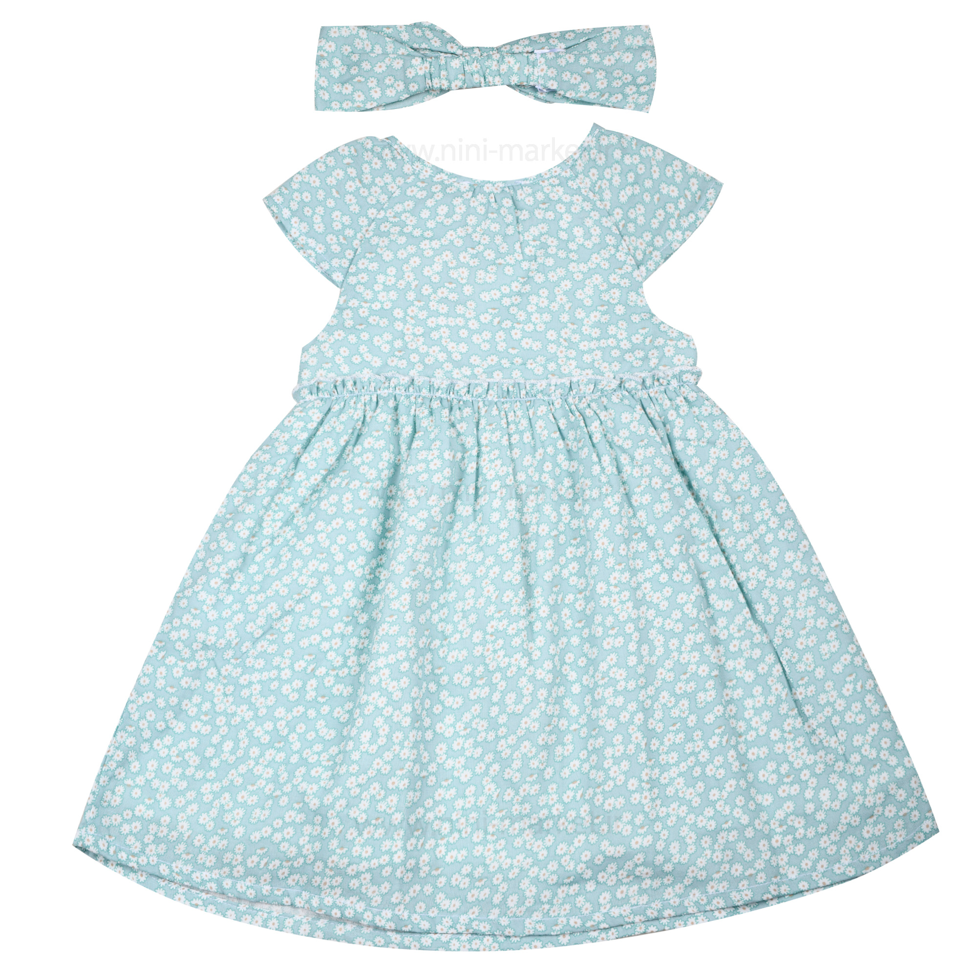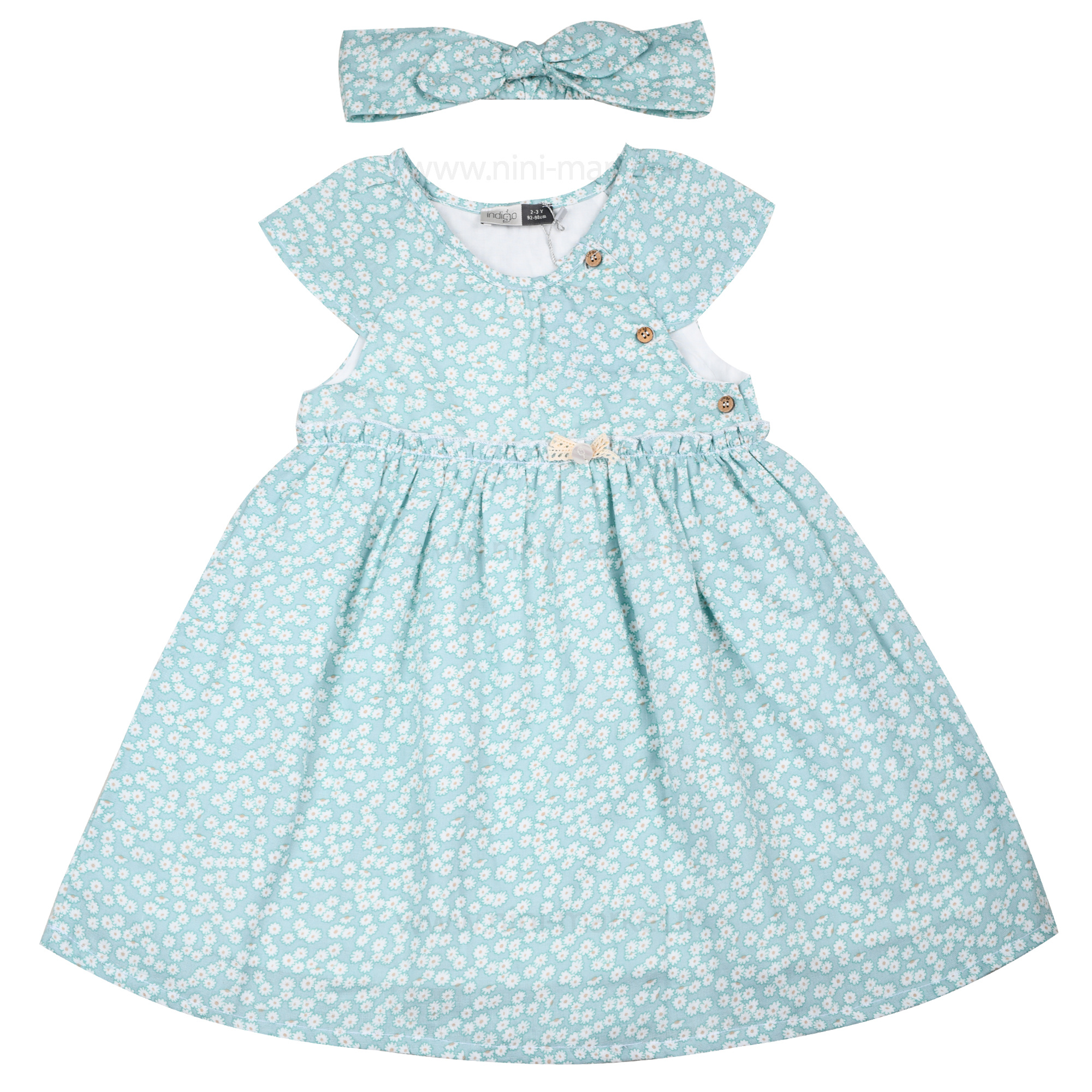 پیراهن دخترانه مدل گلدیس طرح بابونه رنگ سبز ایندیگو indigo