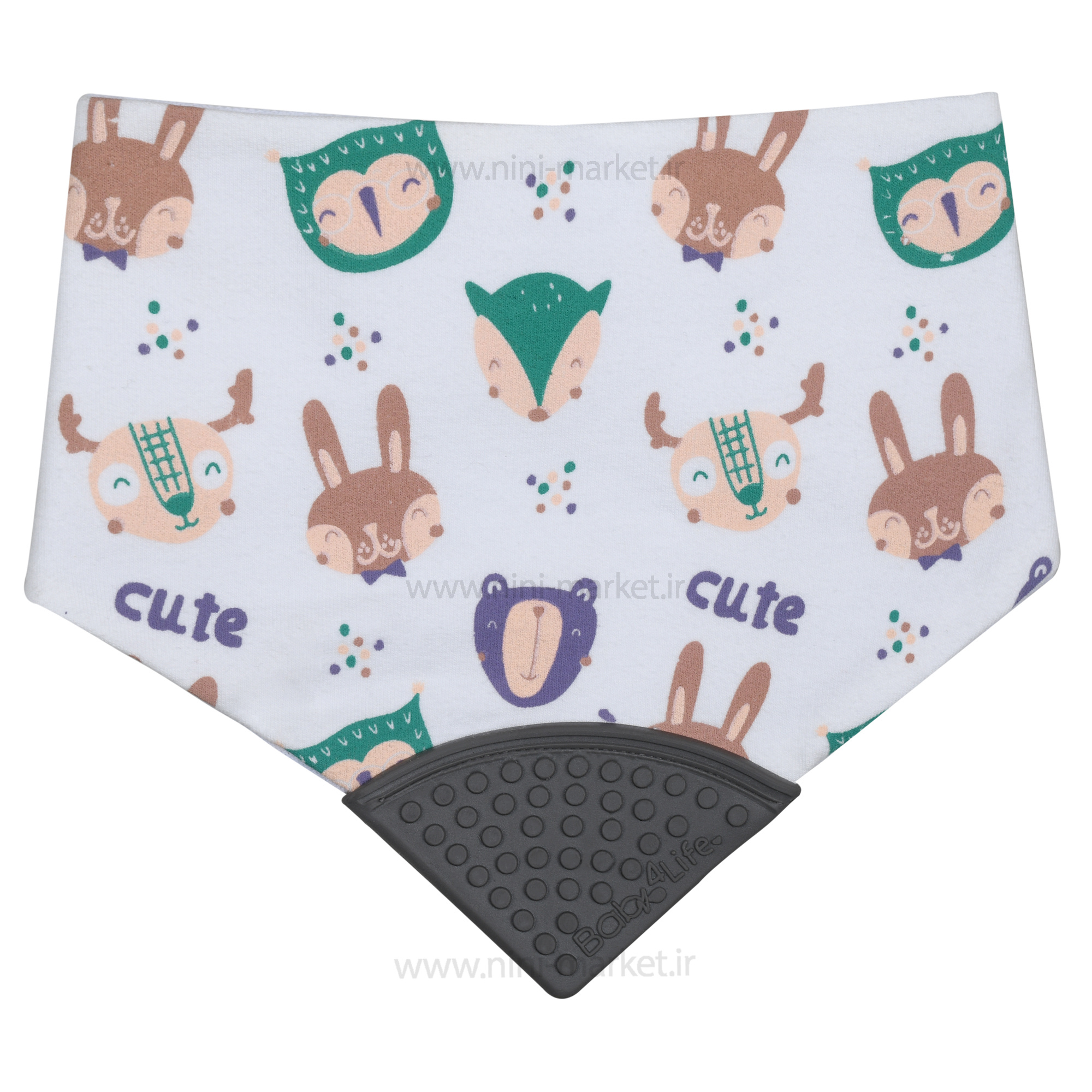 پیشبند سه گوش دندانگیر دار طرح حیوانات رنگ طوسی بیبی فور لایف babay4life