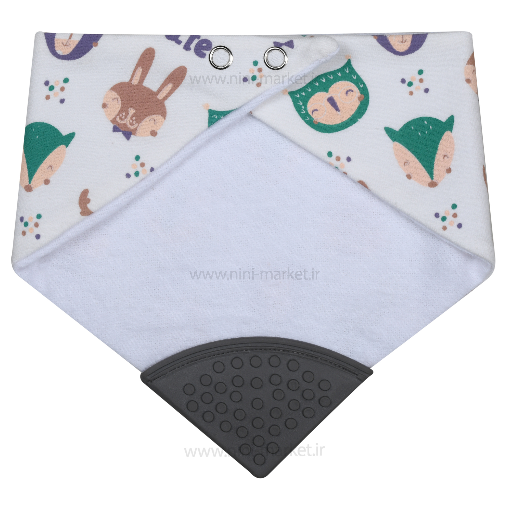 Triangular apron with teether, animals design, gray color, code 2892, brand babay4life