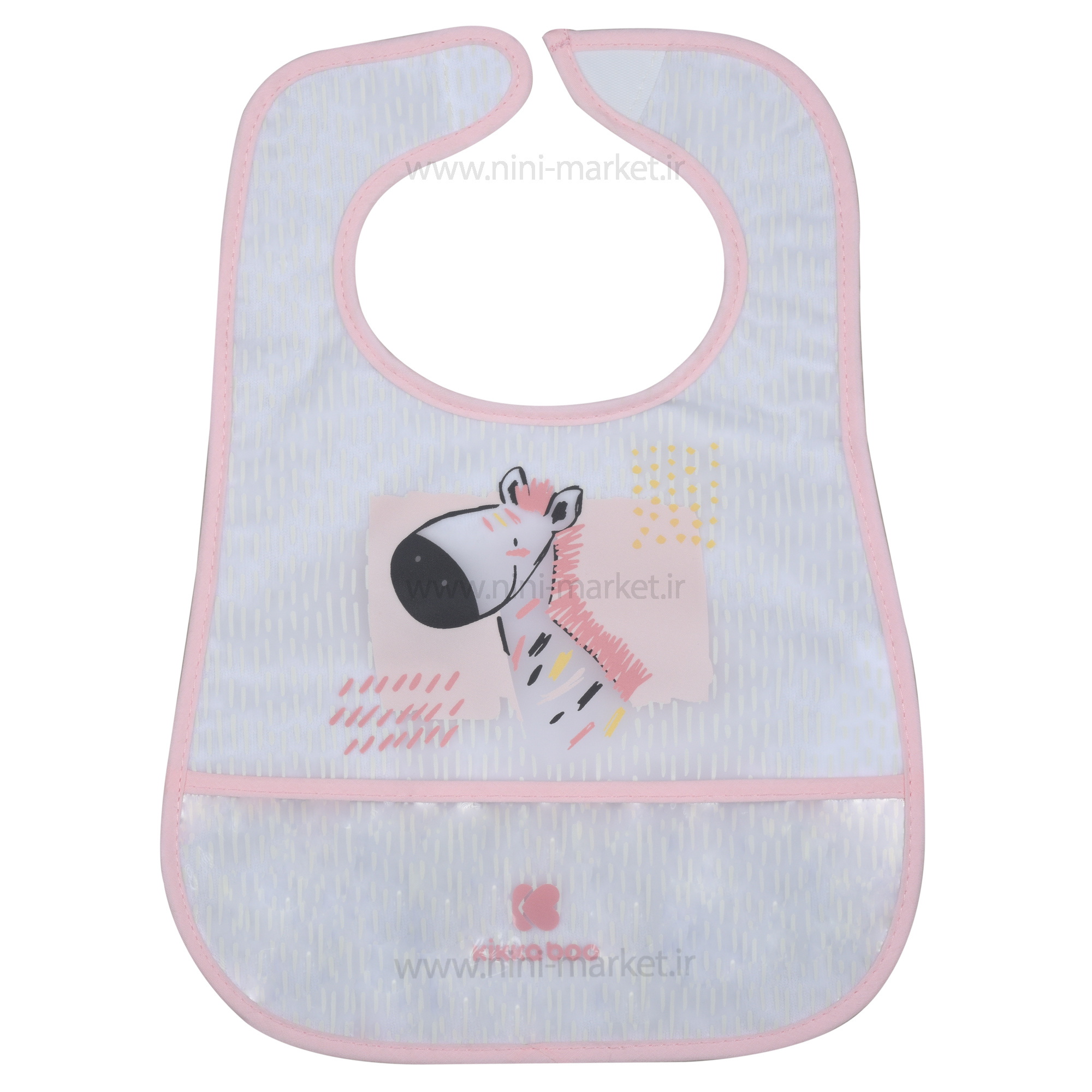 پیشبند سیلیکونی پشت حوله ای تکی طرح گورخر رنگ صورتی کیکابو kikkaboo