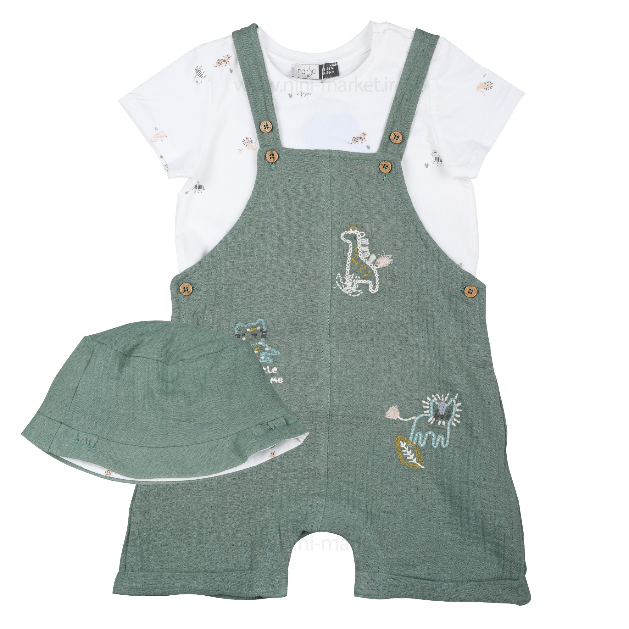 رامپر پسرانه مدل لیام طرح حیوانات رنگ سبز indigo یک گزینه عالی برای پسر بچه خوش تیپ شما در فصل بهار و تابستان است . جنس رامپر ایندیگو بسیار نرم و لطیف و در عین لطافت کاملا خنک و ضد حساسیت و به پوست کودک آسیبی وارد نمی کند. با فرا رسیدن فصل تابستان و گرم شدن آب و هوا نیاز به لباس هایی دارید که بدن فرزندتان را خنک نگه دارد و همچنین دارای کیفیتی خوب و جنس درجه یک باشد تا پوست کودک حساسیت ندهد و آسیبی به پوست فرزندتان وارد نکند. این رامپرها علاوه بر جنس خوب با کیفیتی که دارد تن خوری شیک و راحتی نیز دارد. طرح روی آن حیوانات می باشد که به صورت پترن درامده است.رامپر دو بنده به همراه تیشرت و کلاه است , و همچنین رامپر دوبنده و تیشرت به هم متصل نیستند