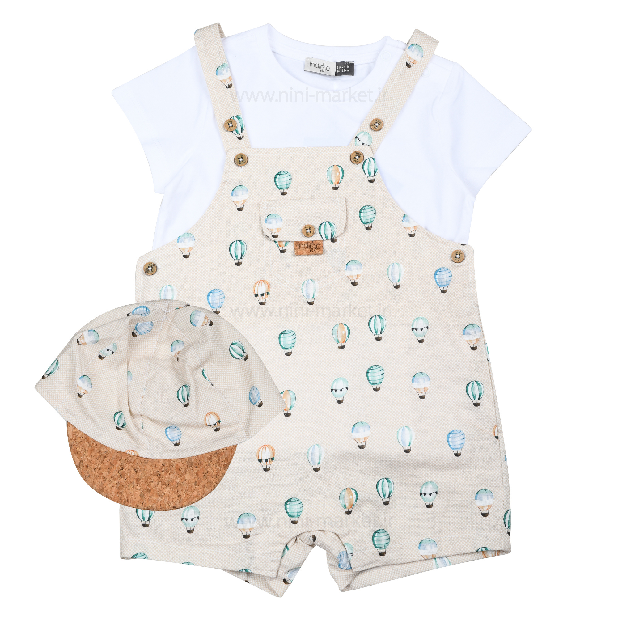 پیشبندی شورتی پسرانه طرح بالن رنگ کرمی ایندیگو indigo