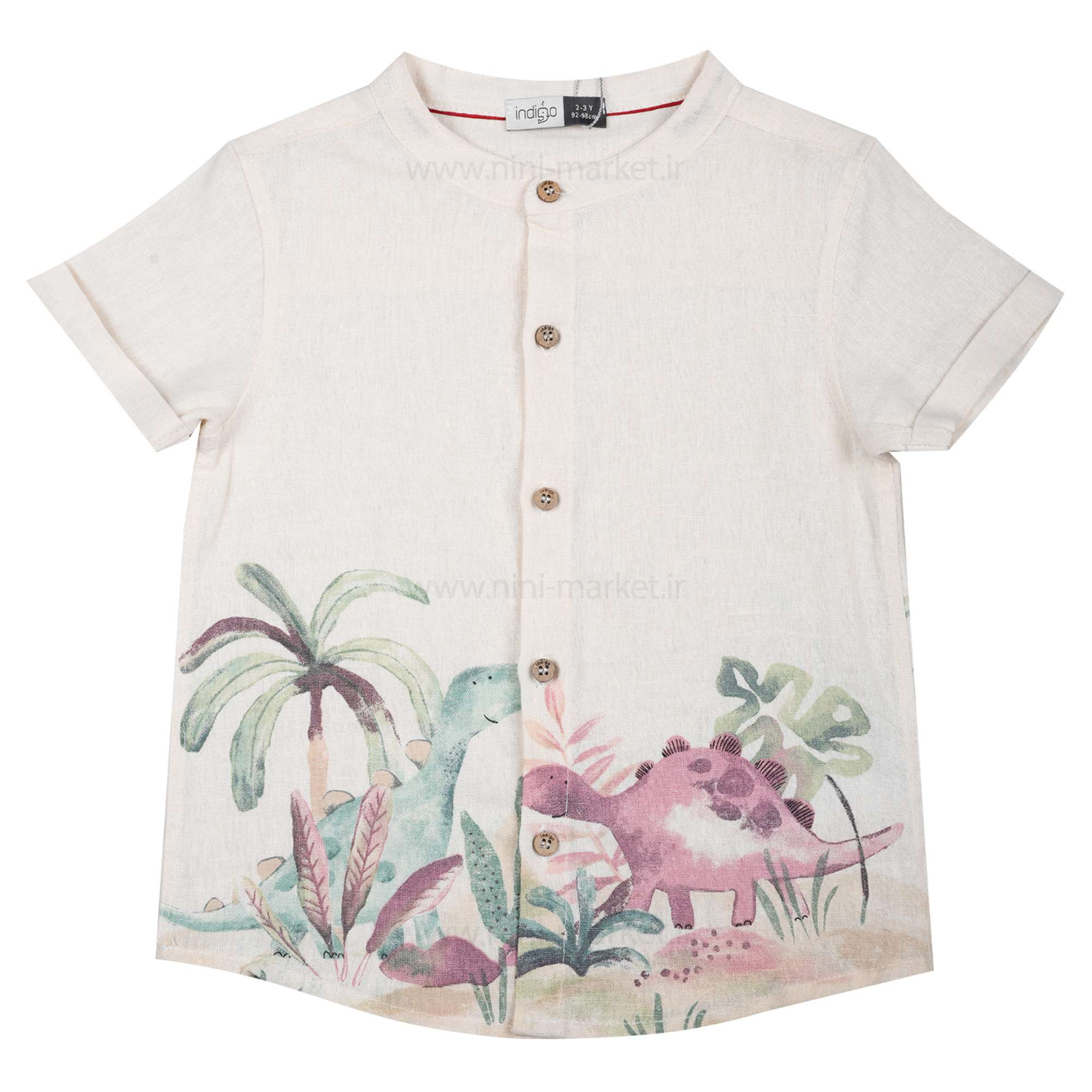 شومیز شورت پسرانه مدل دانی طرح دایناسور رنگ سبز ایندیگو indigo