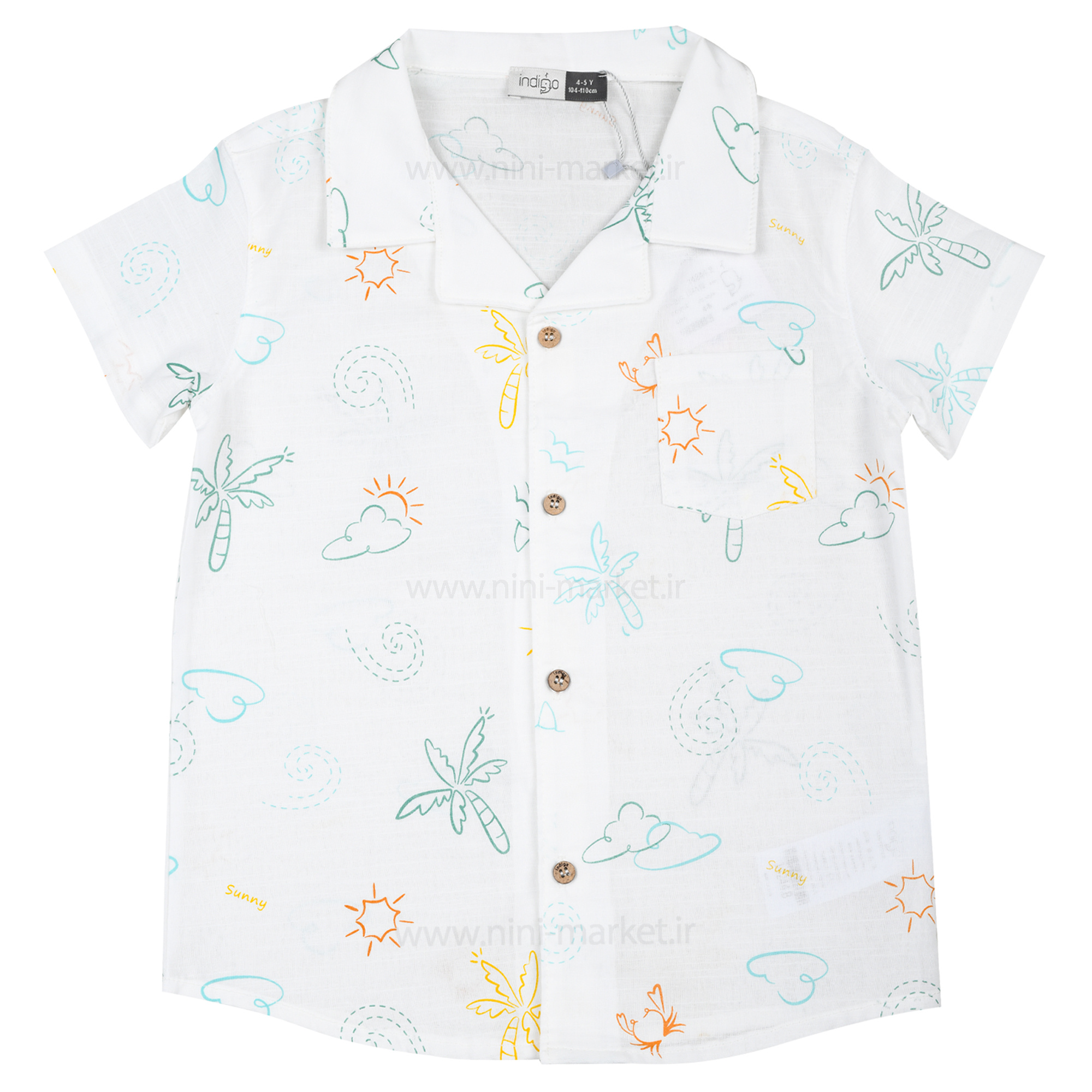 شومیز شورت پسرانه مدل هاوایی طرح ابر رنگ سفید ایندیگو indigo