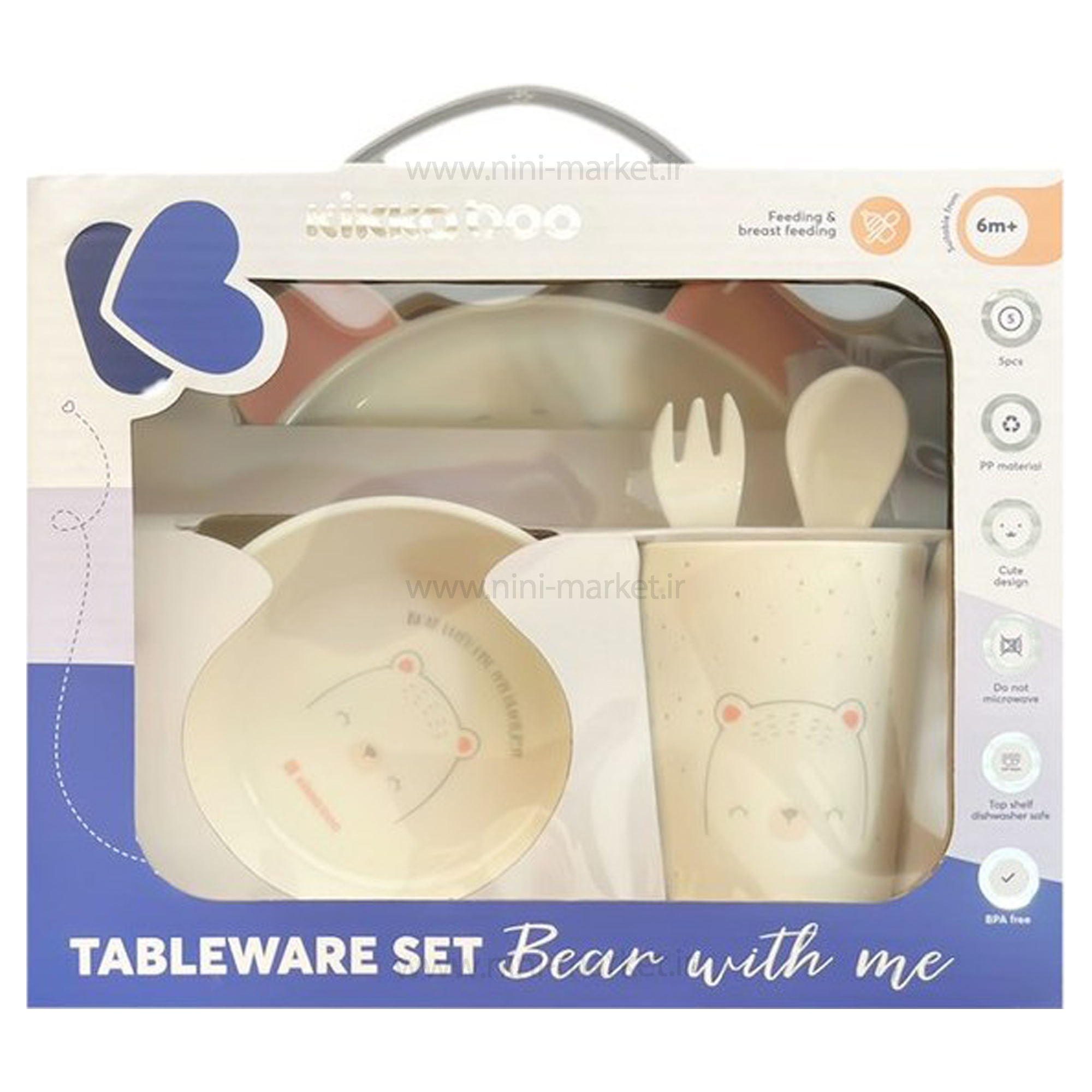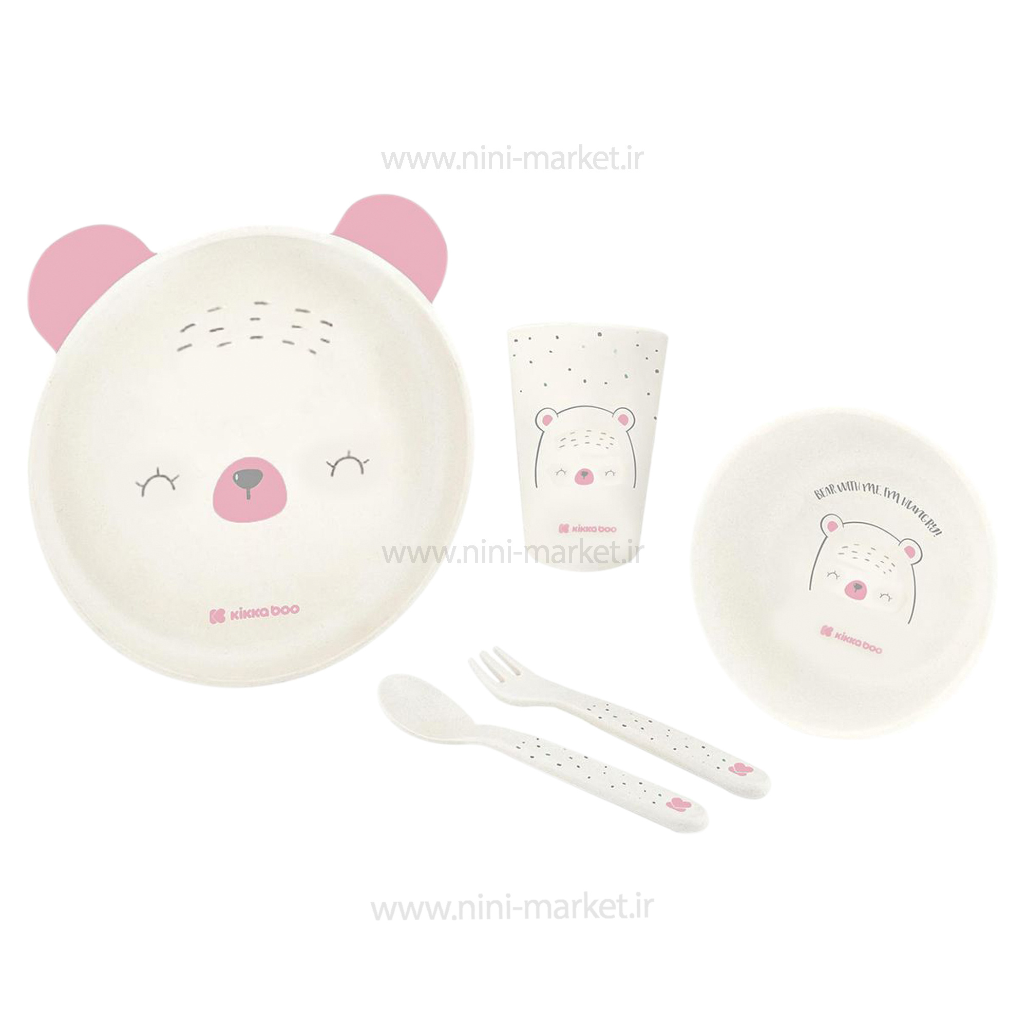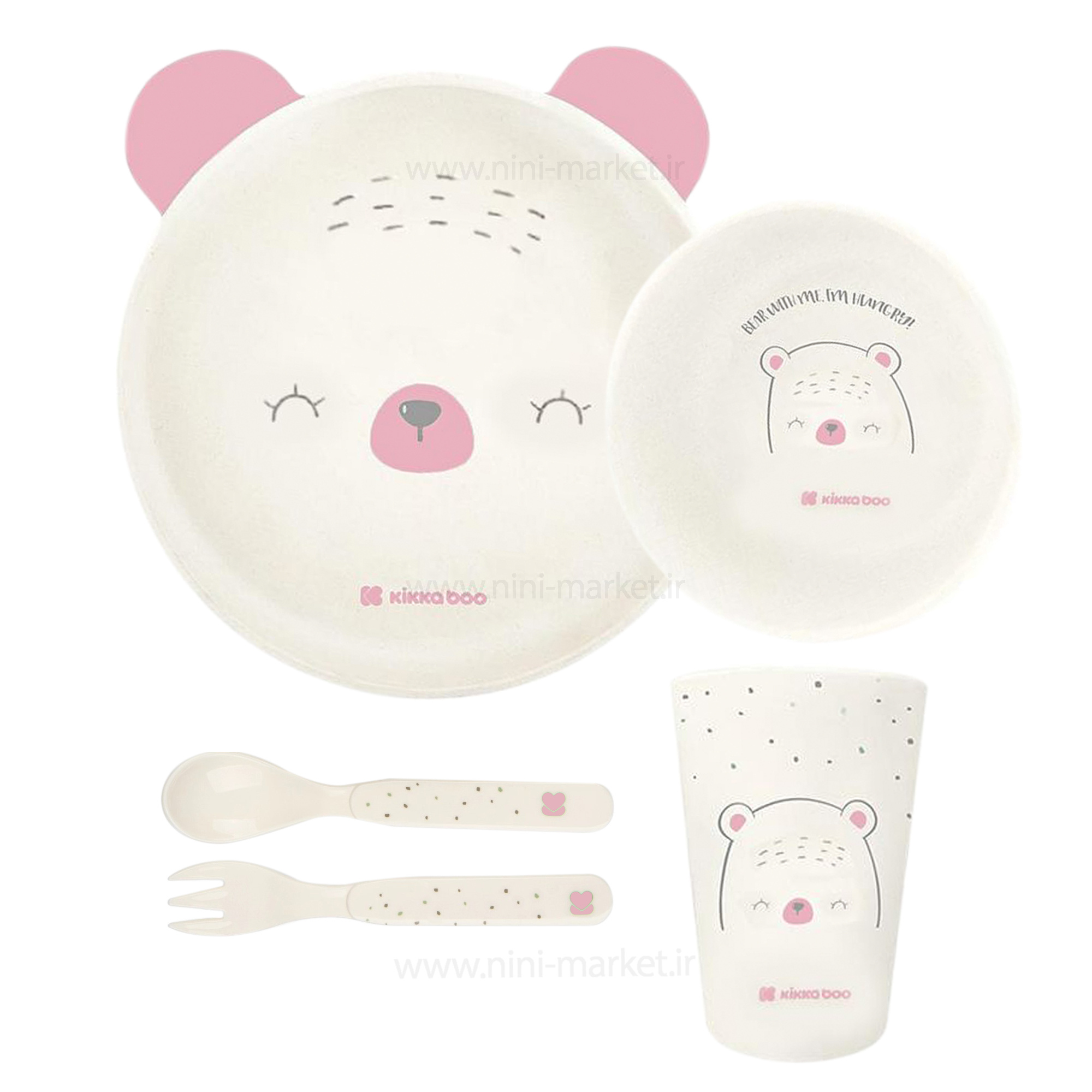 ظرف غذای ملامین 5 تیکه طرح خرس رنگ صورتی کیکابو Kikkaboo