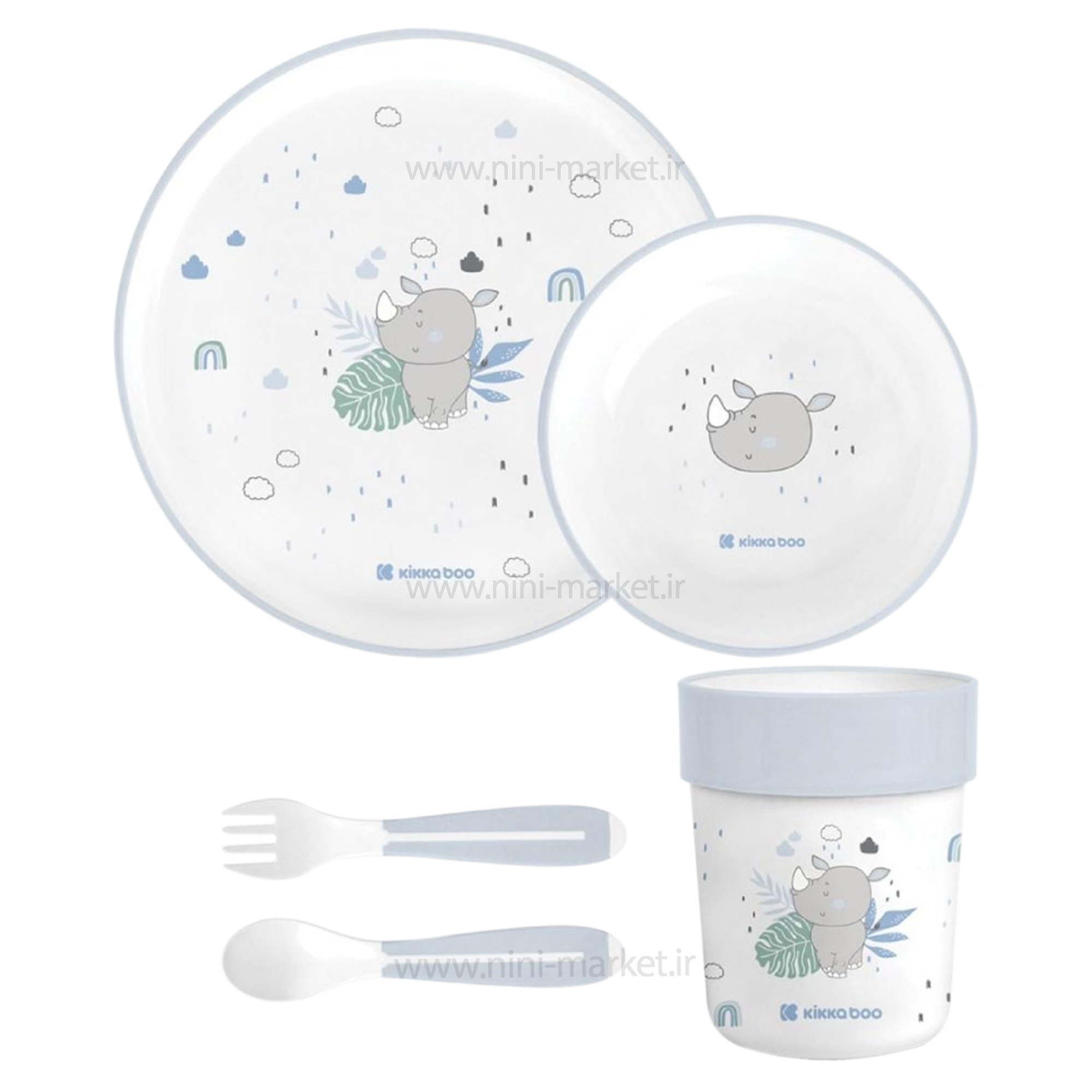 Kikkaboo Melamine Rhinoceros Blue Dinnerware Set Code 318844
