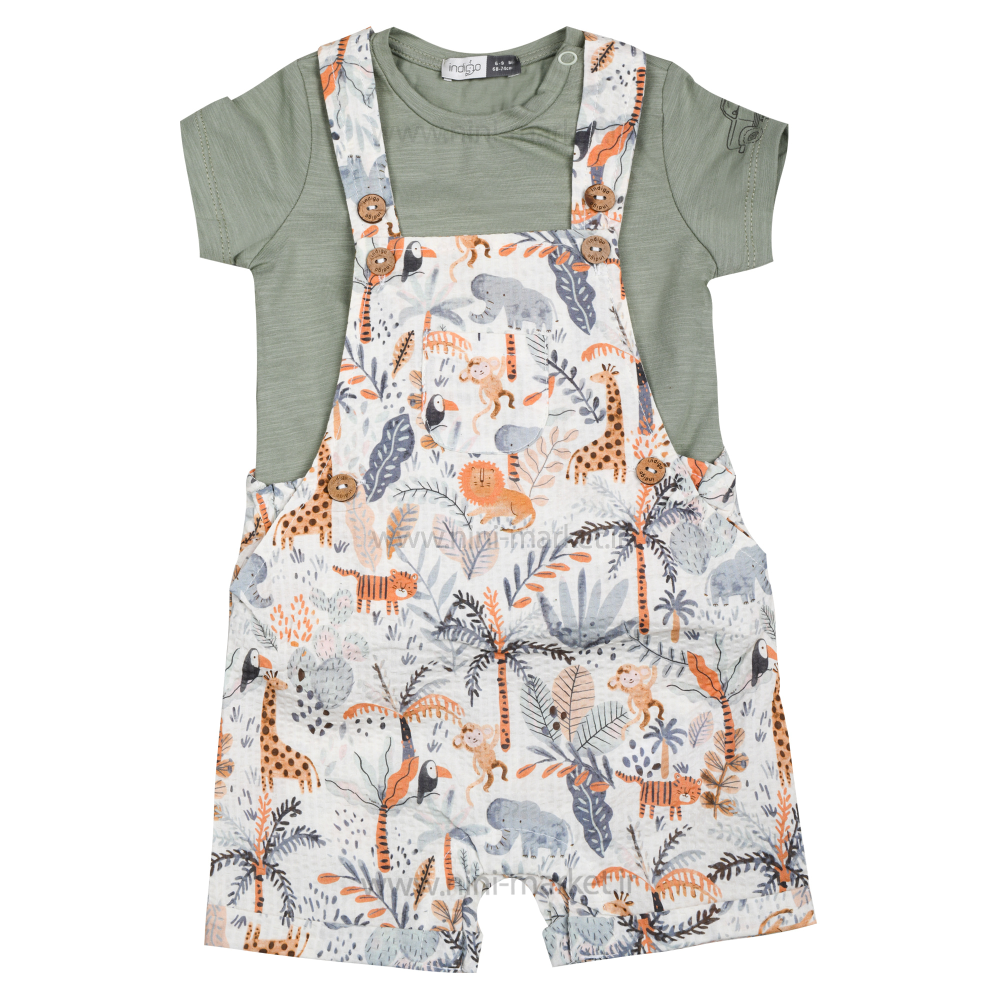 پیشبندی شورتی اسپرت طرح حیوانات جنگل رنگ سبز Indigo
