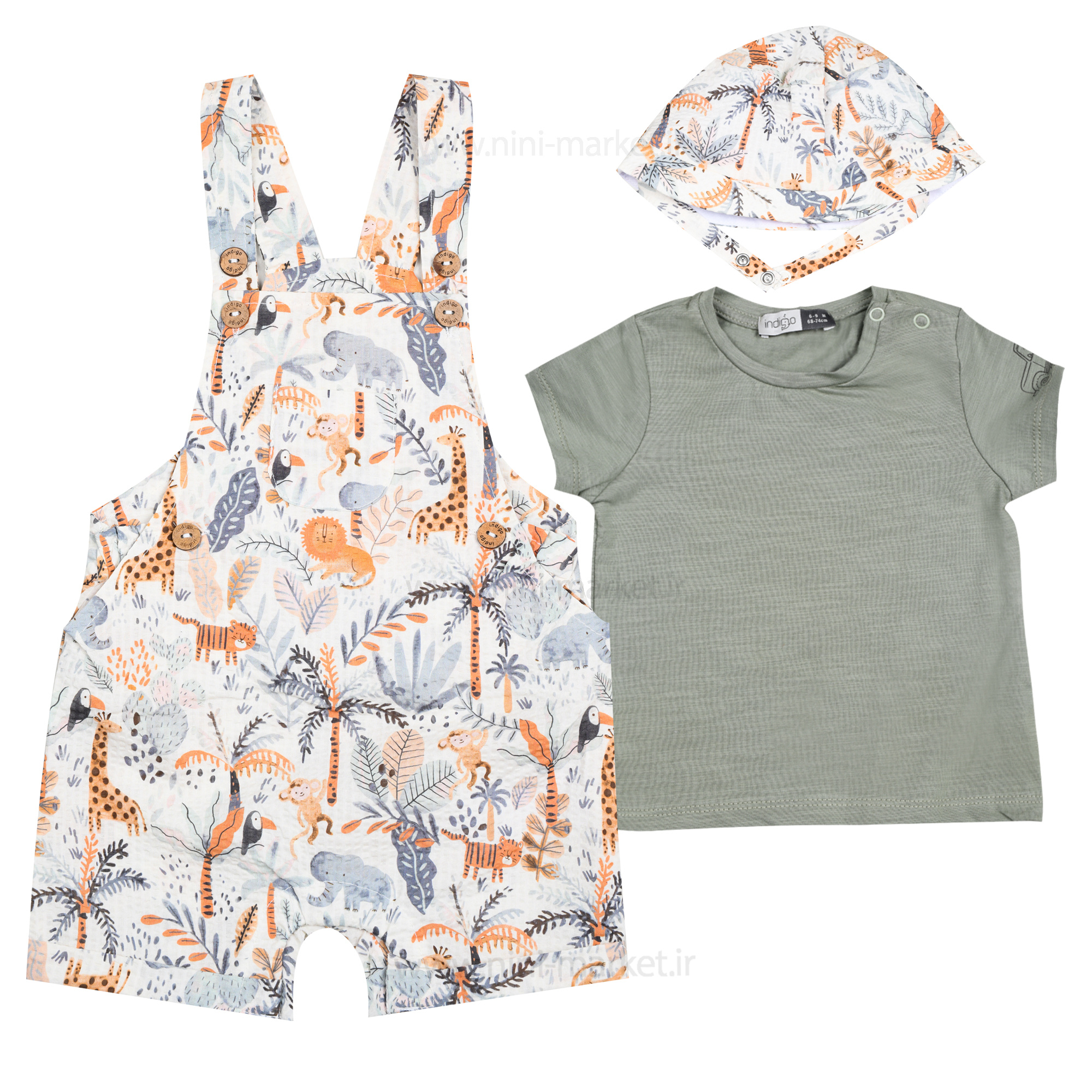 پیشبندی شورتی اسپرت طرح حیوانات جنگل رنگ سبز Indigo یک ست شیک و زیباست که از جنس نخ پنبه میباشد و از مزیتهای این محصول جنس ارگانیک کاملاً طبیعی مناسب با پوست حساس نوزاد میتوان اشاره کرد. اگر به دنبال یک ست لباس جذاب و باکیفیت برای فرزندتان هستید، دوبنده پسرانه طرح تمساح گزینهای ایدهآل است. این ست شامل یک تیشرت، دوبنده قابلتنظیم و کلاه است که بهصورت جداگانه نیز قابلاستفاده هستند. کلاه این ست دارای لبه و پشتکار کشی است و تیشرت تهیه شده از نخ پنبه میباشد. این ست مناسب برای گردشهای بیرون از منزل و مهمانی است. برای پیشگیری از آسیب به لباسها بهتر است لباسها رو پشتورو کرده سپس در ماشین لباسشویی قرار دهید و برای خشککردن لباس از دور تند خشککن استفاده نکنید