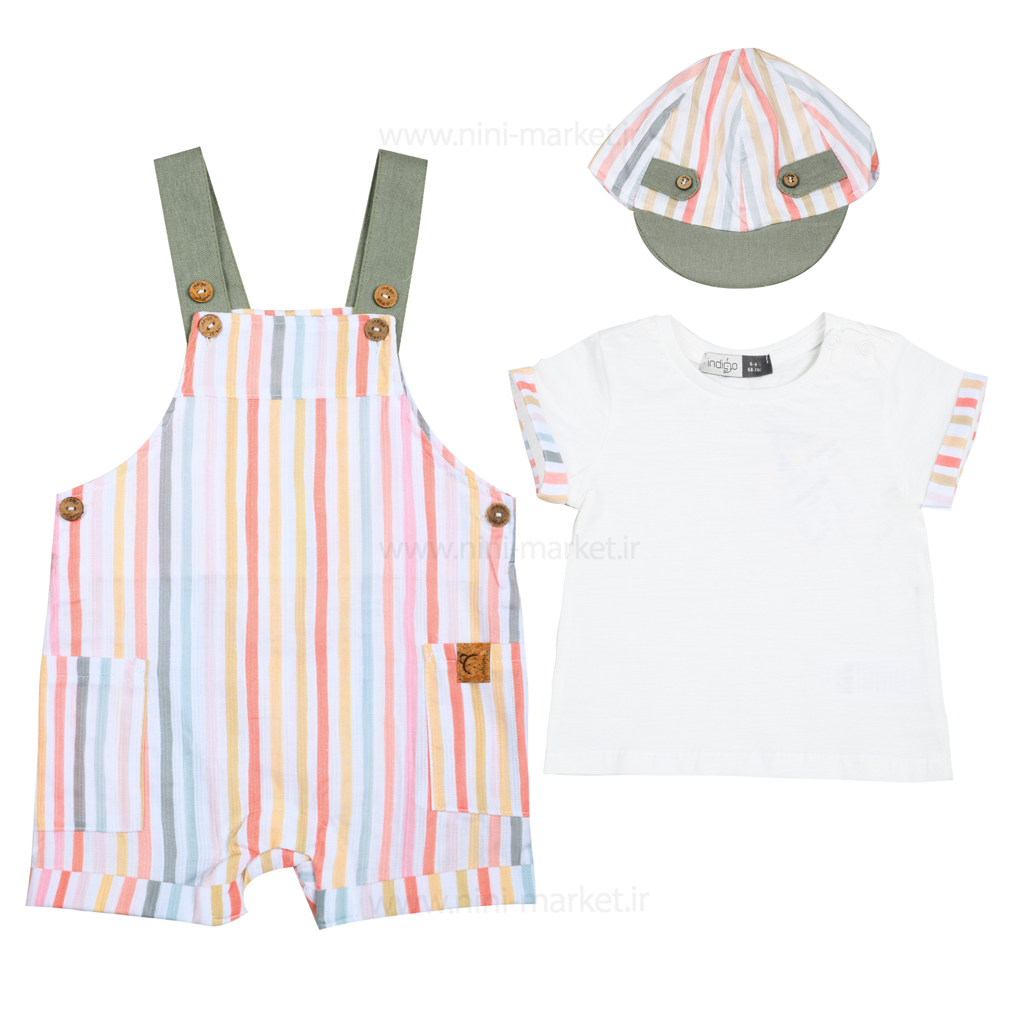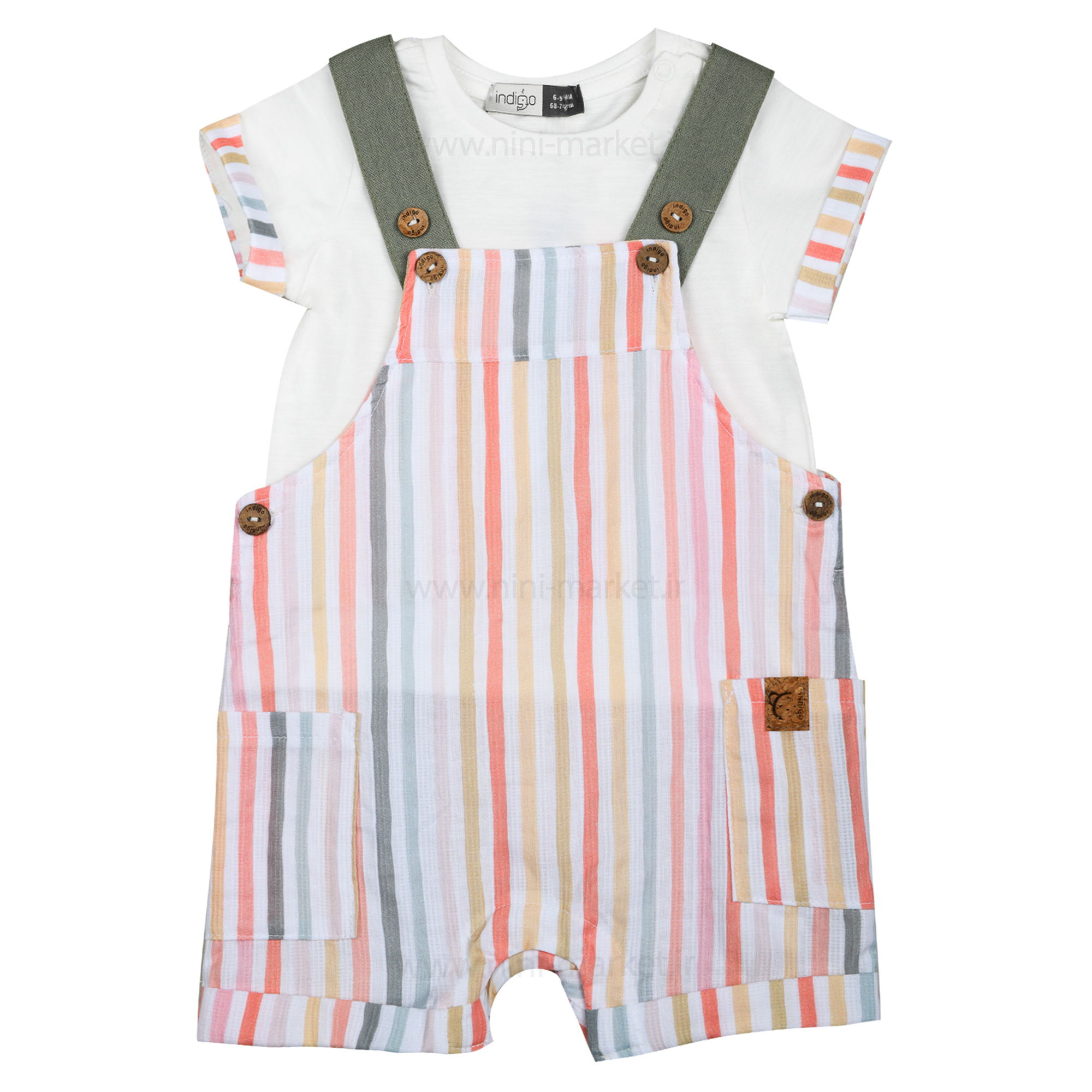 پیشبندی شورتی اسپرت طرح راه راه رنگ سفید Indig یک ست شیک و زیباست که از جنس نخ پنبه میباشد و از مزیتهای این محصول جنس ارگانیک کاملاً طبیعی مناسب با پوست حساس نوزاد میتوان اشاره کرد. اگر به دنبال یک ست لباس جذاب و باکیفیت برای فرزندتان هستید، دوبنده پسرانه طرح تمساح گزینهای ایدهآل است. این ست شامل یک تیشرت، دوبنده قابلتنظیم و کلاه است که بهصورت جداگانه نیز قابلاستفاده هستند. کلاه این ست دارای لبه و پشتکار کشی است و تیشرت تهیه شده از نخ پنبه میباشد. این ست مناسب برای گردشهای بیرون از منزل و مهمانی است. برای پیشگیری از آسیب به لباسها بهتر است لباسها رو پشتورو کرده سپس در ماشین لباسشویی قرار دهید و برای خشککردن لباس از دور تند خشک کن استفاده نکنید.