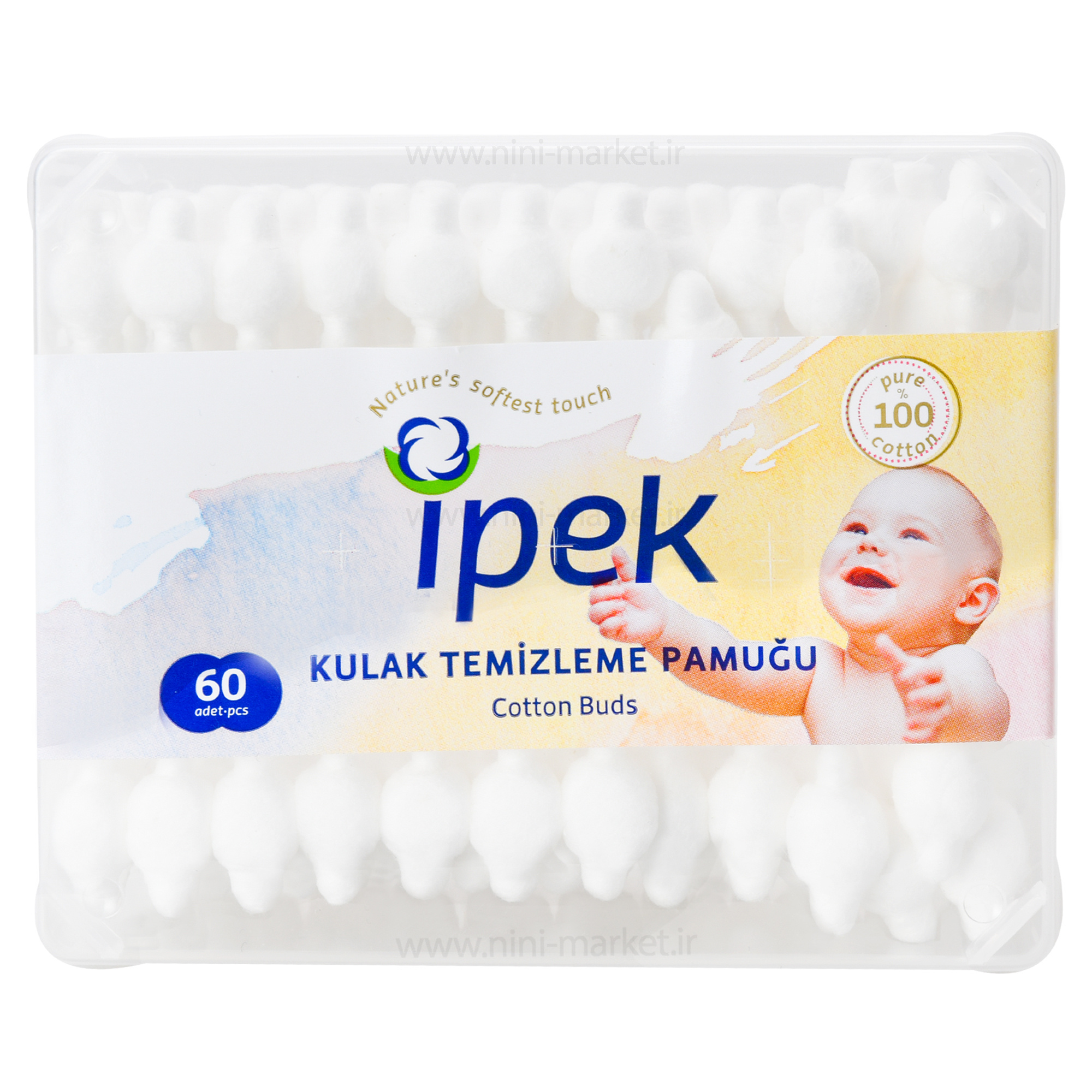 گوش‌پاک‌کن یکی از انواع لوازم بهداشتی و شخصی نوزاد است که در خرید سیسمونی تهیه می‌شود نکته مهم در خرید گوش‌پاک‌کن مناسب نوزاد باید رعایت شود این است که گوش پاک کن داری رینگ محافظتی  باشد که تا از ورود بیش از حد گوش‌پاک‌کن به داخل گوش نوزاد جلوگیری کند گوش‌پاک‌کن نوزاد ۶۰ عددی ایپک Ipek،دارای رینگ محافظتی می‌باشد؛ ازاین‌رو گزینه مناسبی برای نظافت گوش و بینی نوزاد شماست البته استفاده از این وسیله باید بادقت انجام شود تا آسیبی به نوزاد وارد نشود.این محصول مناسب برای تمیزکردن گوش، بینی و همچنین گوشهٔ چشم‌های نوزادان می‌باشد، سری فرم دار این محصول نرم و منعطف است و از مواد باکیفیت تهیه شده است که دربسته بندی ۶۰ عددی، با جعبهٔ درب‌دار ارائه می‌شود