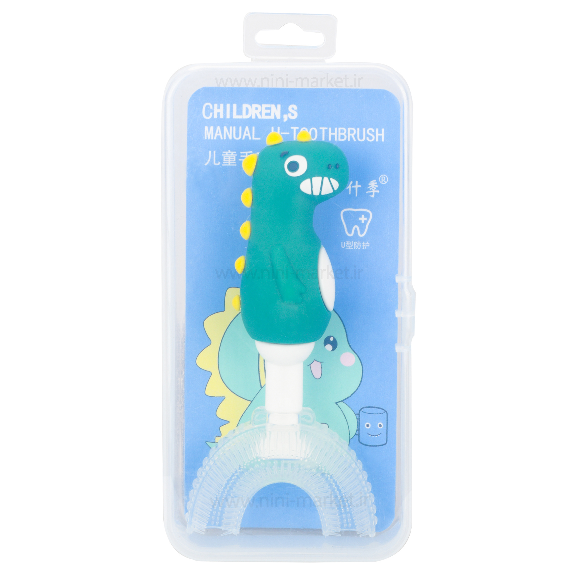 مسواک چرخشی عروسکی طرح دایناسور رنگ سبز تیره خارجی