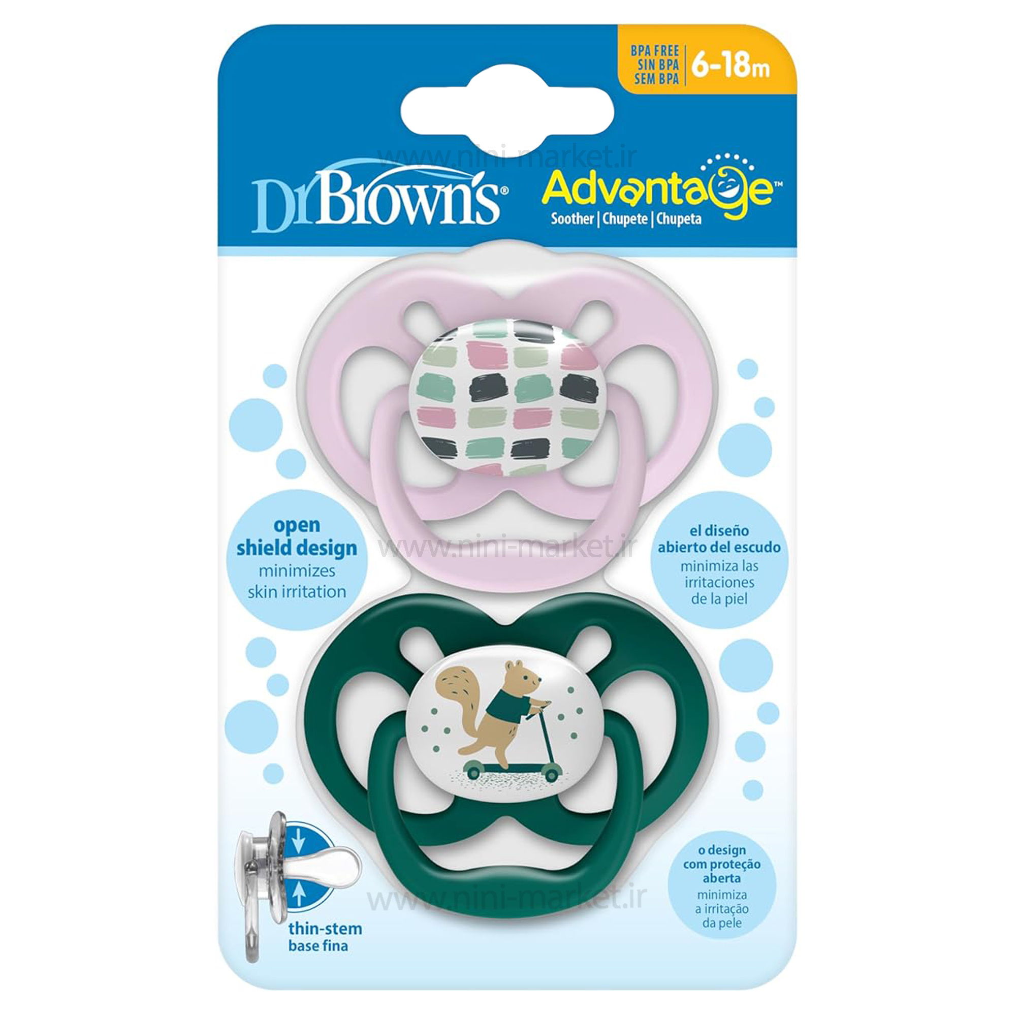 پستانک دو عددی درب دار بادامی 6-18 ماه طرح دار دکتر براون Dr.brown