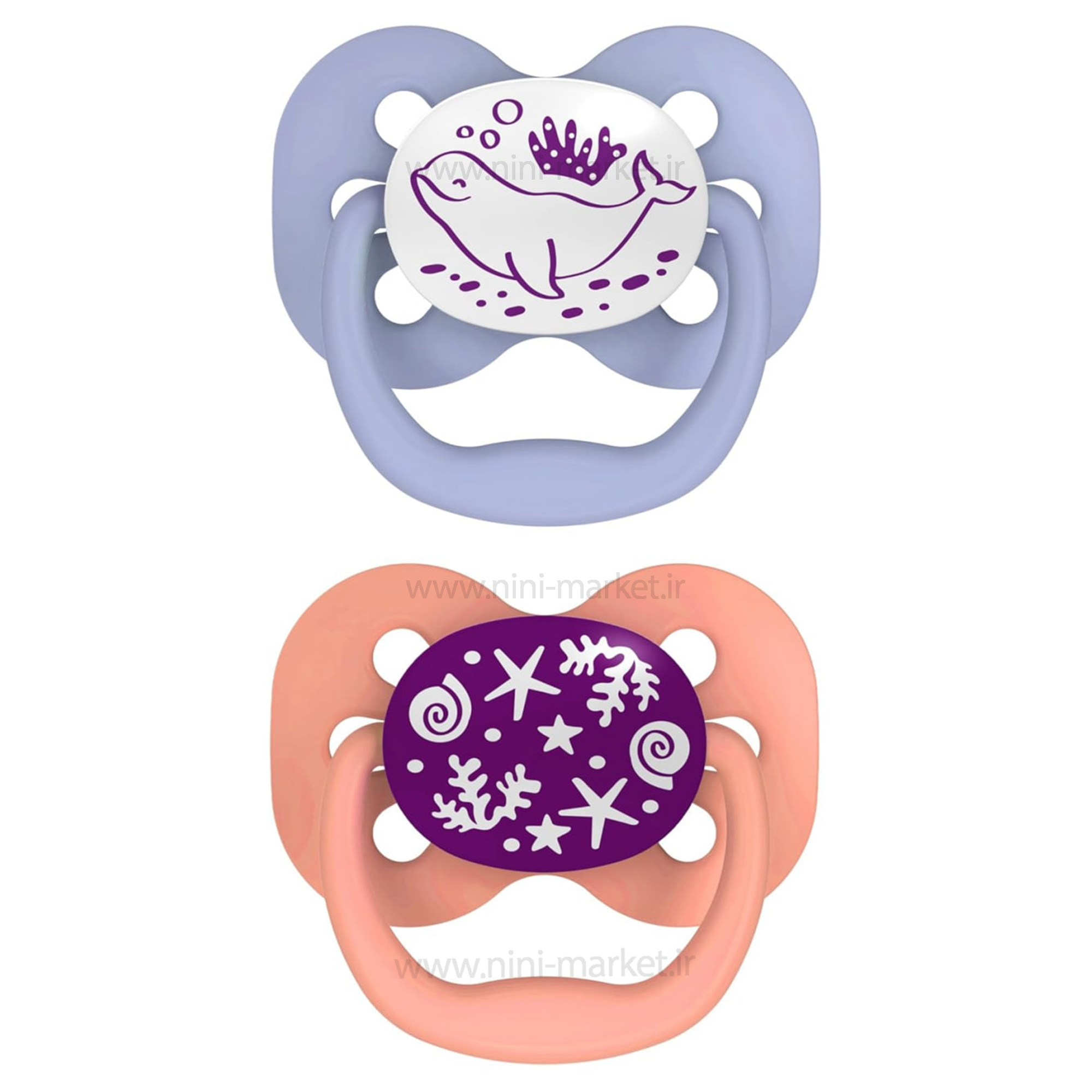 • مزیت : سری ارتودنسی (بدون آسیب به فک و دندان و پیشگیری از کراس بایت) - تمیزکردن آسان و قابل شستشو در ماشین ظرف‌شویی - طراحی شده توسط دندانپزشکان اطفال – فاقد BPA و مواد شیمایی و مضر - دارای منفذ روی بدنه جهت جریان هوا روی پوست نوزاد و جلوگیری از حساسیت