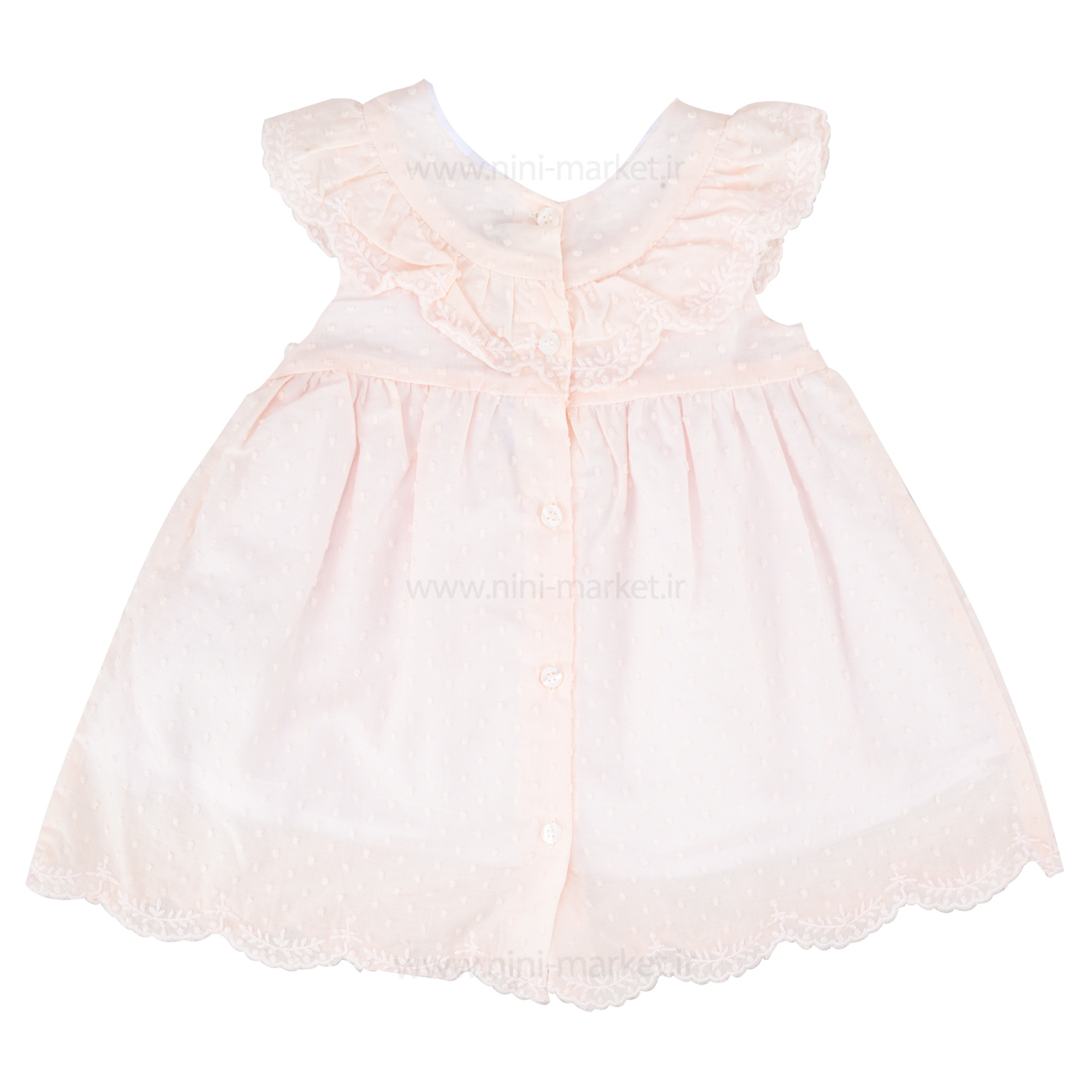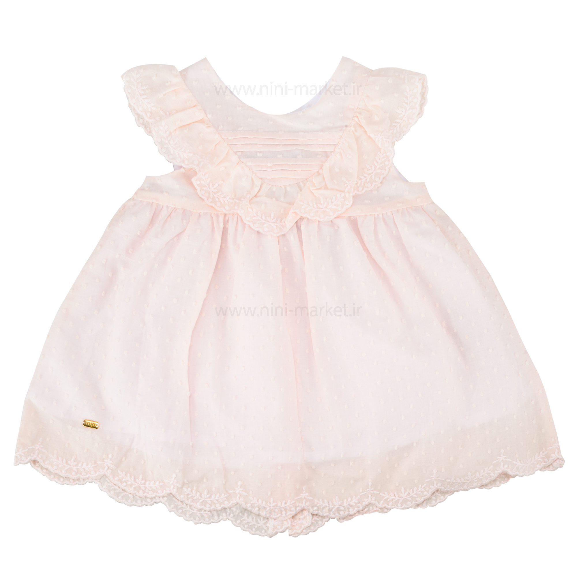 پیراهن دخترانه مدل ماهور رنگ صورتی طرح گیپور دار رنگ صورتی ایندیگو Indigo