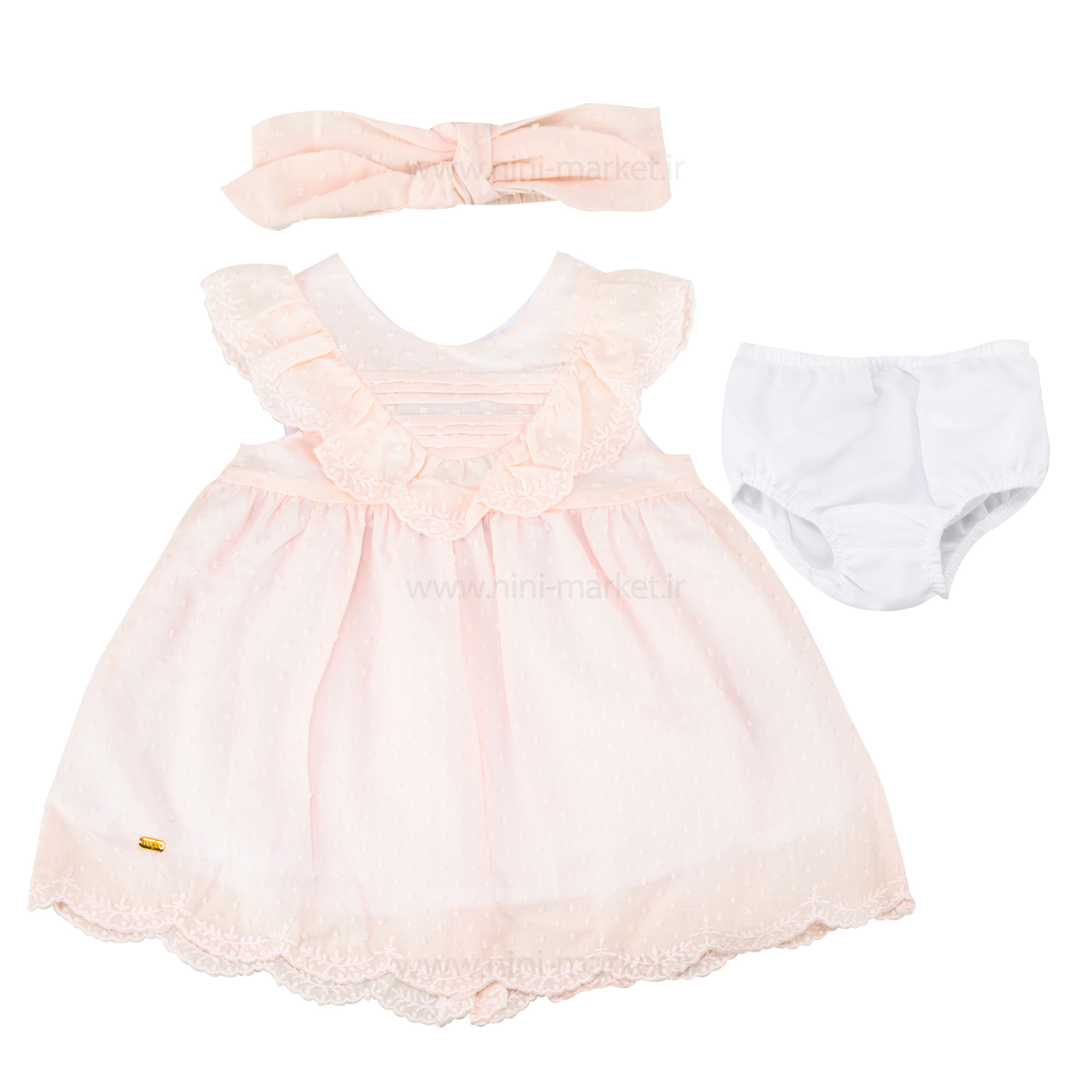 پیراهن دخترانه مدل ماهور رنگ صورتی طرح گیپور دار رنگ صورتی ایندیگو Indigo  به رنگ صورتی بوده و از جنس الیاف نرم و لطیف نخ پنبه بوده و برای پوست کودک عزیزتان حساسیتی ایجاد نمیکند . محصول برند ایندیگو از سه تکه که شامل پیراهن ، شورت و تل تشکیل شده، پیراهن از آستین حلقه ای که به صورت فانتزی طراحی شده که رو آن طرح گل به صورت پترن درآمده که زیبایی آن را دوچندان کرده.برای سهولت در استفاده و آسایش فرزند دلبندتان چندین دکمه در پشت لباس برای راحت تر پوشاندن آن به تن کودک تعبیه شده است. همچنین یک تل که از دو قسمت کش و یک پاپیون که بر روی آن قرار دارد تشکیل شده است به همراه آن یک شورت به رنک سفید نیز وجود دارد که این ست رو کامل کرده است. توجه داشته باشید برای دوام لباس برای دوام بیشتر لباس آن را در دمای 30 درجه شستشو دهید .