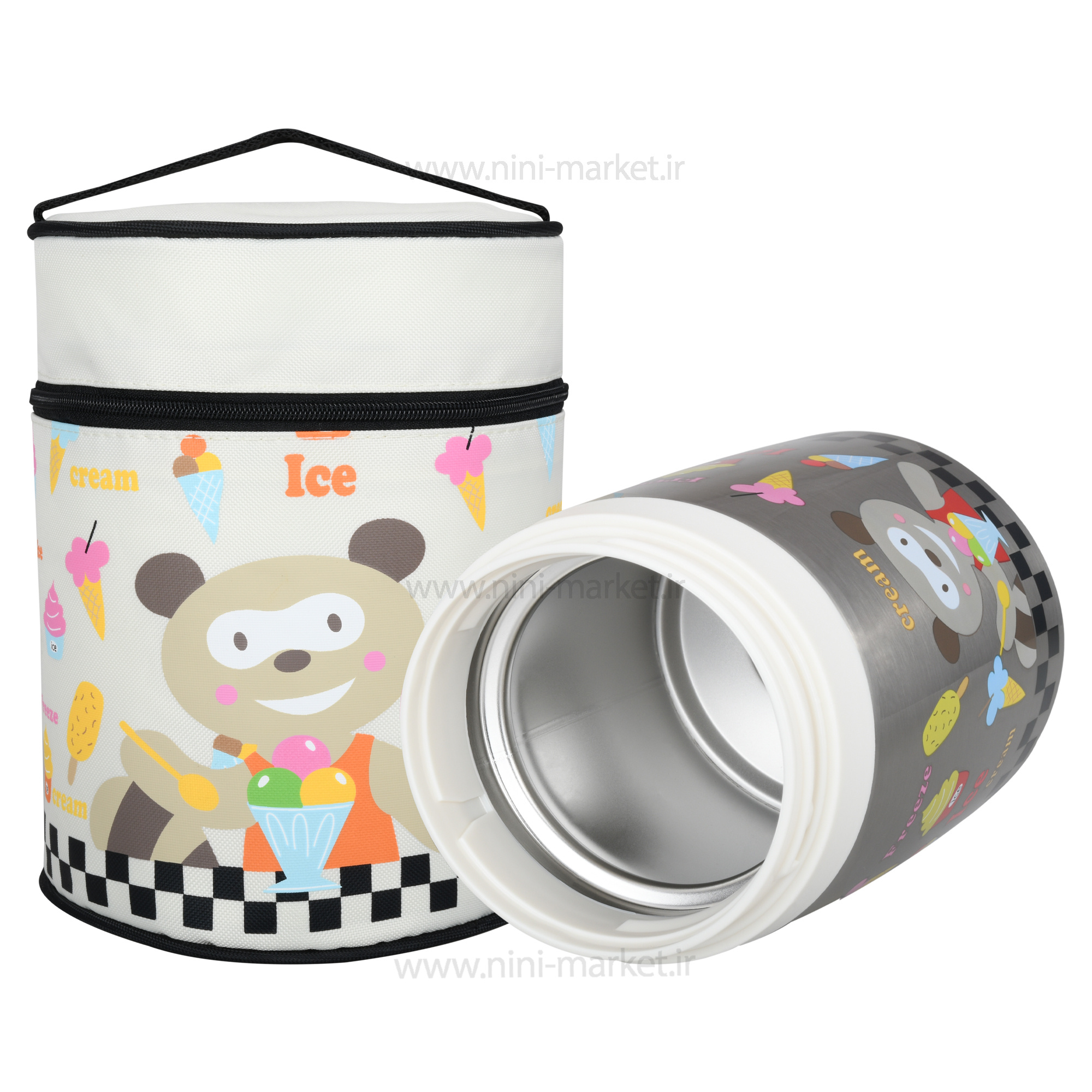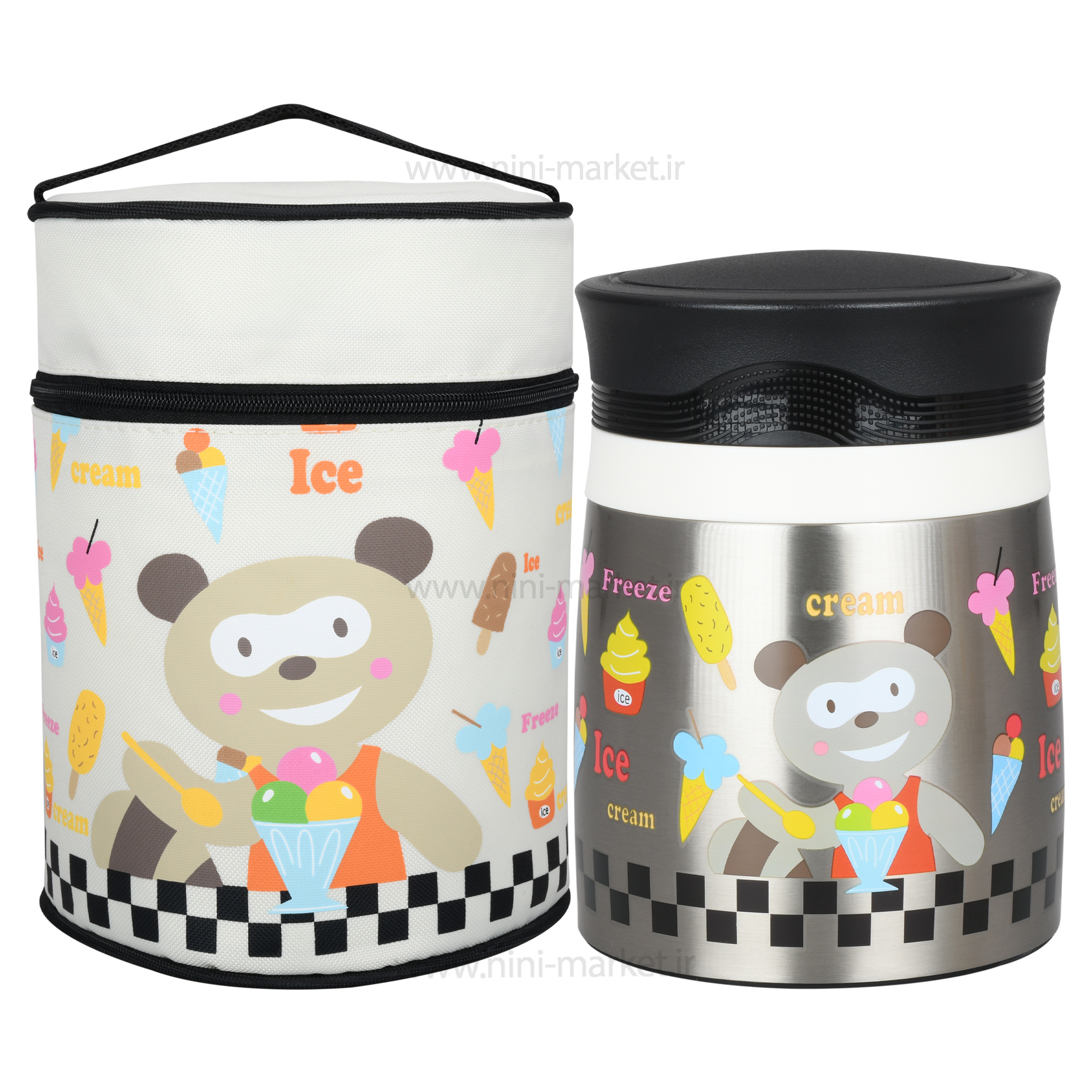 فلاسک غذای 600 میل کیف دار طرح حیوانات خرس رنگ استیل pinkah