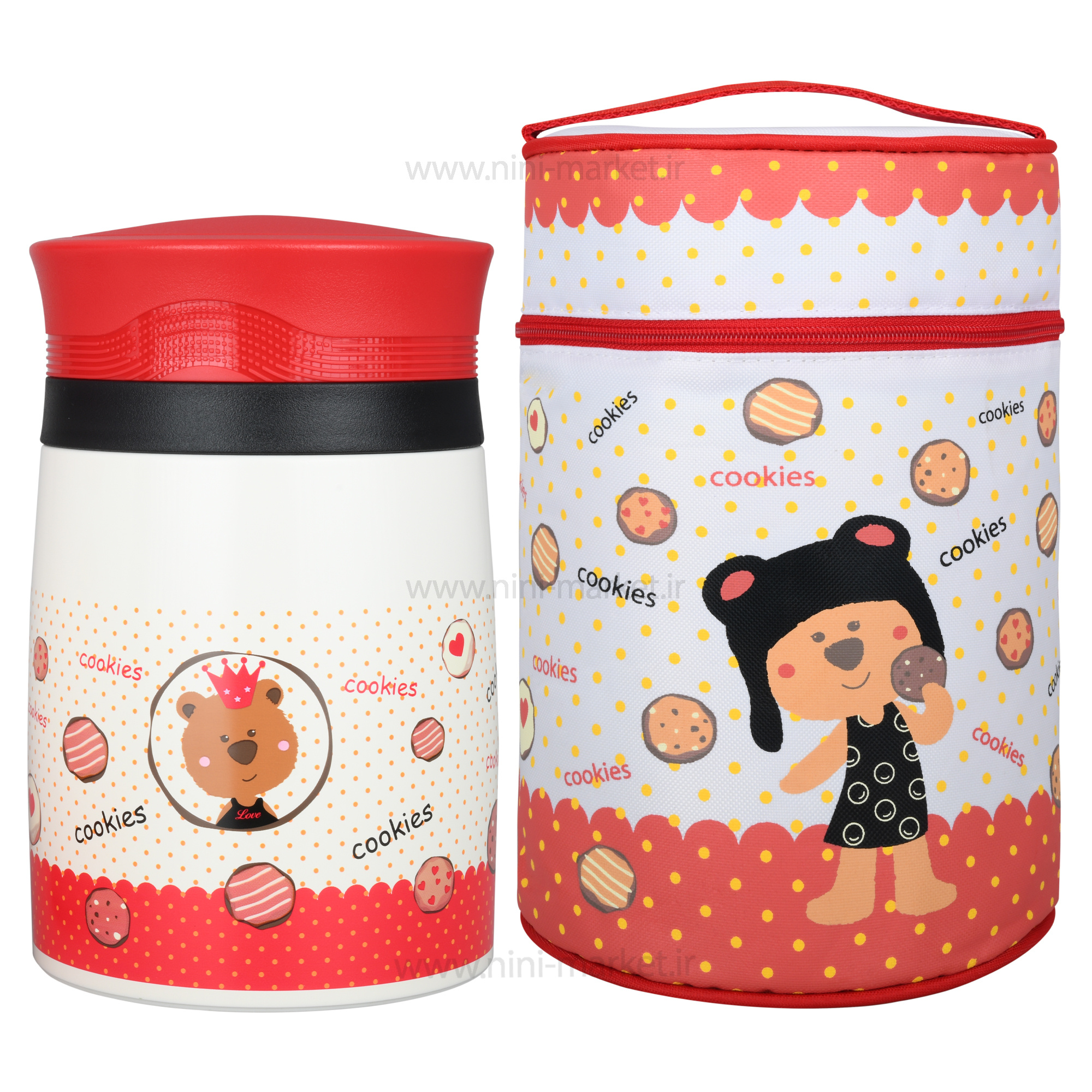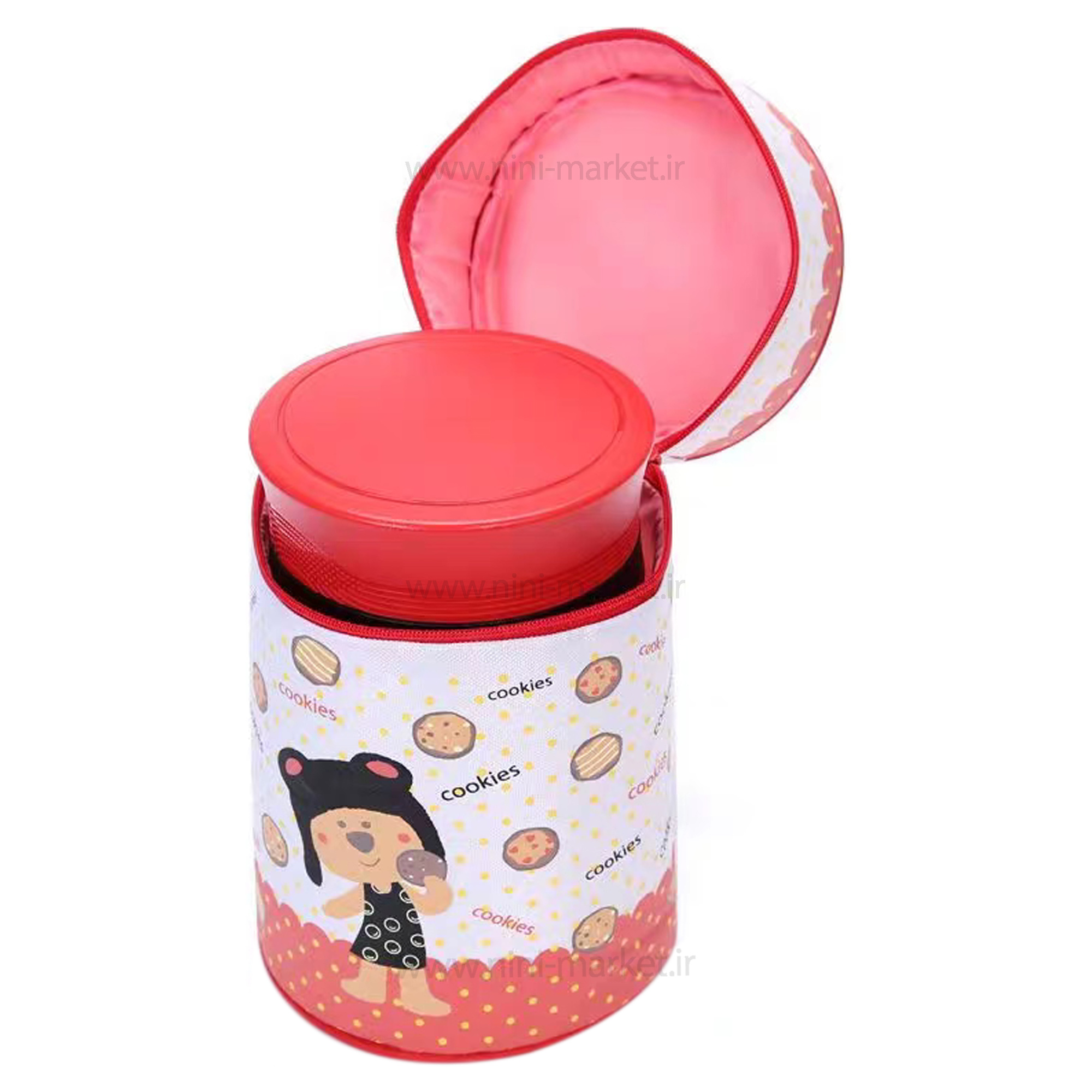 فلاسک غذای 890 میل کیف دار طرح حیوانات خرس قرمز pinkah
