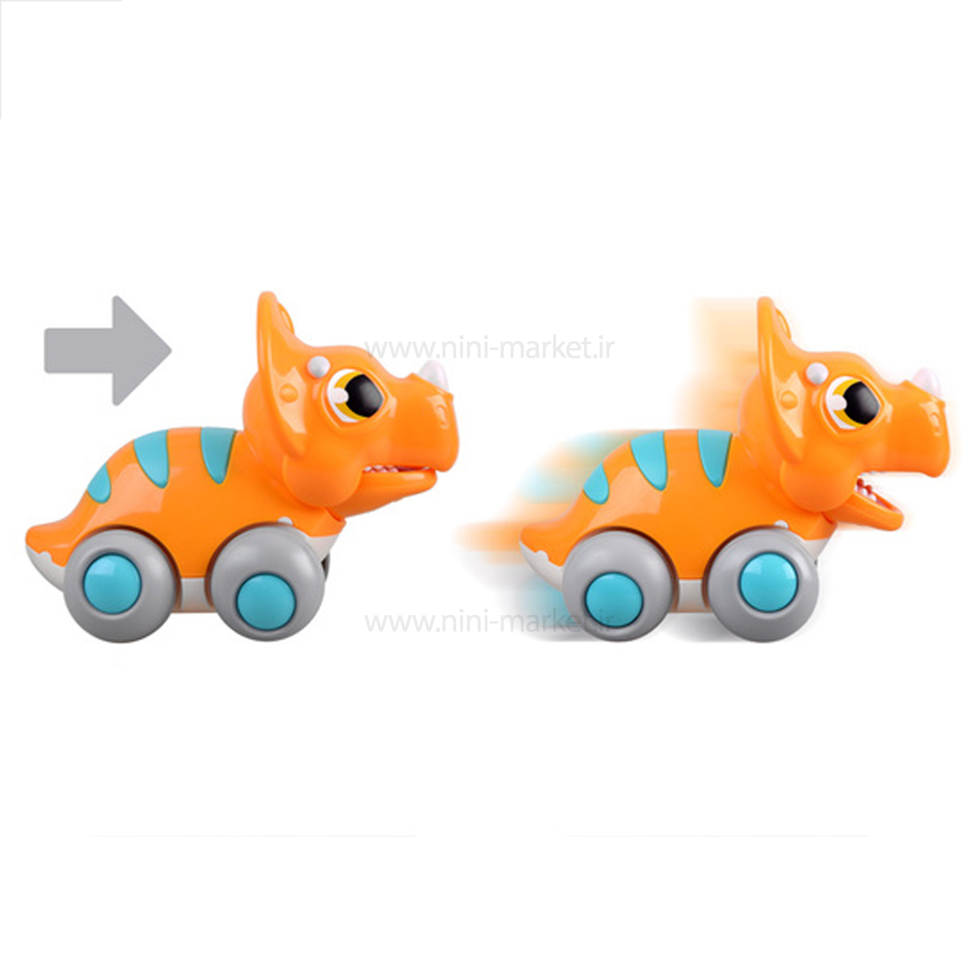 دایناسور قدرتی نارنجی Huile Toys این محصولی از برند معتبر هولیتویز (Huile Toys) است که رنگ آن نارنجی میباشد. این اسباببازی برای کودکان بالای ۱۸ ماه ساخته و طراحی شده است و بسیاری از استانداردهای جهانی برای اسباببازیهای کودکان مانند رنگ بهداشتی و غیرشیمیایی بدونسرب داراست. پلاستیک باکیفیت و مقاوم در برابر ضربه، نداشتن اضافات پلاستیکی و قسمت تیز بر روی محصول و … در طراحی و ساخت آن رعایت شده است. دایناسور دونده هولی تویز طراحی جذاب و کارتونی دارد و برای حرکت نیازی به باتری ندارد. فقط کافی است آنها را به جلو یا عقب هل دهید، آنها با سرعت بهپیش میروند. در هنگام حرکت نیز دهان دایناسورها باز و بسته میشود.