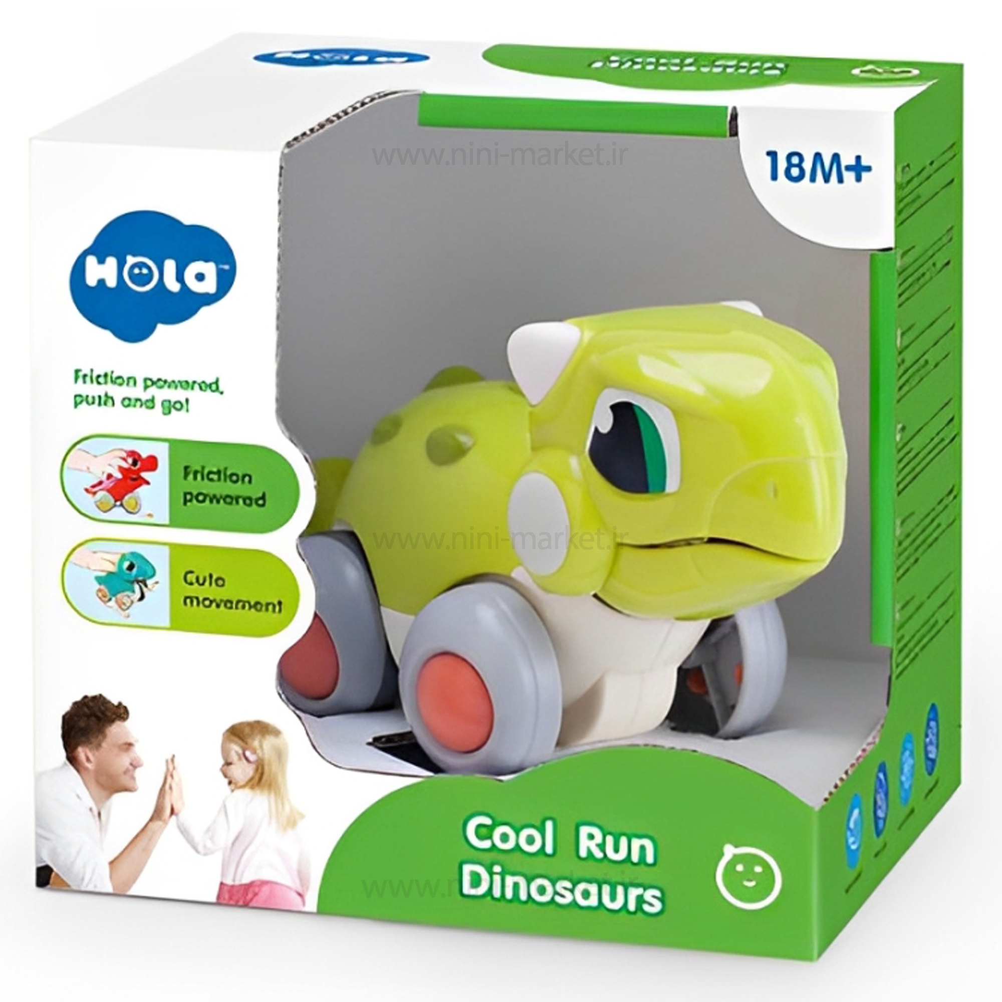 دایناسور قدرتی Huile toys این محصولی از برند معتبر هولیتویز (Huile Toys) است که رنگ آن سبز میباشد. این اسباببازی برای کودکان بالای ۱۸ ماه ساخته و طراحی شده است و بسیاری از استانداردهای جهانی برای اسباببازیهای کودکان مانند رنگ بهداشتی و غیرشیمیایی بدونسرب داراست. پلاستیک باکیفیت و مقاوم در برابر ضربه، نداشتن اضافات پلاستیکی و قسمت تیز بر روی محصول و … در طراحی و ساخت آن رعایت شده است. دایناسور دونده هولی تویز طراحی جذاب و کارتونی دارد و برای حرکت نیازی به باتری ندارد. فقط کافی است آنها را به جلو یا عقب هل دهید، آنها با سرعت بهپیش میروند. در هنگام حرکت نیز دهان دایناسورها باز و بسته میشود.