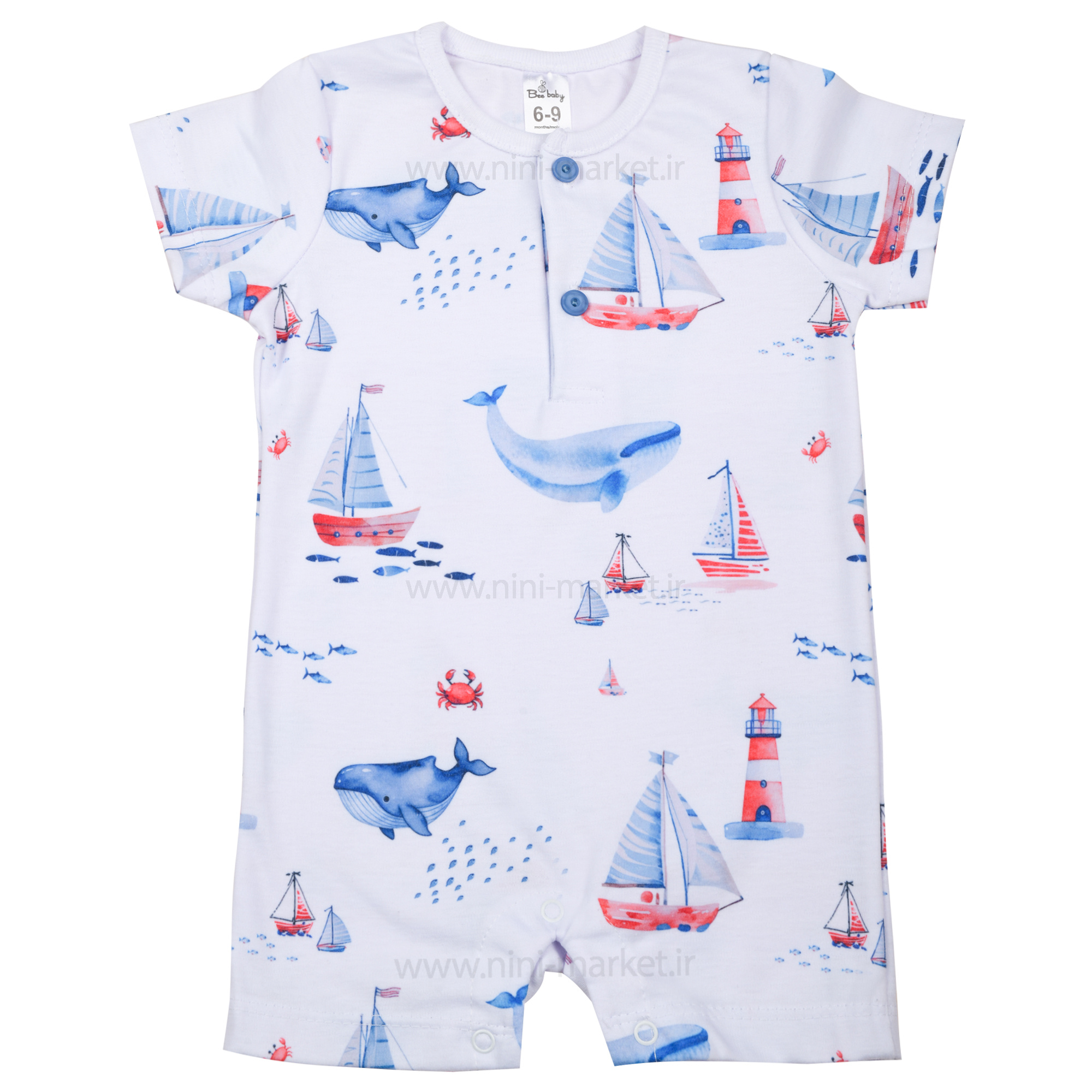 رامپر پسرانه طرح دریا رنگ سفید bee baby