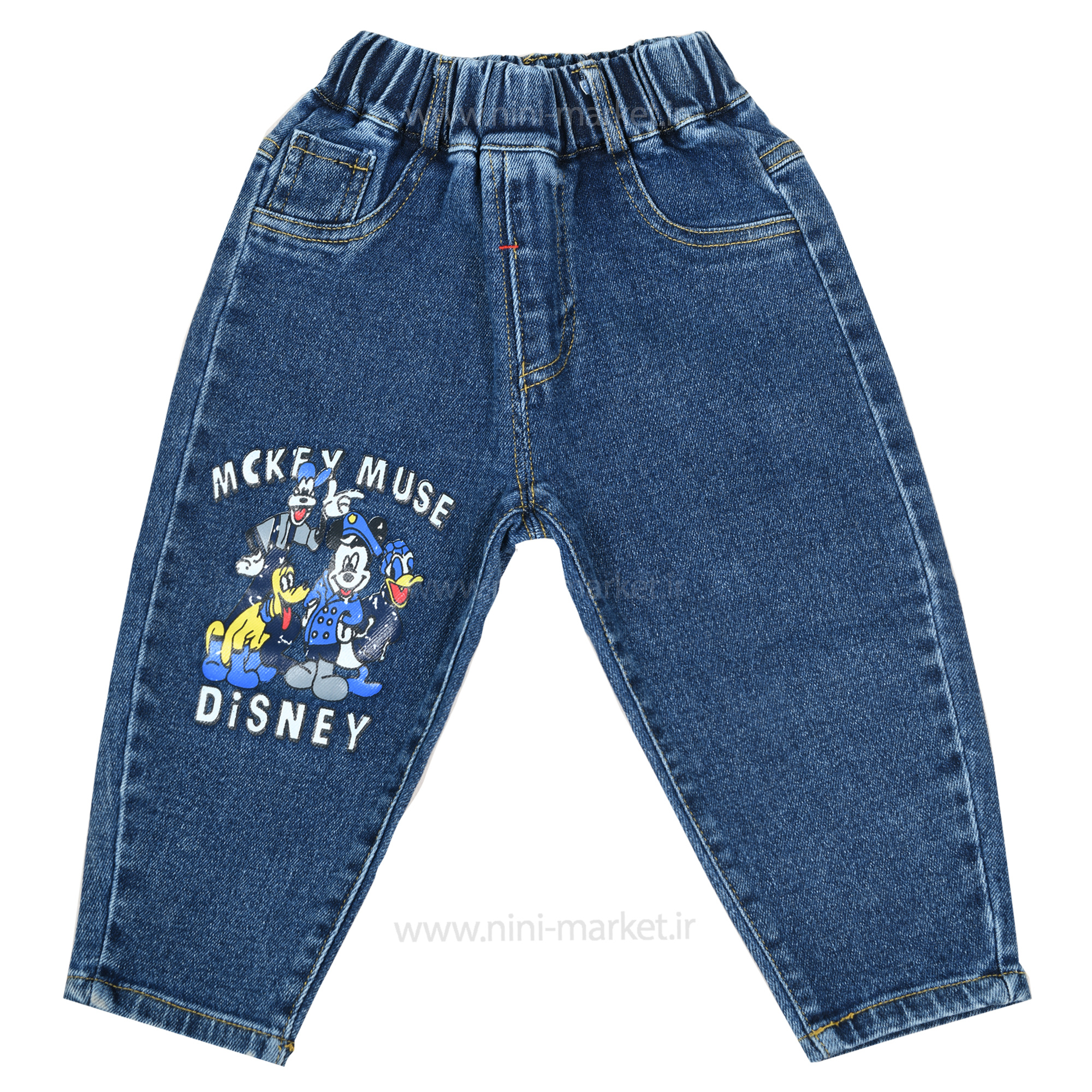 شلوار جین اسپرت طرح میکی موس رنگ آبی تیره