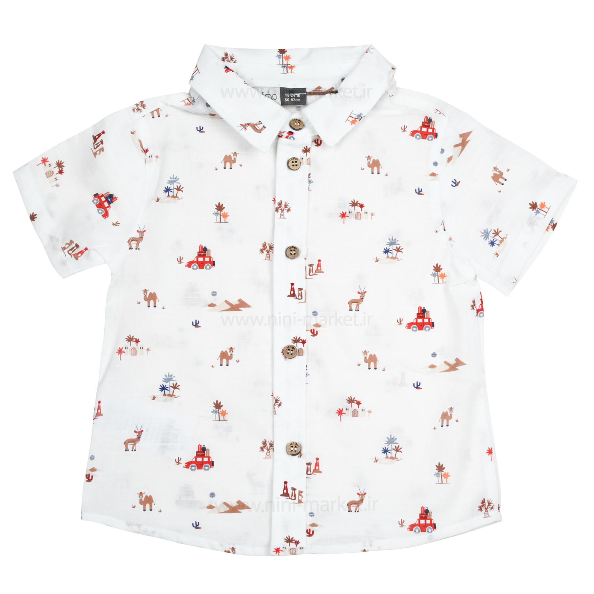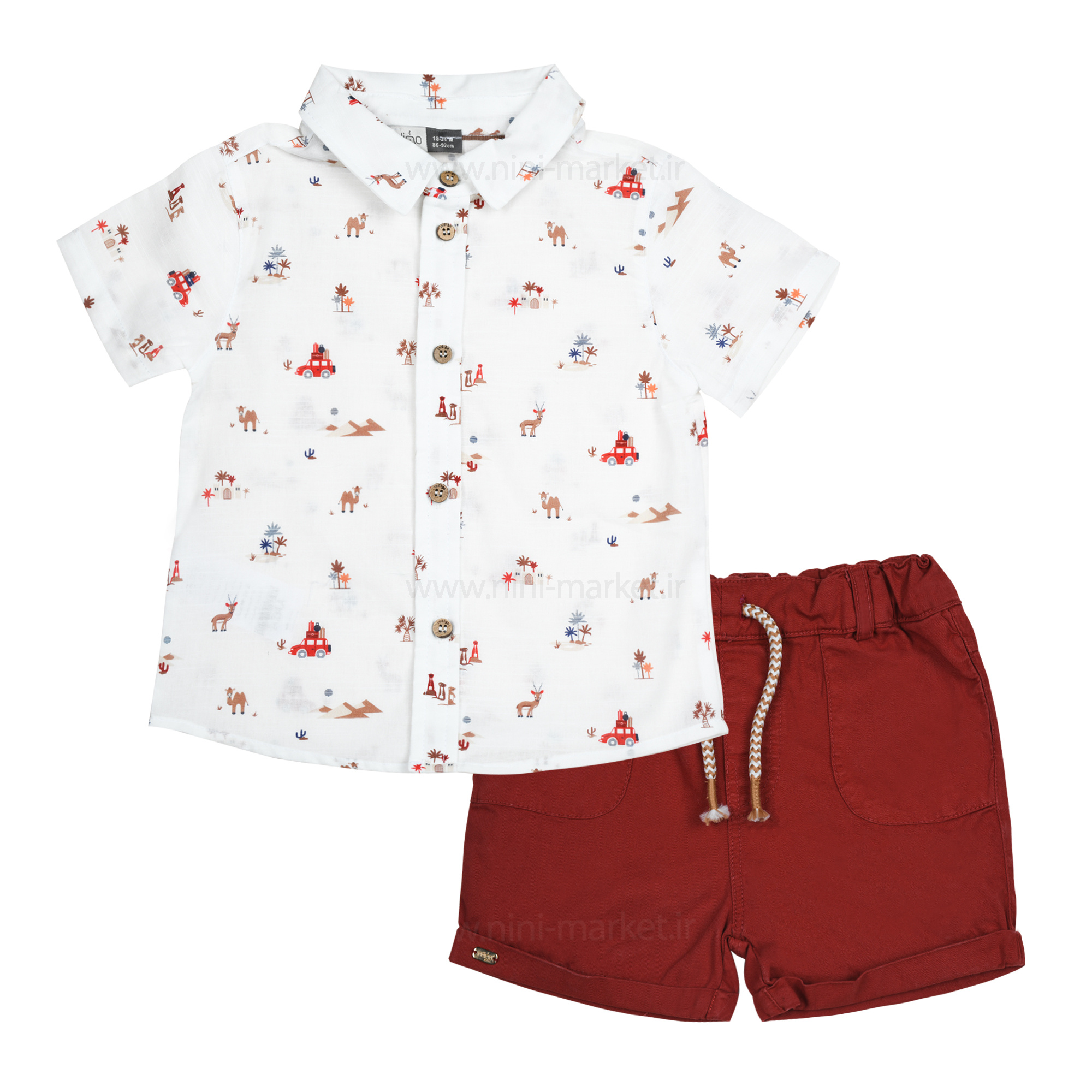 تیشرت شورت پسرانه مدل هامون طرح ماشین رنگ سفید ایندیگو Indigo
