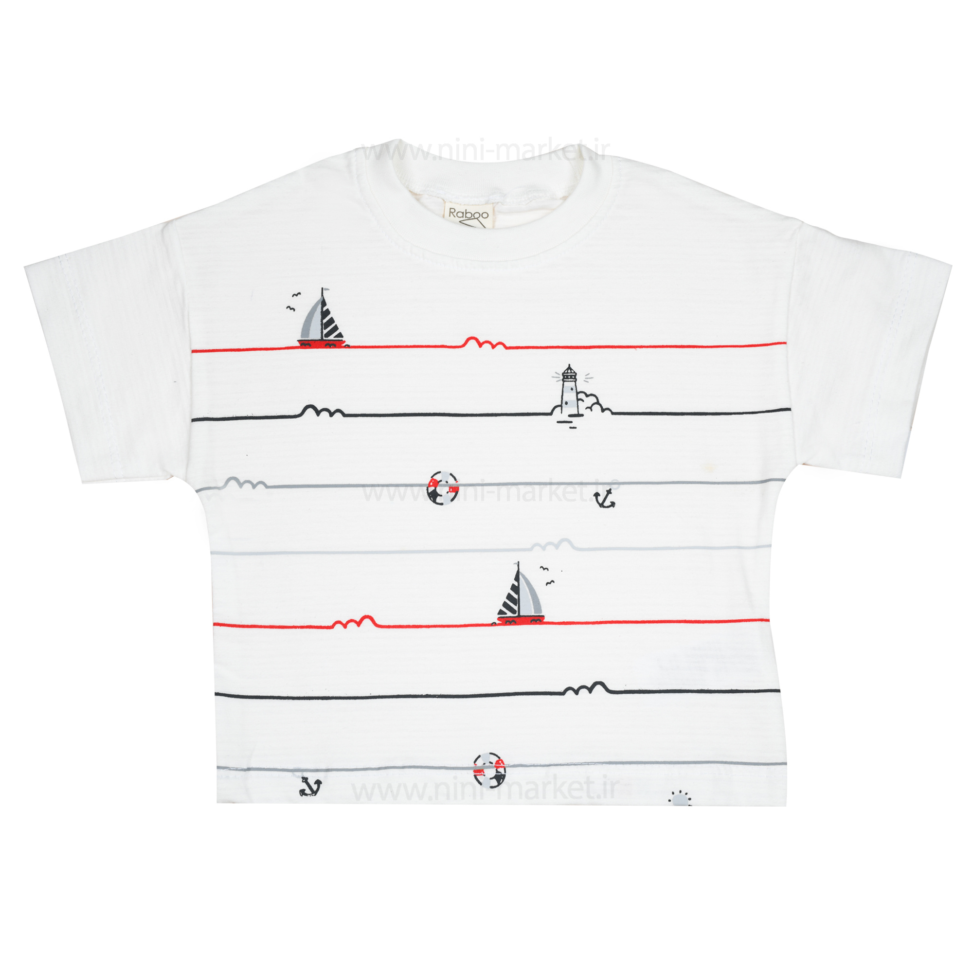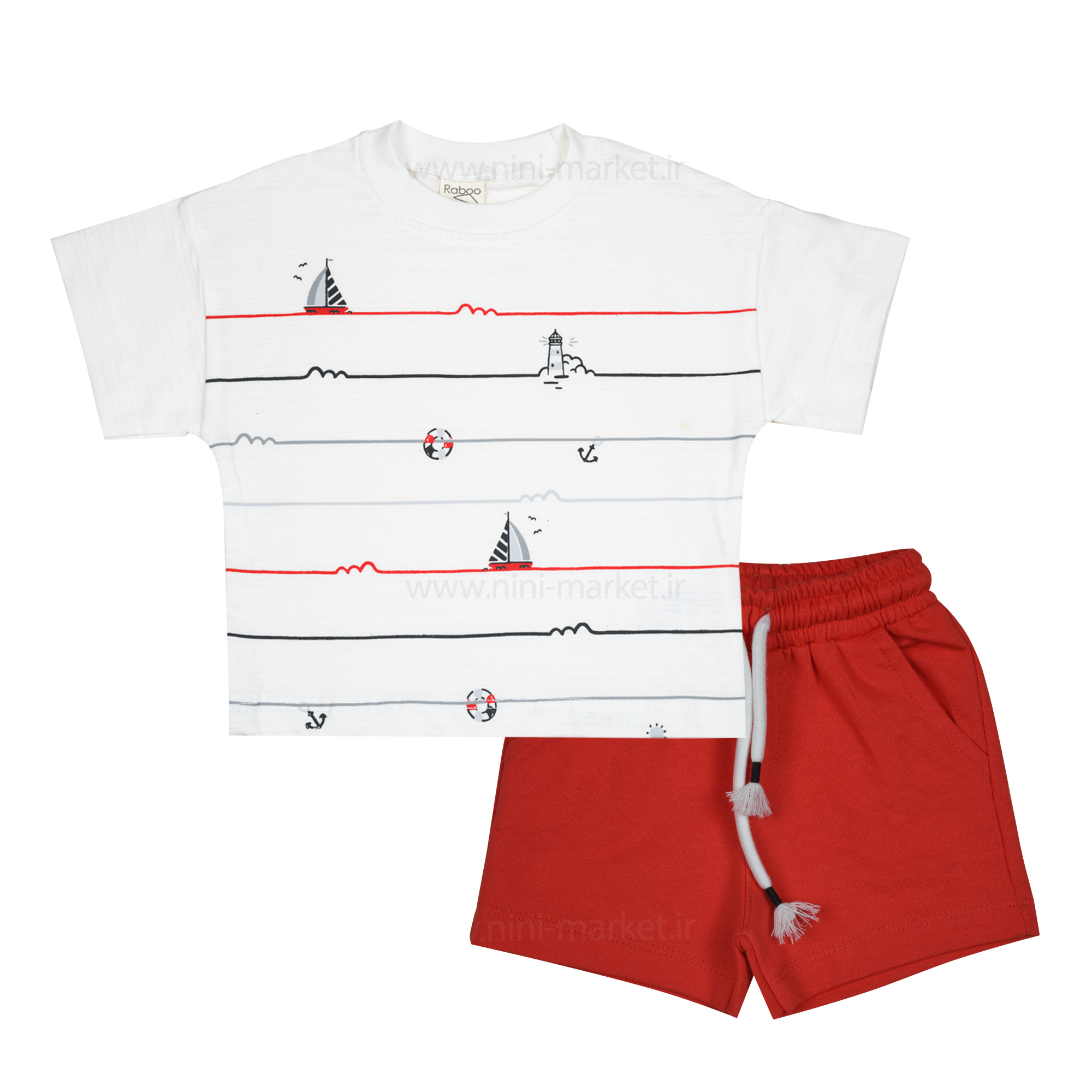 تیشرت شورت پسرانه طرح قایق رنگ قرمز Raboo